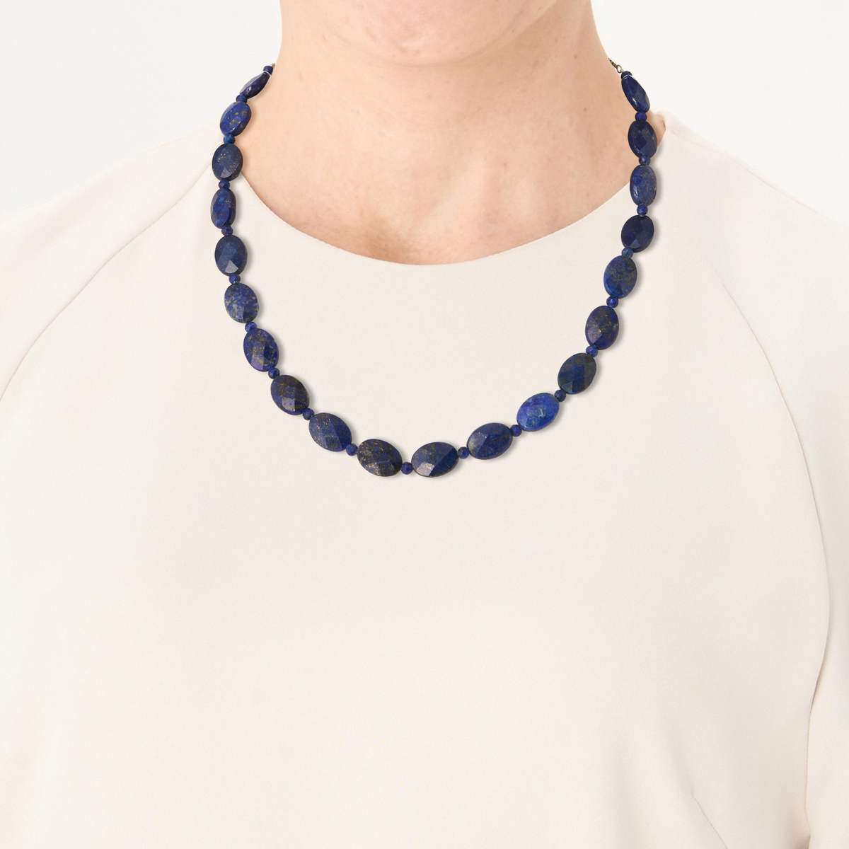 チェッカーボードカットを施したラピスラズリが胸元に鮮やかな青の輝きを添えるネックレス。チェッカーボードが角度によってキラキラと輝き、個性を引き立てます