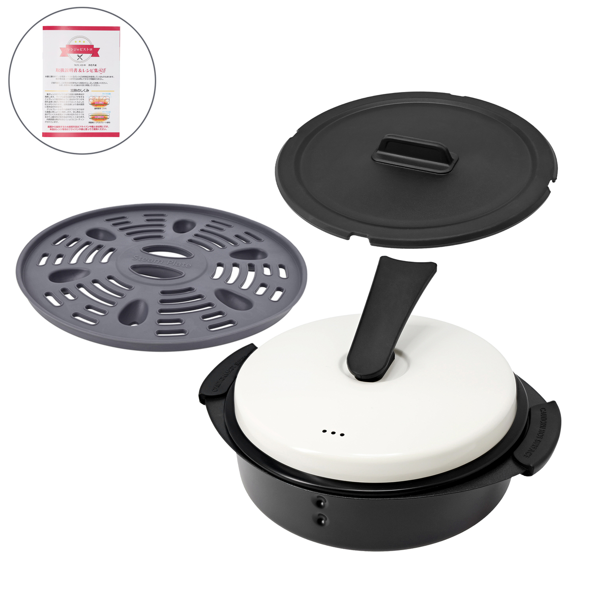 簡単に本格調理が楽しめる、電子レンジ専用(*1)(*2)の調理器レンジdeビストロの深型タイプ。1台で焼く・蒸す・炊く・炒める・煮る・茹でる・温める(温め直し)の調理ができます