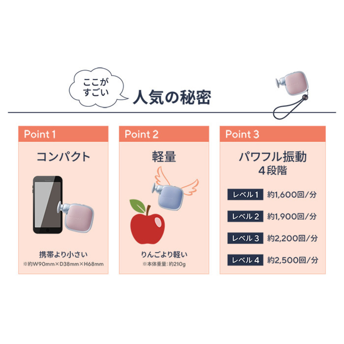 スバルちゃんおすすめのお品物! コンパクトで手軽にマッサージできたらいいなと思って購入したのですが、予想以上のパワーにびっくり。 足がつらかったので使ってみたら、みるみる軽くなりました。 3分タイマー付きなのも便利で、ちょっとしたスキマ時間にピッタリ! スバルちゃん、ありがとう。