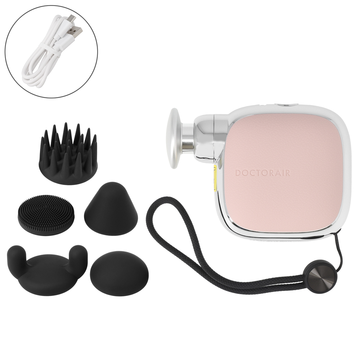 エクサガンポケット本体1台に、美容アタッチメント5個(ソフト丸型、ワイド、ポイント、スカルプ、ソフトブラシ)が付属する特別セットです。手のひらサイズで持ちやすく、ポシェットやポーチにも収まるサイズ(*1)。充電式なのでいつでも場所を選ばず使いたいときにリフレッシュできます(*2)