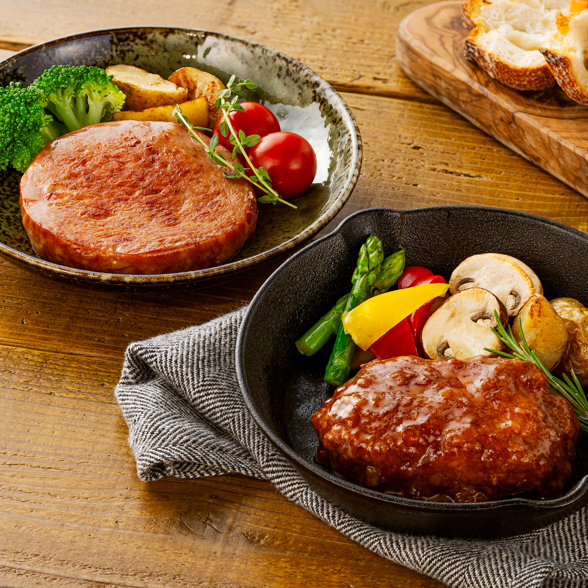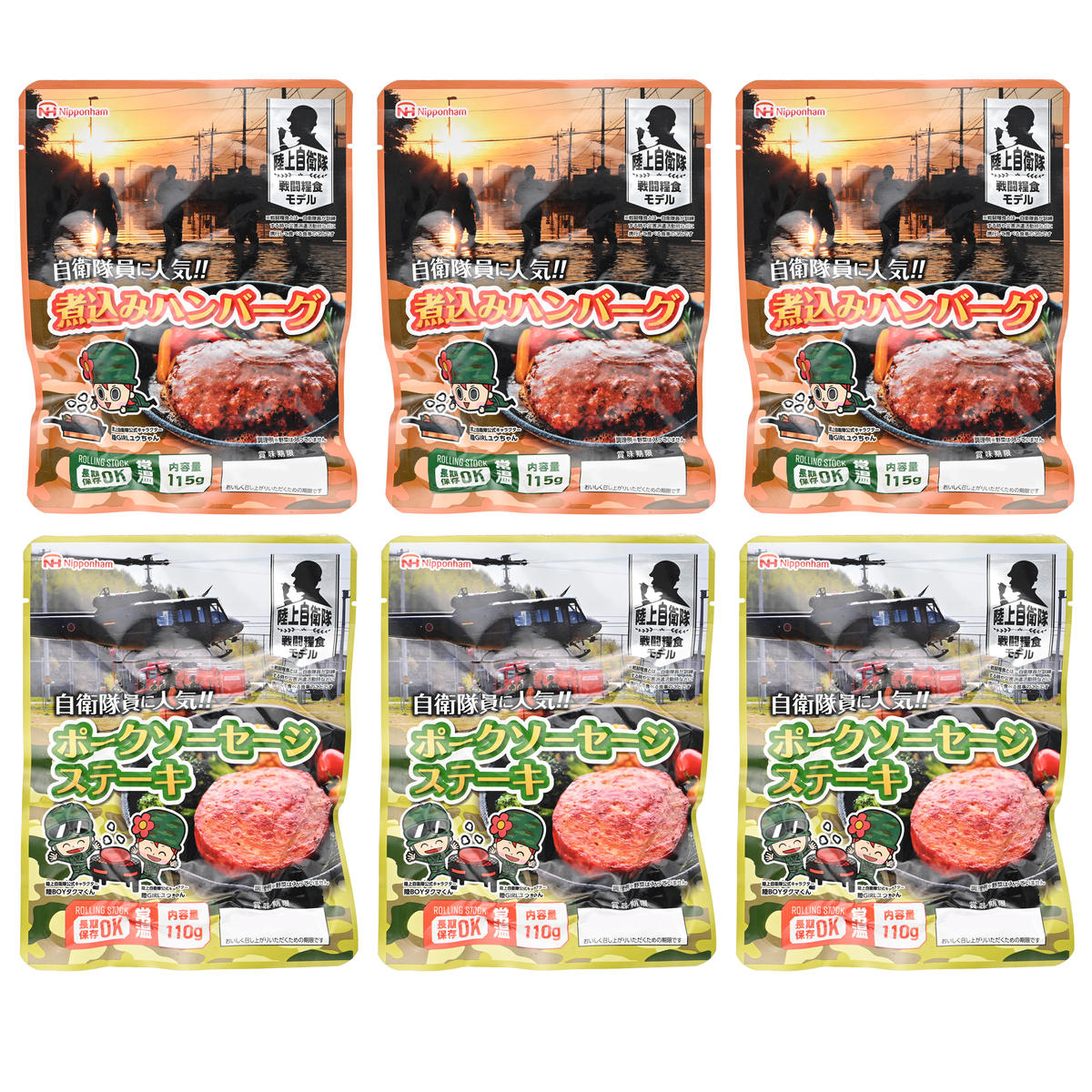 [アレルギー物質特定原材料8品目] 卵、小麦、乳 [内容量] ・煮込みハンバーグ 115g(固形料90g)×3袋 ・ポークソーセージステーキ 110g×3袋 [賞味期間] 製造日より5年6カ月 [保存方法] 開封前:直射日光を避け、常温で保存してください 開封後:開封後はお早目に召し上がりください [お召し上がり方] 温めずにそのまま召し上がれます お湯で温める場合:袋のままたっぷりの熱湯で4分温めてください ※鍋に袋が接触すると溶ける恐れがあります。 電子レンジで温める場合: ポークソーセージステーキ 500W1分20秒、600W1分10秒 煮込みハンバーグ 500W1分40秒、600W1分20秒 ※オート調理不可 ※袋より中身を皿に出し、ラップをかけて温めてください ※袋を開ける際、あけくちを上にして皿の上であけくちから切り開いてください。中身を皿に出す際、飛び散らない様に静かに出してください [注意事項] ※袋は金属を含みます。発火する恐れがありますので袋のまま電子レンジで加熱しないでください ※器具、品温により調理時間が異なります。調理状況により、調節してください ※調理中や調理後、本品や器具等が熱くなっていますので火傷にご注意ください ※賞味期限は、記載の保存方法にて未開封で保存された場合の期限です。開封後はお早目に召し上がりください ※袋を開ける際、袋のふちで手を切らないようご注意ください [原料原産地] 煮込みハンバーグ:食肉(牛肉(オーストラリア産) ポークソーセージステーキ:豚肉(アメリカ産) [原産国] 日本 [原材料] 煮込みハンバーグ:食肉(牛肉(オーストラリア産)、豚肉)、玉ねぎ、つなぎ(パン粉、液卵白、卵白末、でん粉)、植物油、食塩、乳等を主要原料とする食品、香辛料/調味料(アミノ酸)、ソース[野菜(玉ねぎ、にんじん)、中濃ソース、牛脂肪、トマトペースト、還元 水あめ、砂糖、赤ワイン、乳等を主要原料とする食品、食塩、しょう油、酵母エキス、 水あめ/増粘剤(加工デンプン)、カラメル色素、調味料(アミノ酸等)]、(一部に卵・乳成分・小麦・牛肉・大豆・豚肉・りんごを含む) ポークソーセージステーキ:豚肉(アメリカ産)、豚脂肪、食塩、結着材料(大豆たん白、卵たん白)、砂糖、香辛料/加工デンプン、カゼインNa、リン酸塩(Na)、調味料(アミノ酸)、酸化防止剤(ビタミンC)、発色剤(亜硝酸Na)、(一部に卵・乳成分・小麦・大豆・豚肉を 含む)