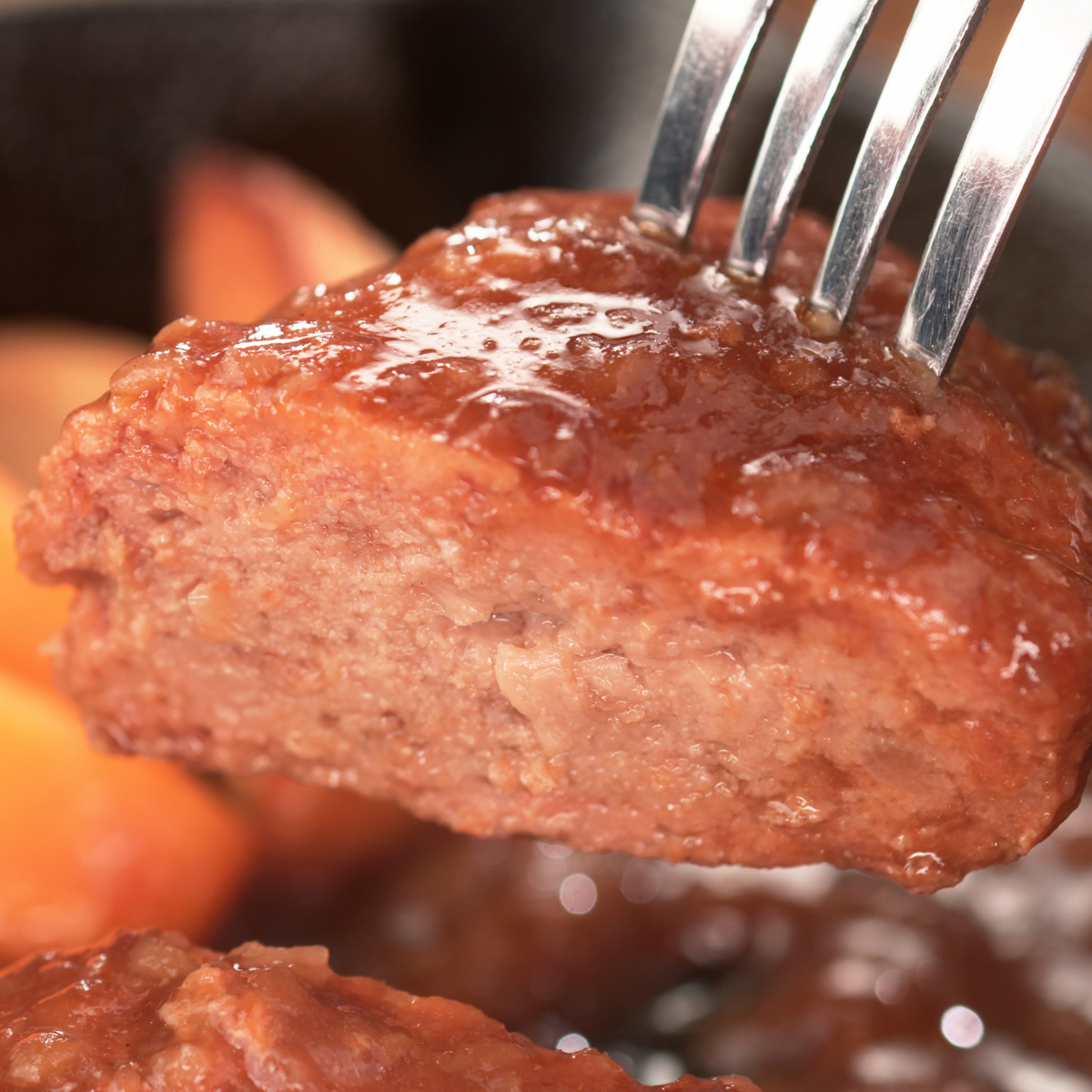 牛・豚合い挽きのハンバーグを、自家製ソースで煮込んだハンバーグです