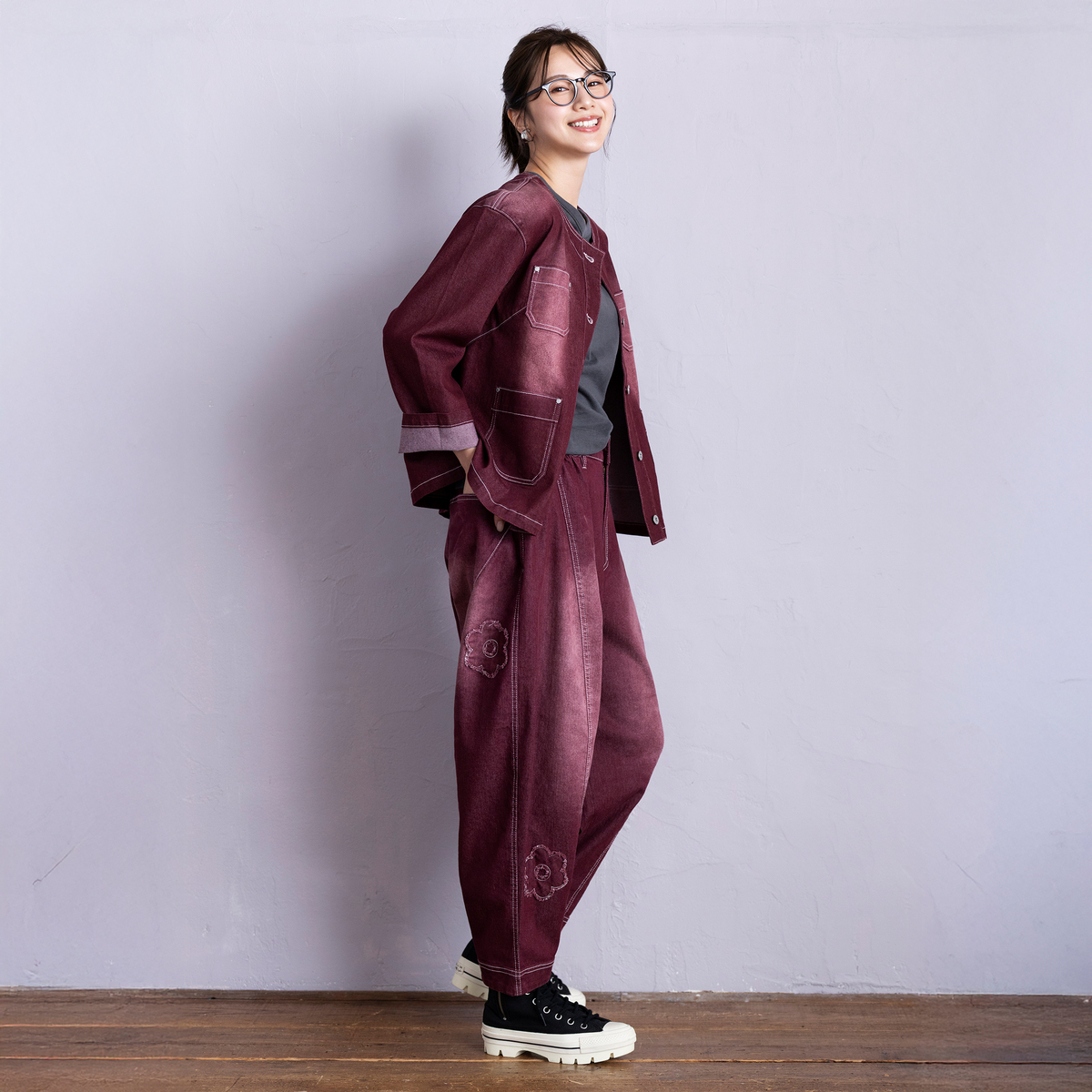 今秋はボルドーが気分で、既に&LOVEでリボンモチーフブラウスとパンツを購入後だったので、気にはなるも見送るつもりが‥ 放送を見たら気になり 山口ナビ着用Sが凄く緩そうだったから 今回はボルドーXSにしてみて ギリギリ間に合い直ぐに届き 試着したら 凄く履き易くって よかったです。 キャットシルエットも可愛く絶妙ですね! 夏のサマーデニムに続いてのお買い上げになりました。上下ボルドーsetでどうかと思いながら近所に着て行ったら 褒められました!!