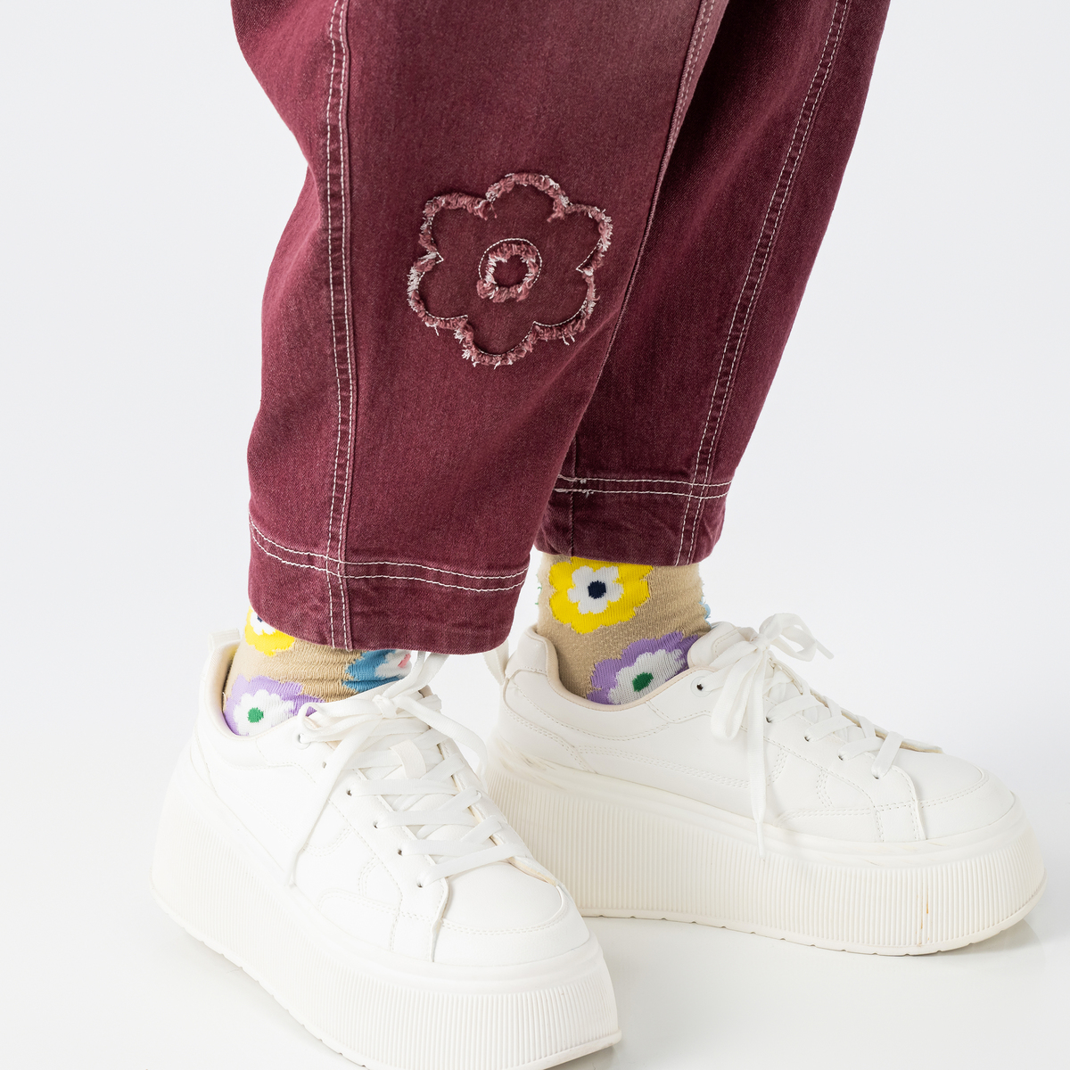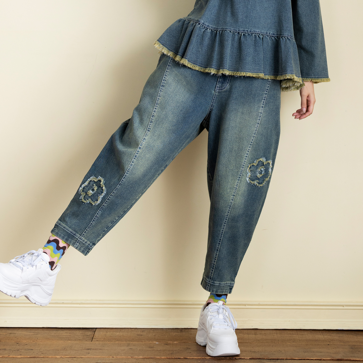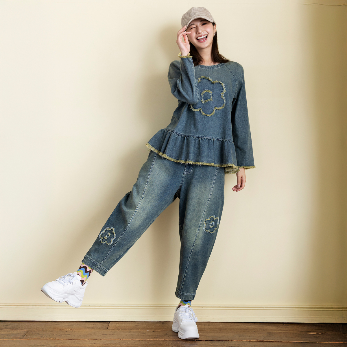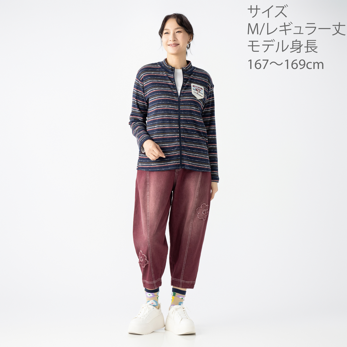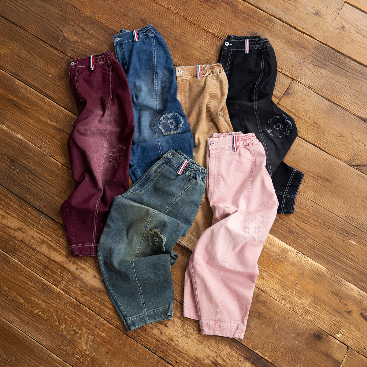 No. 748189 PERSONS 選べる股下フラワーパッチデニムキャットパンツ