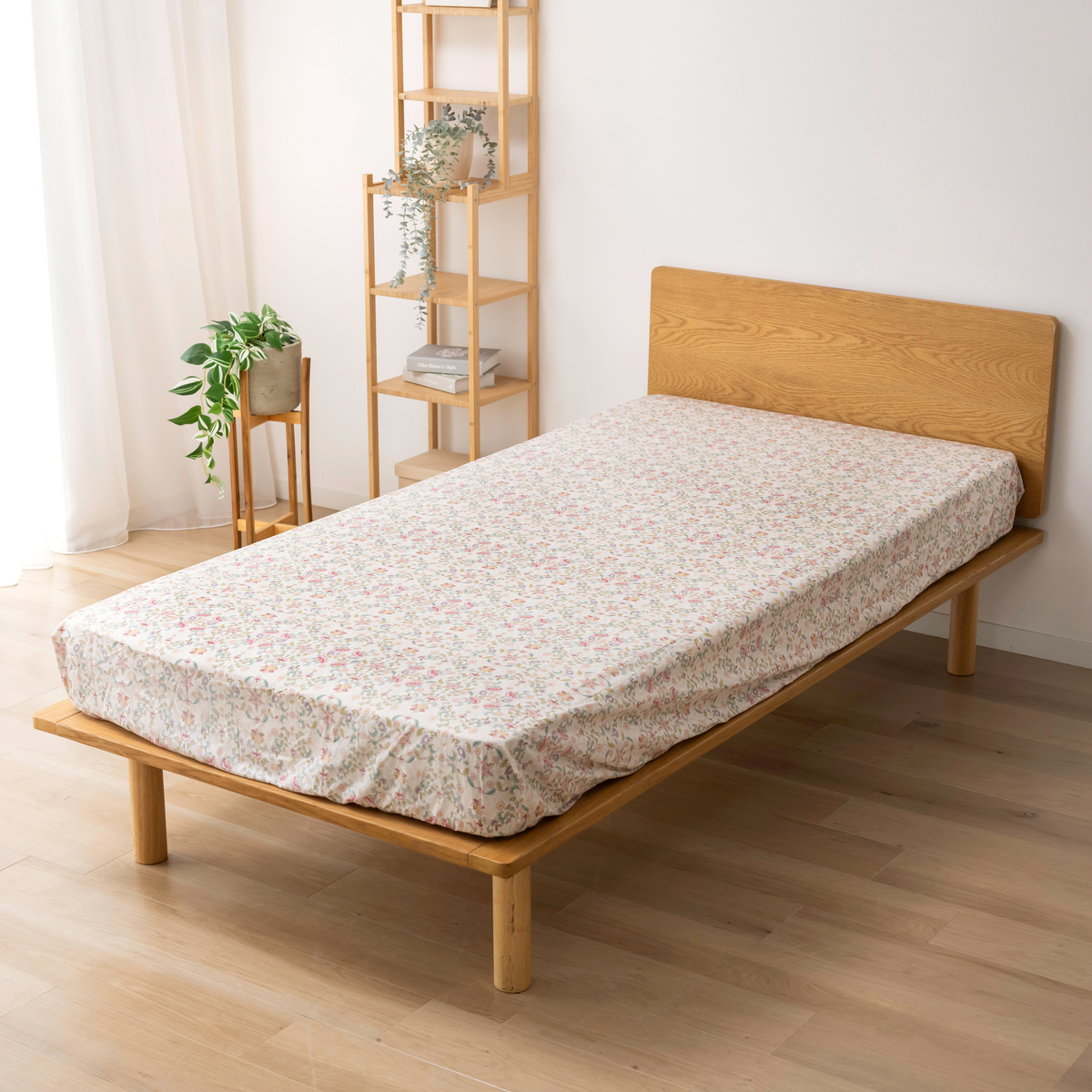 お手持ちの敷寝具に掛けるだけの着脱簡単なゴムタイプのBOXシーツ。適度な張りがあり、さらっとした肌ざわりのコットン100%のブロード織生地。シーツをかけたときに生地がヨレにくく、見た目にも美しいベッドメイクに仕上がります