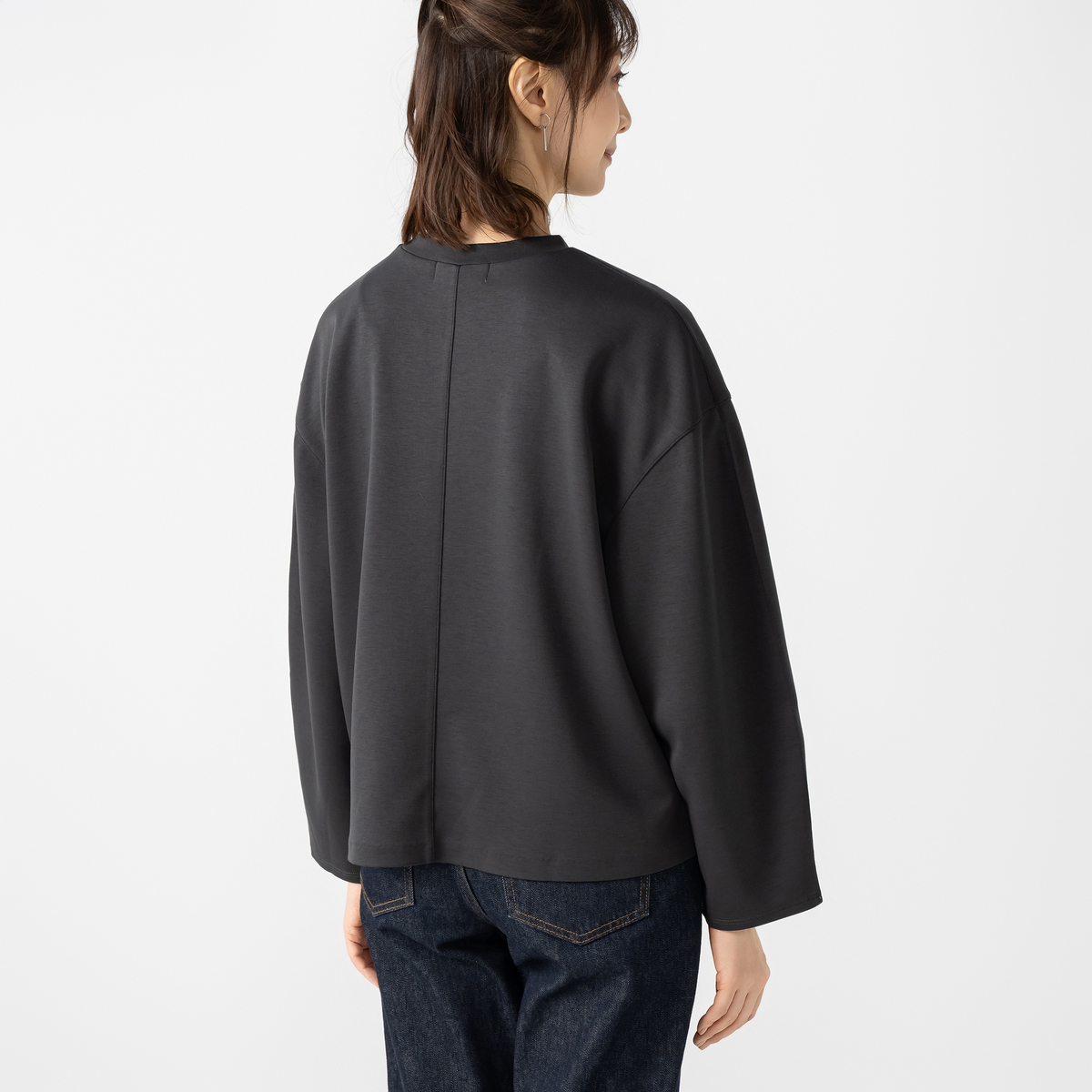立体感のあるダンボールニット素材を使用。適度なハリ感があり、美しいシルエットをキープします。厚みがありながらも軽やかな着心地です
