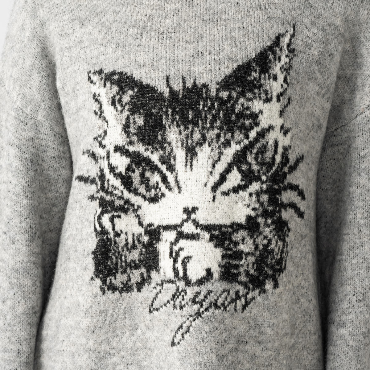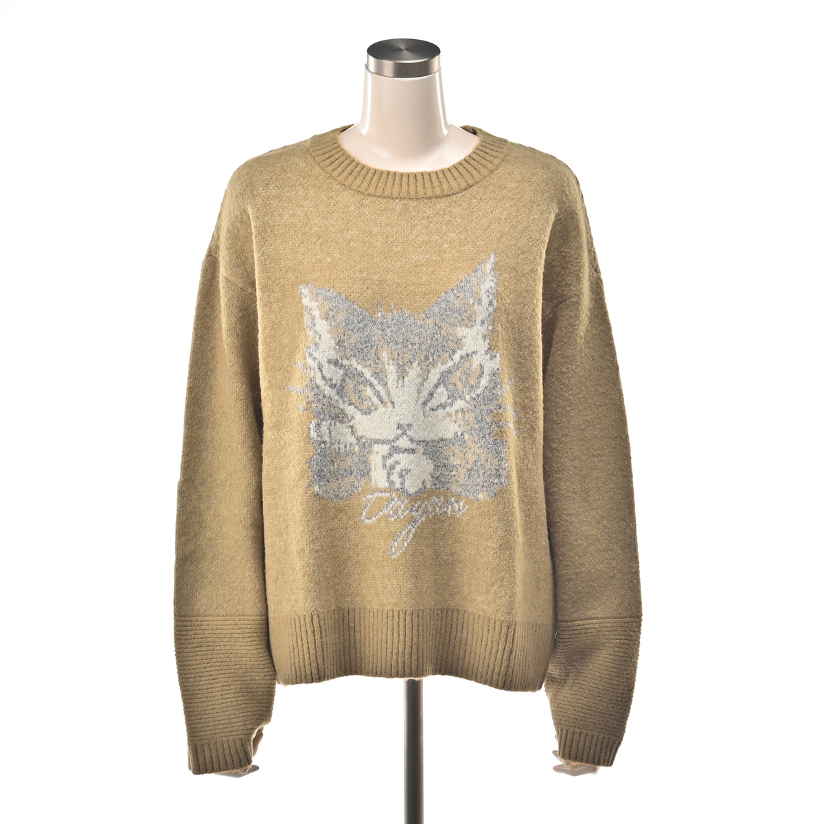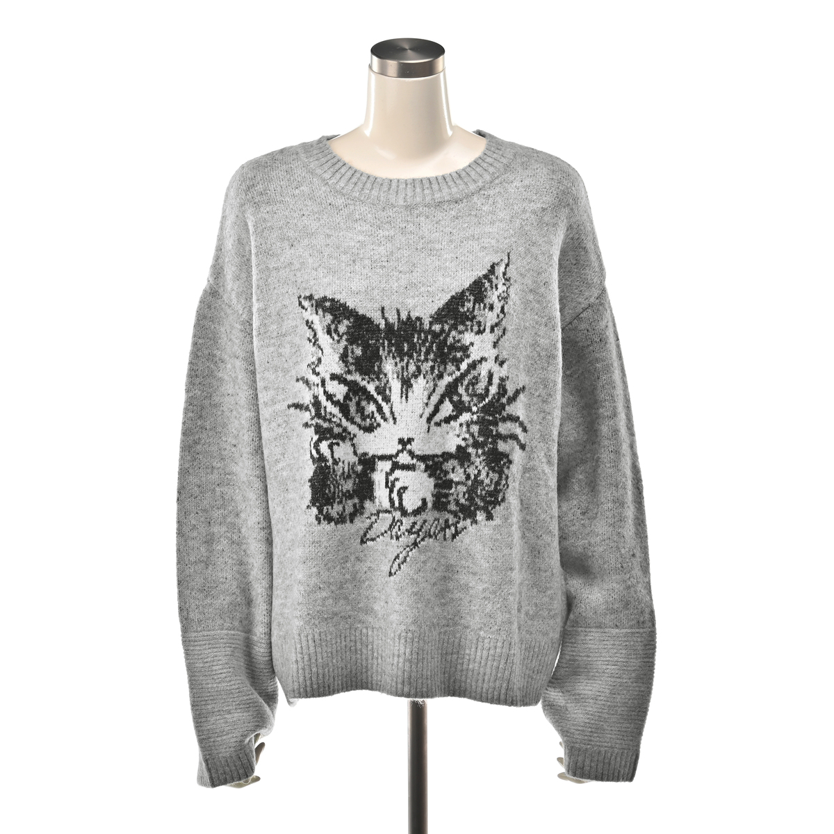 ふわふわの糸で編み上げた、愛らしいダヤンのアップフェイスが映えるニットプルオーバー。4色の糸で編み上げたジャガード組織が、ダヤンの表情を豊かに再現しています
