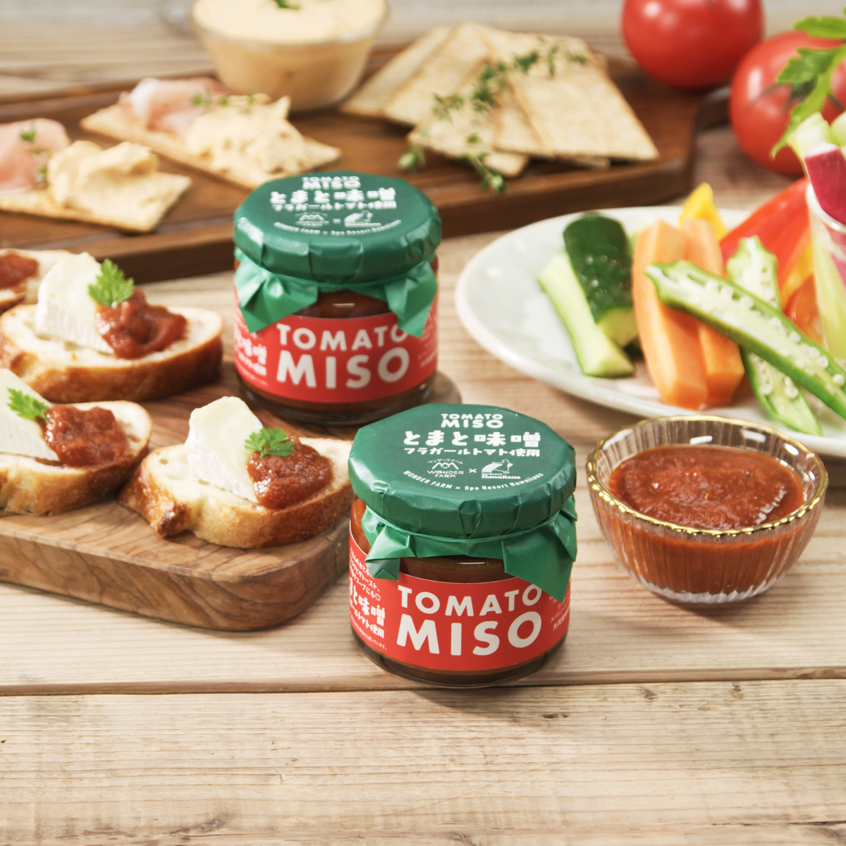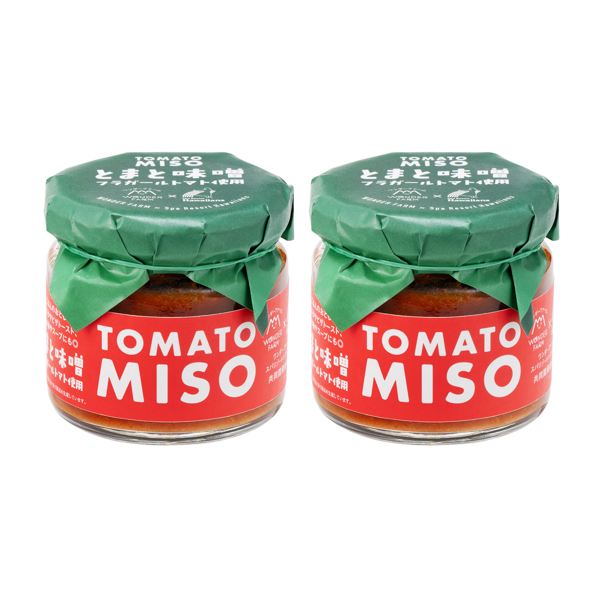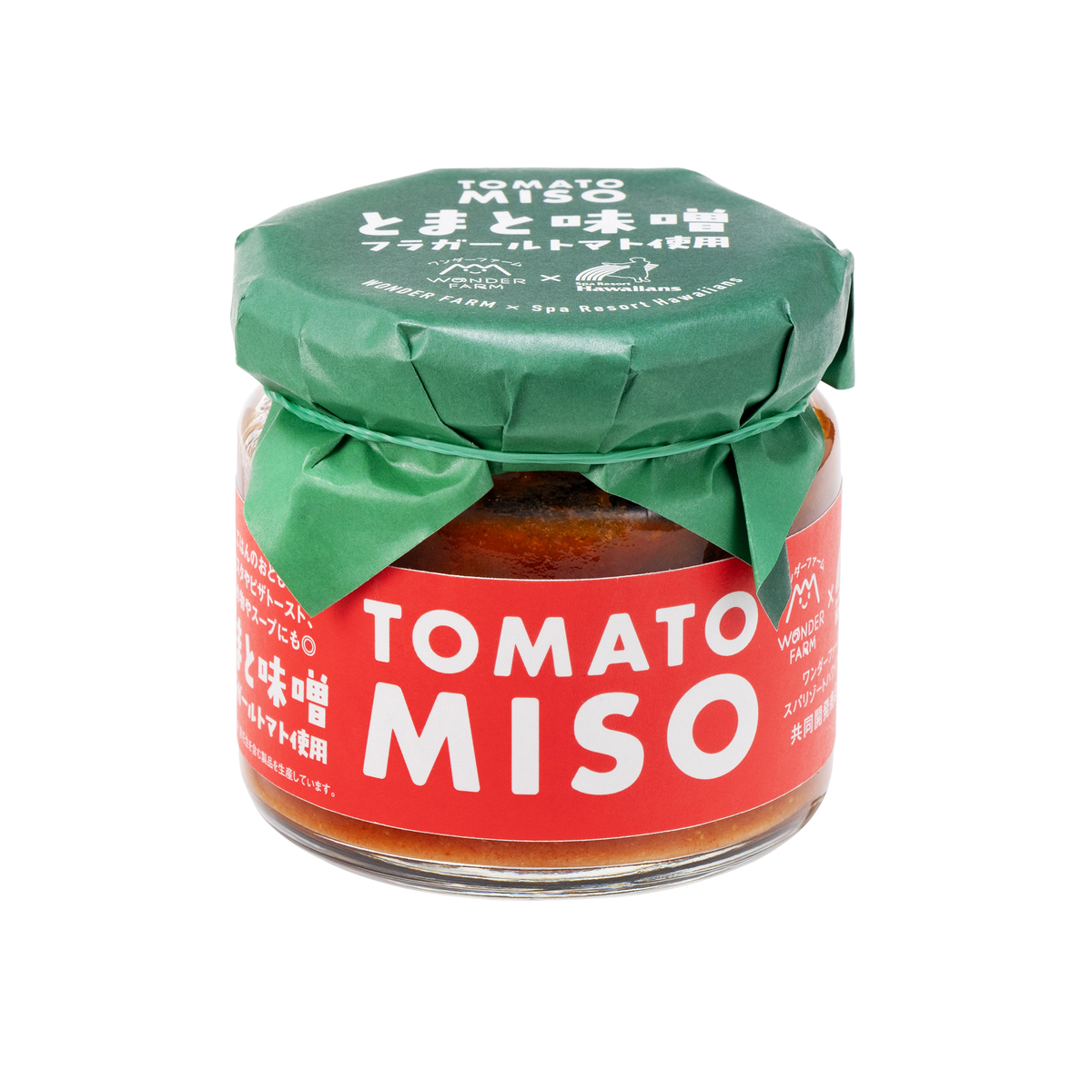ワンダーファームとスパリゾートハワイアンズの共同開発。トマトと発酵食品の味噌を合わせた万能調味料です。ご飯のお供としてはもちろん、パンに塗ってチーズをのせて焼いても相性が良く、パスタ、野菜炒め、お肉を焼く際にもおすすめです