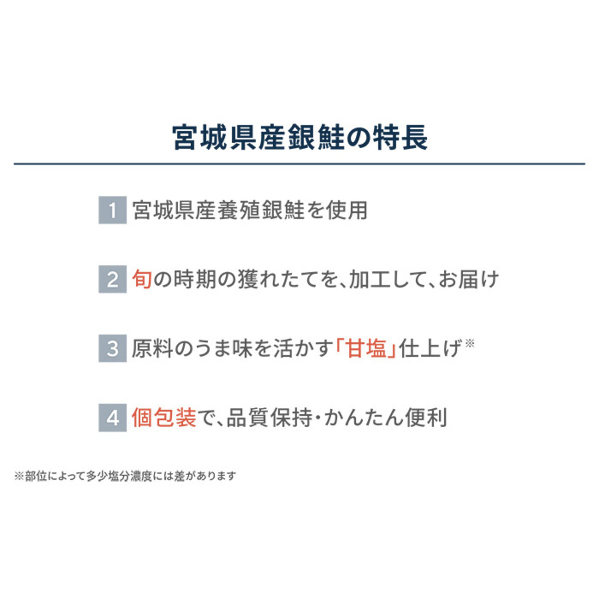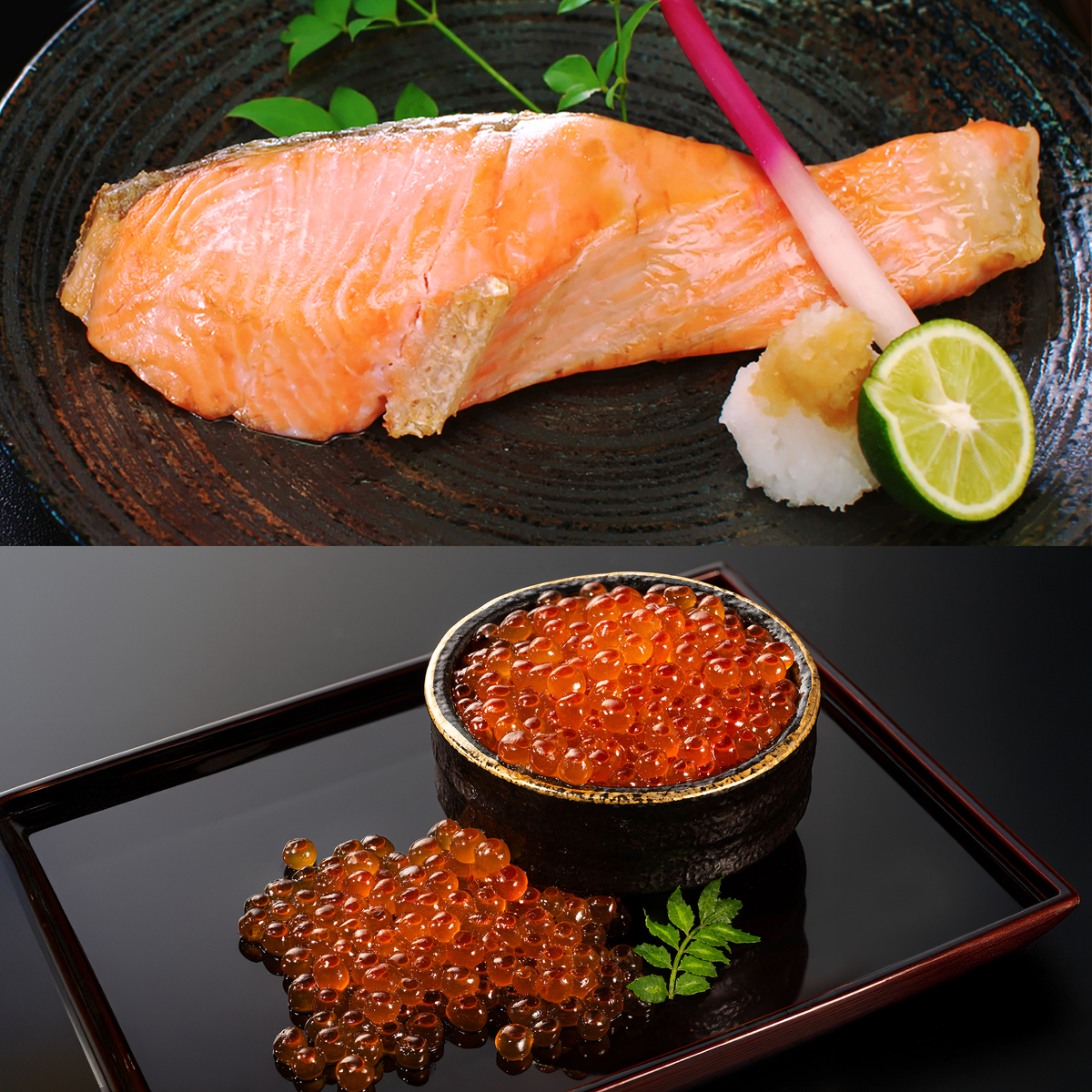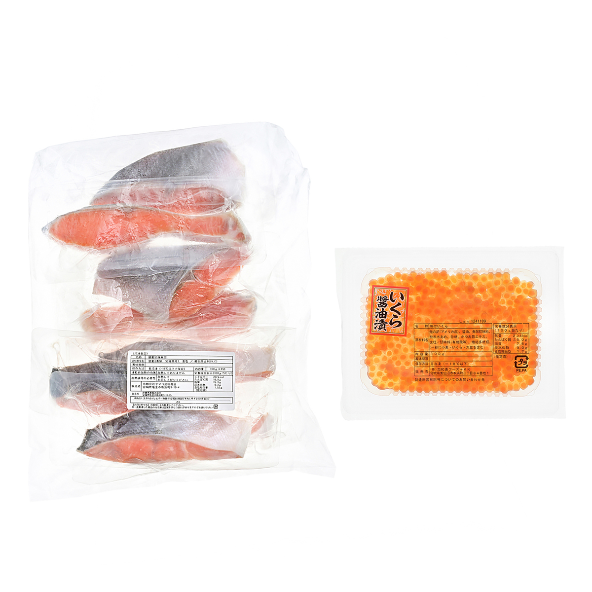 [アレルギー物質特定原材料8品目] 小麦 [セット内容] ・宮城県産銀鮭切身100g×8 ・いくら100g [賞味期限] 出荷時点で賞味期限まで120日以上ある商品をお届けします [保存方法] <宮城県産銀鮭切身> 開封前:冷凍ー18℃以下 開封後:冷蔵で保管 <いくら> 開封前:要冷凍(ー18℃以下)で保存してください 開封後:冷凍で保存しお早めにお召し上がりください [お召し上がり方] 冷蔵庫に入れ解凍してください [注意事項] ※一度解凍した商品の再冷凍は品質を損なう恐れがありますのでお避け下さい [原料原産地] 銀鮭切身:銀鮭(養殖、宮城県産) いくら:鮭の卵(アメリカ産) [原産国] 日本 [原材料] 宮城県産銀鮭切身:銀鮭(養殖、宮城県産)、食塩/酸化防止剤(V.C) いくら:鮭の卵(アメリカ産)、醤油、発酵調味料、粉末水あめ、砂糖、かつお節エキス、食塩/調味料(有機酸等)、増粘多糖類、(一部に小麦・いくら・大豆を含む)