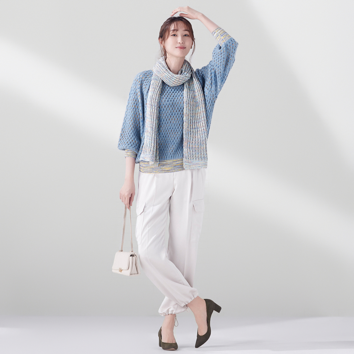 色彩豊かなグラデーションがコーディネートに華やかさをプラス。シンプルな装いに上品な彩りを添えます