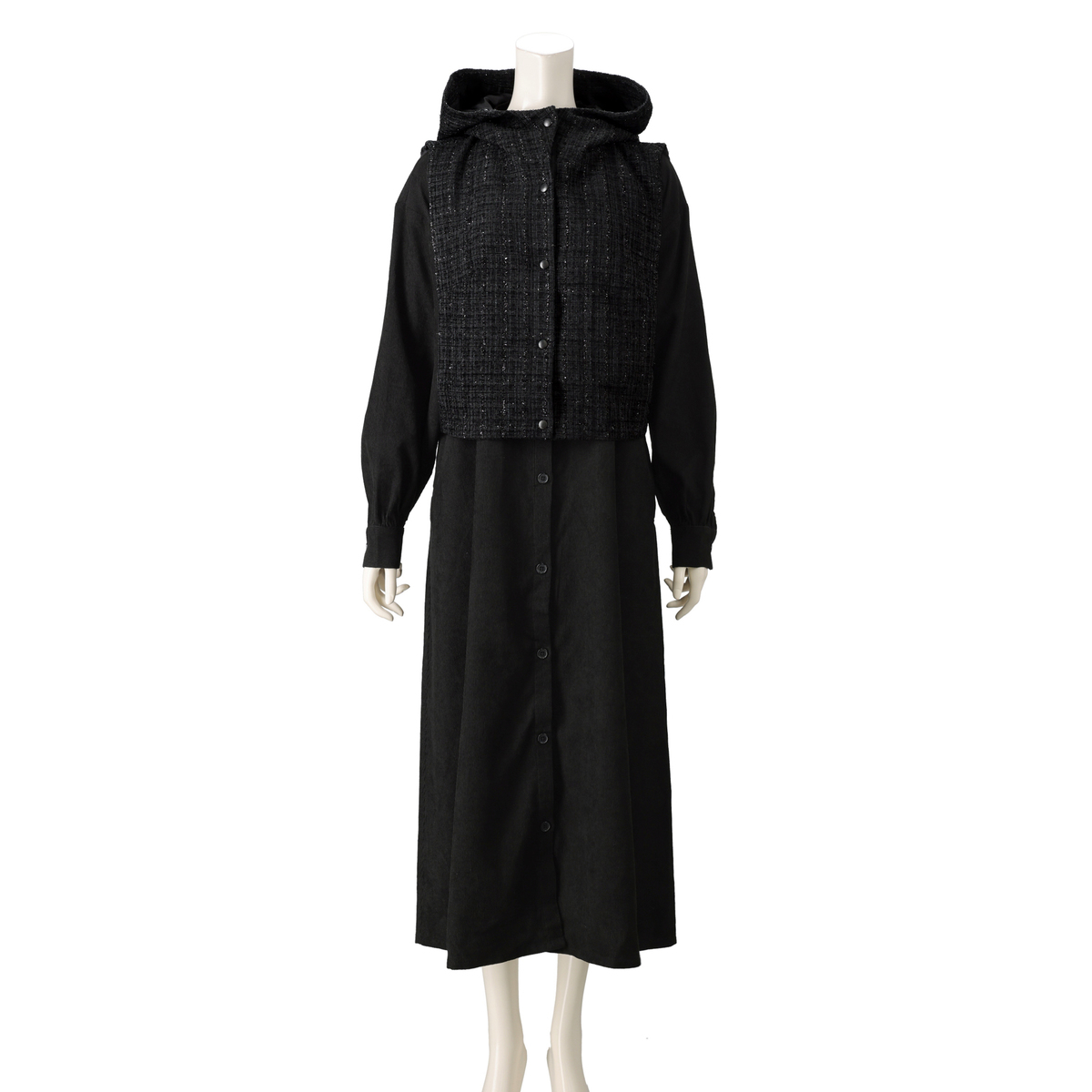 [商品内容] ・ベスト ・ワンピース <ベスト> [商品寸法(ヌード)cm] サイズ バスト 着丈 MーL: 100(79〜94) 44 LLー3L: 108(93〜108) 46 サイズ 肩幅 MーL: 41 LLー3L: 44 [素材] 本体:ポリエステル95%、レーヨン5% 裏地:ポリエステル100% <ワンピース> サイズ バスト 着丈 MーL: 100(79〜94) 120 LLー3L: 108(93〜108) 123 サイズ 裄丈 MーL: 78 LLー3L: 80.5 [素材] ポリエステル95% ポリウレタン5% [お手入れ] 洗濯機洗い可 [注意事項] ※商品寸法の誤差は多少発生します。ご了承下さい <ベスト> ※洗濯はボタンを留めて、ネットを使用して下さい ※蛍光剤の入っていない洗剤をご使用下さい ※洗濯の際に色落ちする事がありますので、他の商品との洗濯はお避け下さい(単独洗い) ※脱水後はただちに取り出し、形を整えてから干して下さい ※長時間濡れたまま放置しないで下さい ※素材の特性上、汗や雨等で濡れた時や強くこすられた場合、摩擦により色落ちする場合が有りますのでご注意下さい ※アイロンは当て布を使用して下さい ※付属部分のアイロンはお避け下さい <ワンピース> ※洗濯時はネット・蛍光剤の入っていない洗剤をご使用下さい ※洗濯の際に色落ちする事がありますので、他の商品との洗濯はお避け下さい(単独洗い) ※脱水後はただちに取り出し、形を整えてから干して下さい ※長時間濡れたまま放置しないで下さい ※素材の特性上、汗や雨等で濡れた時や強くこすられた場合、摩擦により色落ちする場合が有りますのでご注意下さい ※アイロンは当て布を使用して下さい ※付属部分のアイロンはお避け下さい 【中国製】
