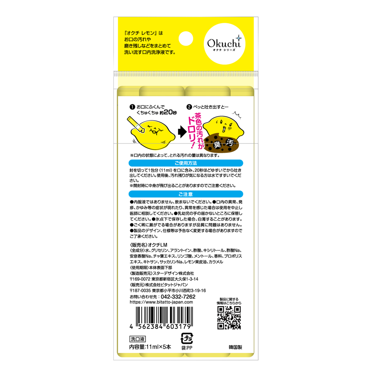 [商品内容] オクチLM (11ml×5本)×10個 [使用方法] 封を切って1包分(11ml)を口に含み、20秒ほどゆすいでから吐き出してください。使用後、汚れ残りが気になる方は水ですすいでください ※開封時に中身が飛び出ることがありますのでご注意ください [注意事項] ※内服液ではありません、飲まないでください ※口内の異常、発疹、かゆみ等の症状が現れたり、異常を感じた場合は使用を中止し医師に相談してください ※乳幼児の手の届かないところに保管してください ※氷点下で保存した場合、白濁することがあります ※ごく稀に澱がでる場合がありますが品質に問題はありません ※製品のデザイン、仕様等は予告なく変更する場合がありますのでご了承ください 【韓国製】 [成分] 水、グリセリン、アラントイン、酢酸、キシリトール、酢酸Na、安息香酸Na、チャ葉エキス、リンゴ酸、メントール、香料、プロポリスエキス、キトサン、サッカリンNa、レモン果皮油、カラメル