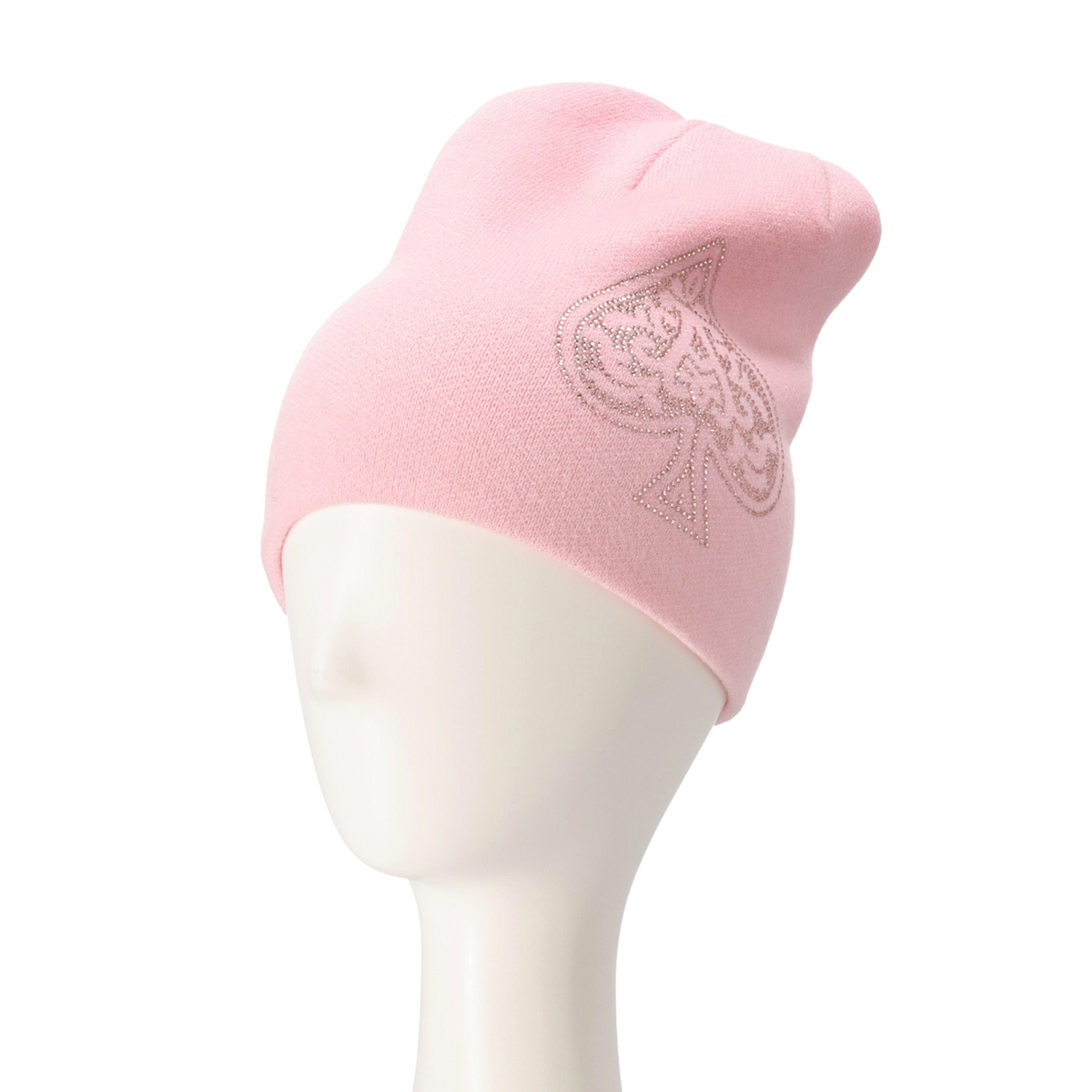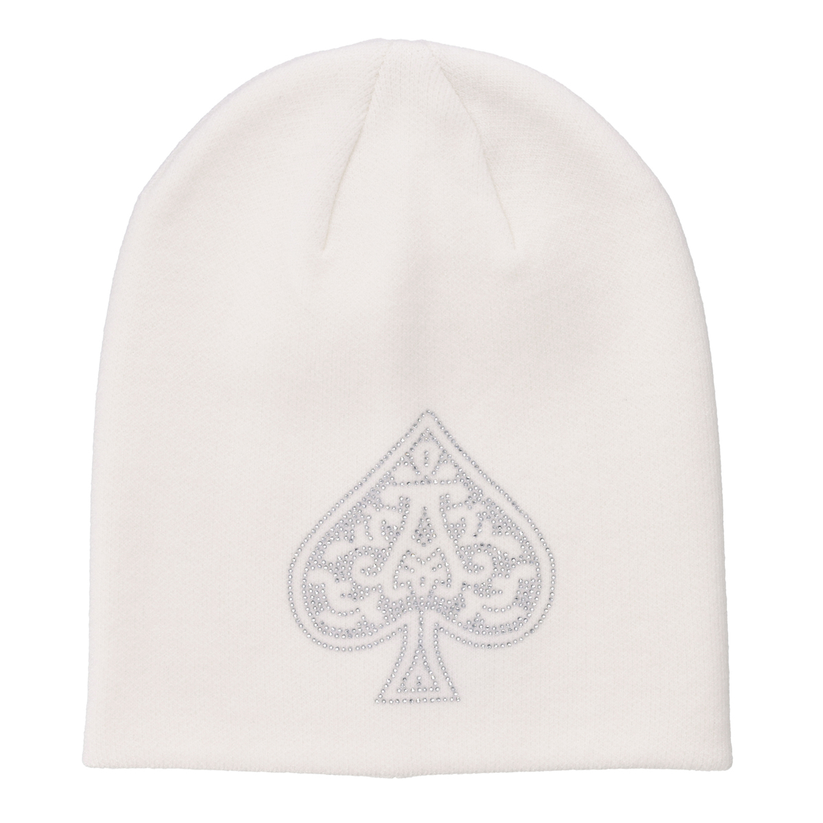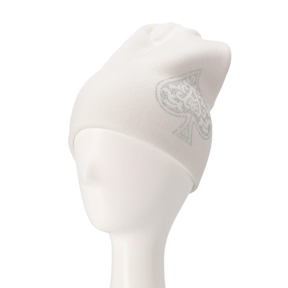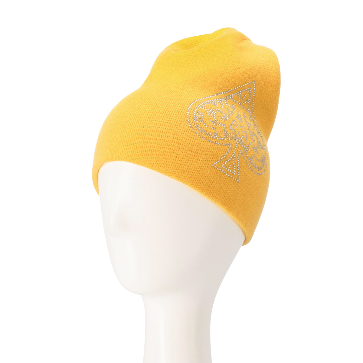 ウールミックスのコアスパンヤーンを使用した、ニットキャップ。片側にはクリスタルホットフィットを使用したスペードロゴを施し、アクセントになっています