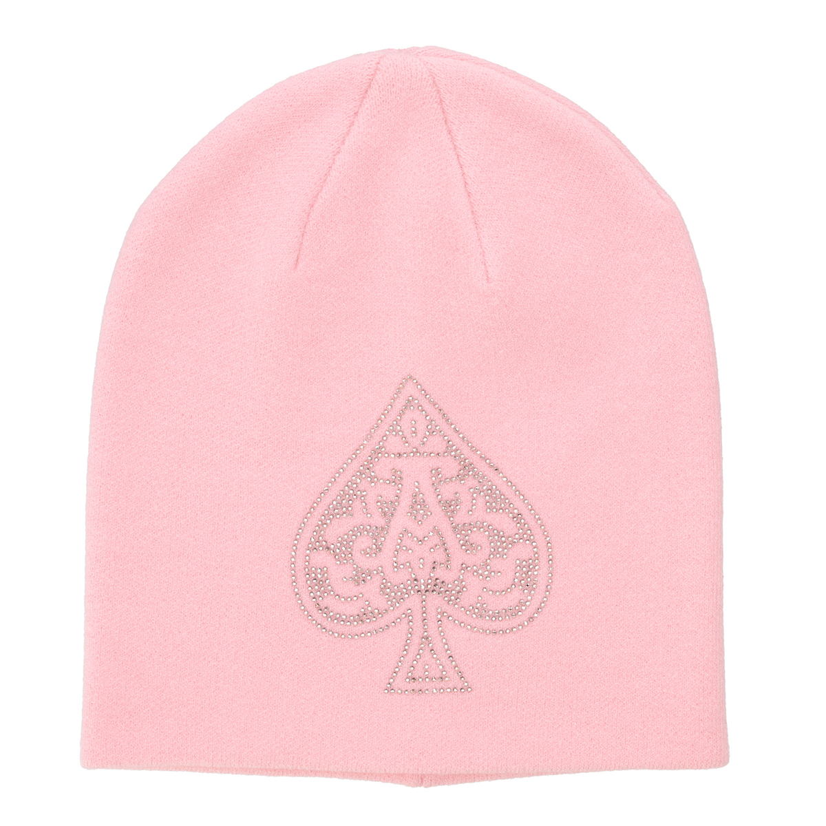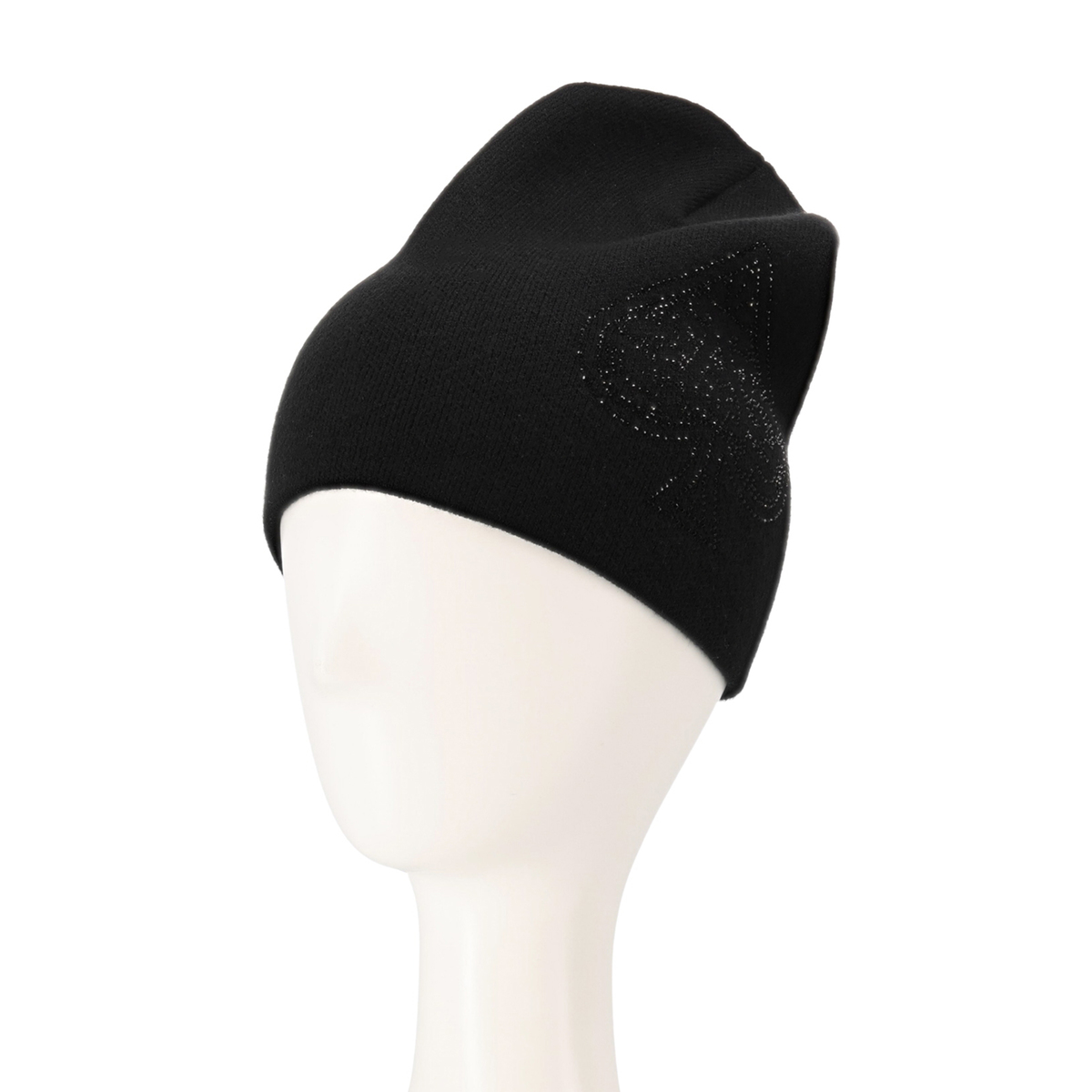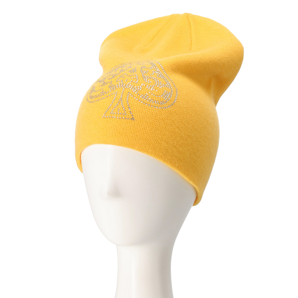 ウールミックスのコアスパンヤーンを使用した、ニットキャップ。片側にはクリスタルホットフィットを使用したスペードロゴを施し、アクセントになっています