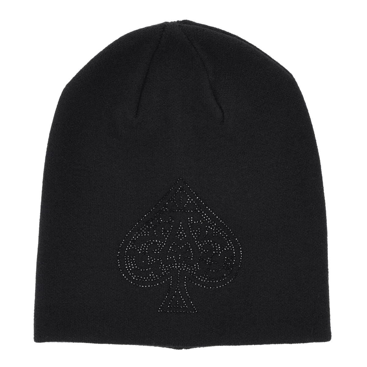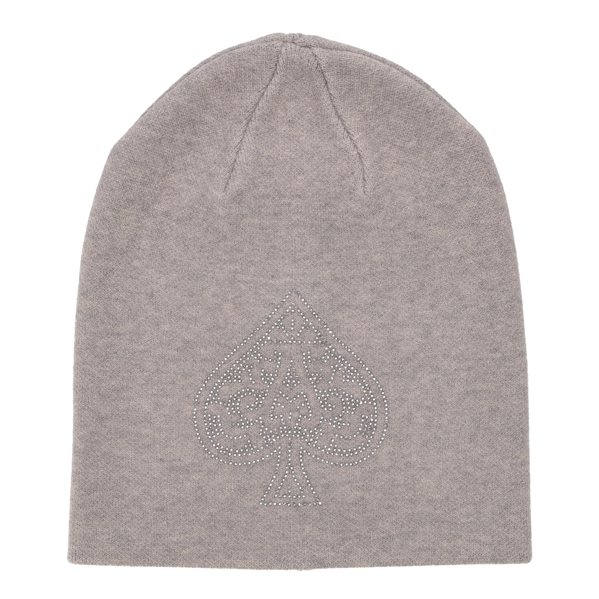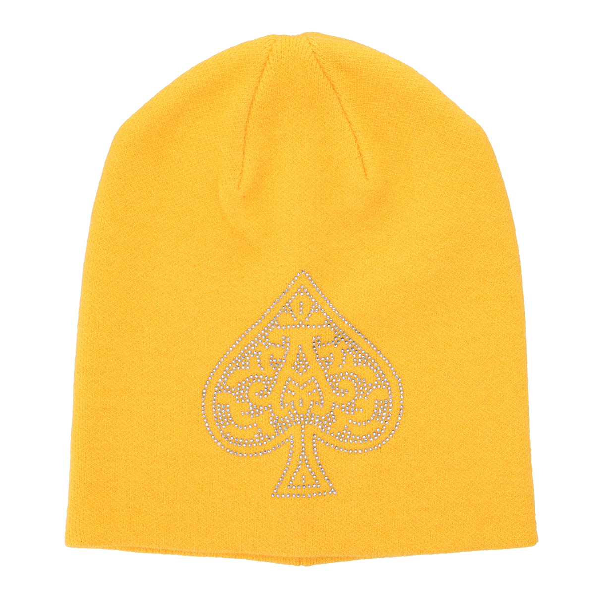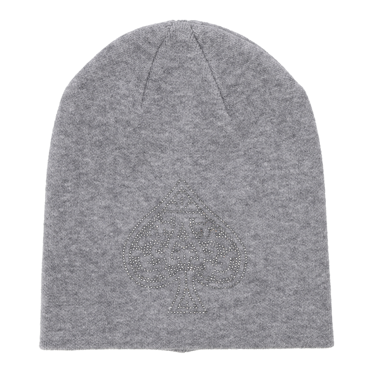 ウールミックスのコアスパンヤーンを使用した、ニットキャップ。片側にはクリスタルホットフィットを使用したスペードロゴを施し、アクセントになっています