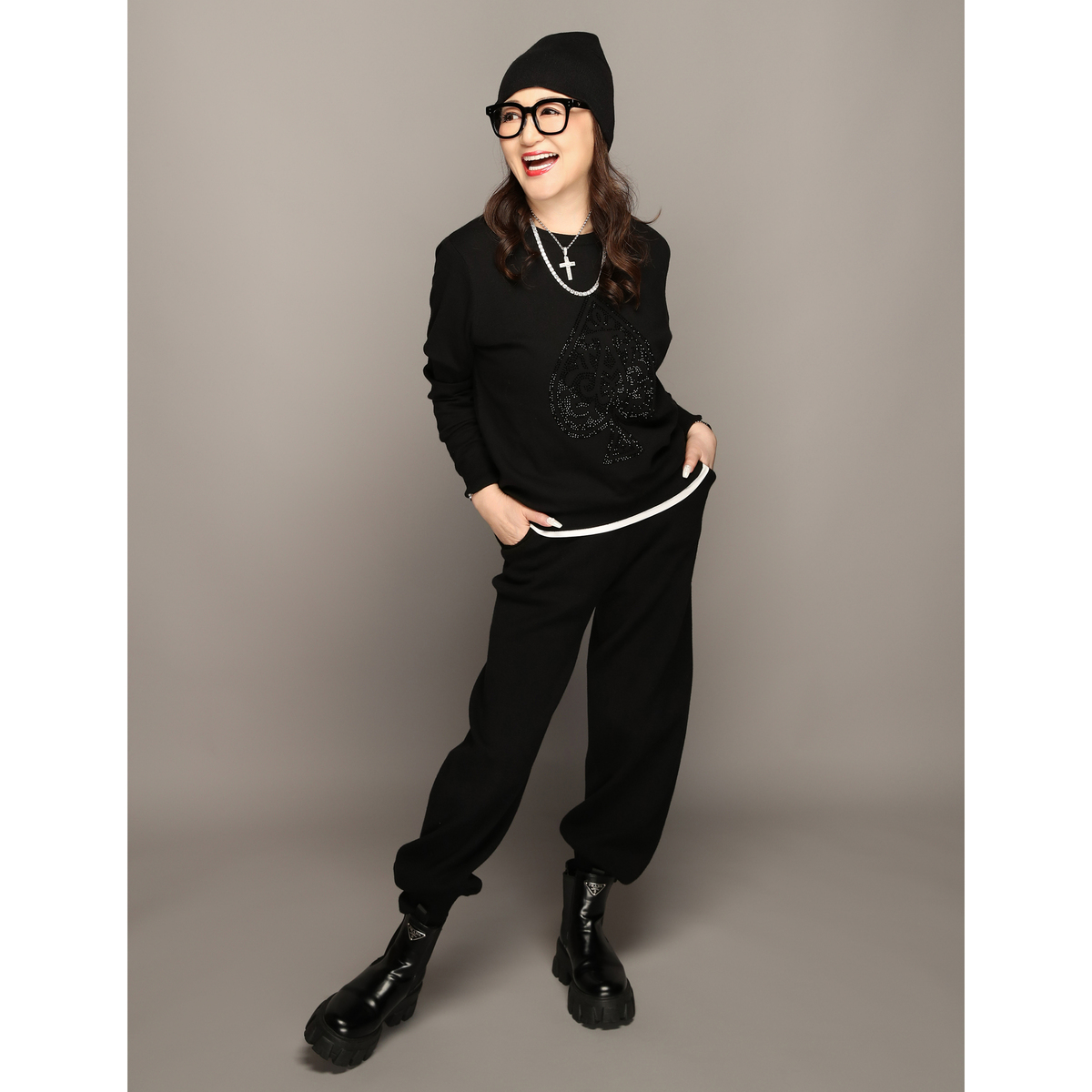 色を決めきれず、ブラックとグレーを上のニットと一緒にいただきました。 思いのほか厚みがあり暖かい!これは予想外に大大大正解! 履いてとても気持ちいい。楽。かっこいい。最高じゃん! これだからアンコキーヌ大好きなんだよなぁ!