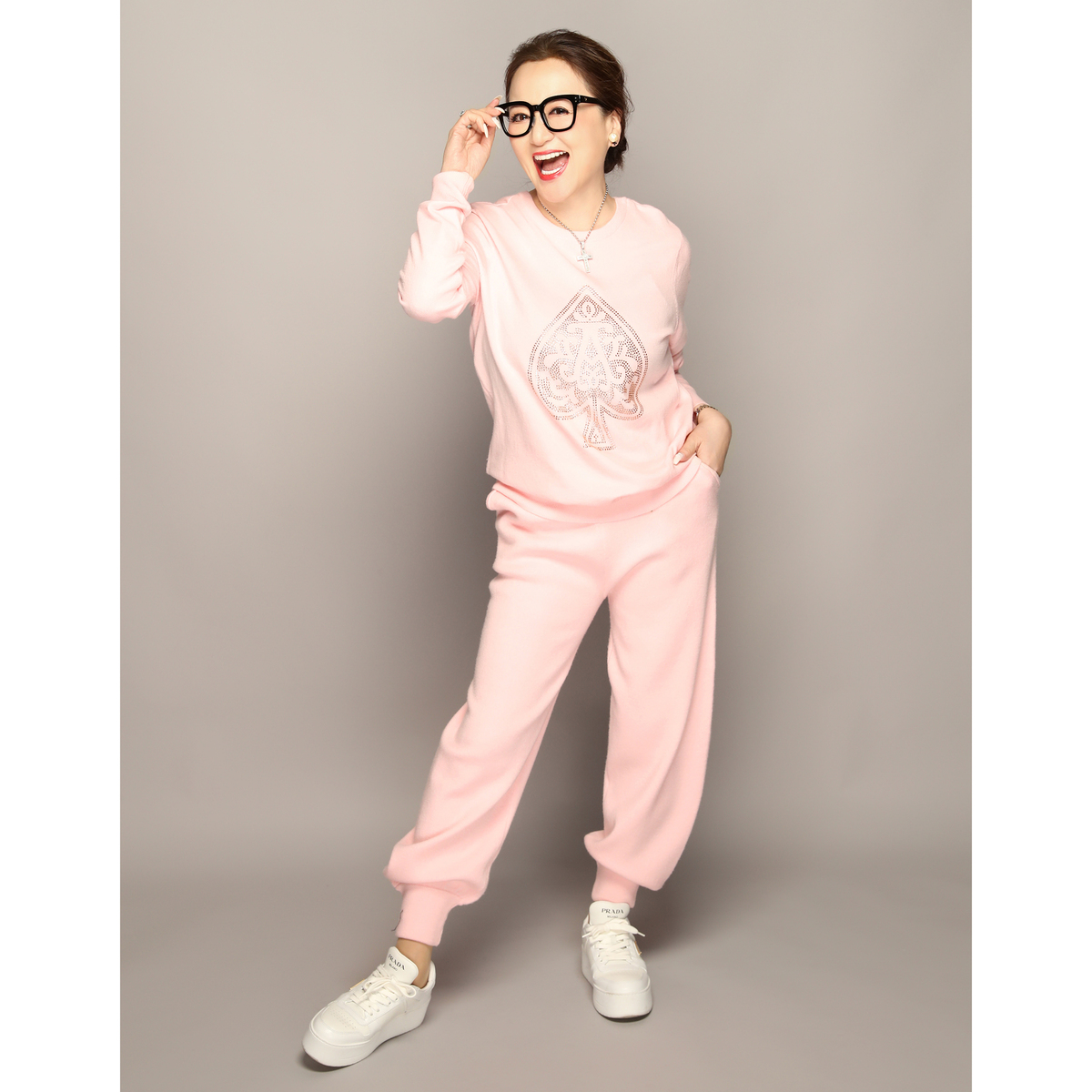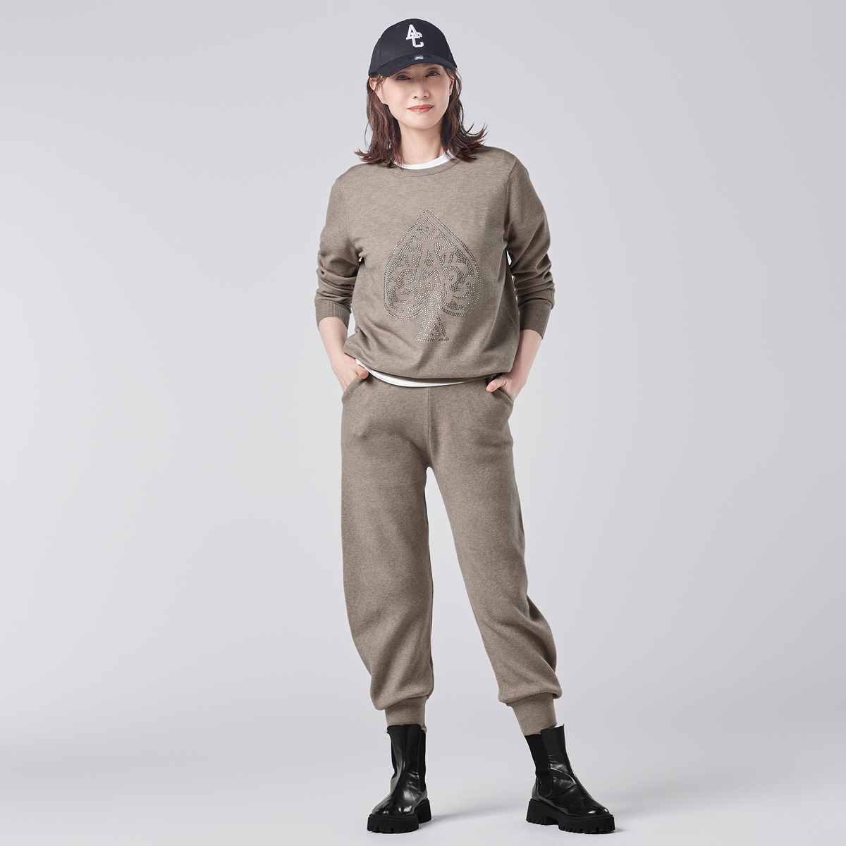 No. 748301 Anne Coquine コアスパンヤーンニットクリスタルバレルパンツ