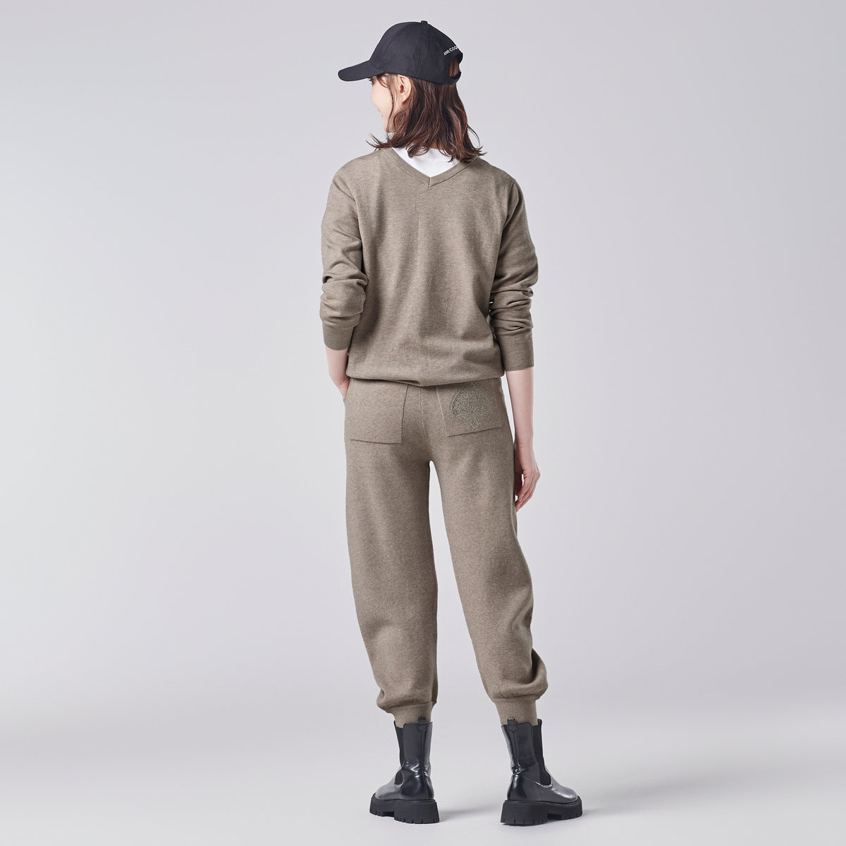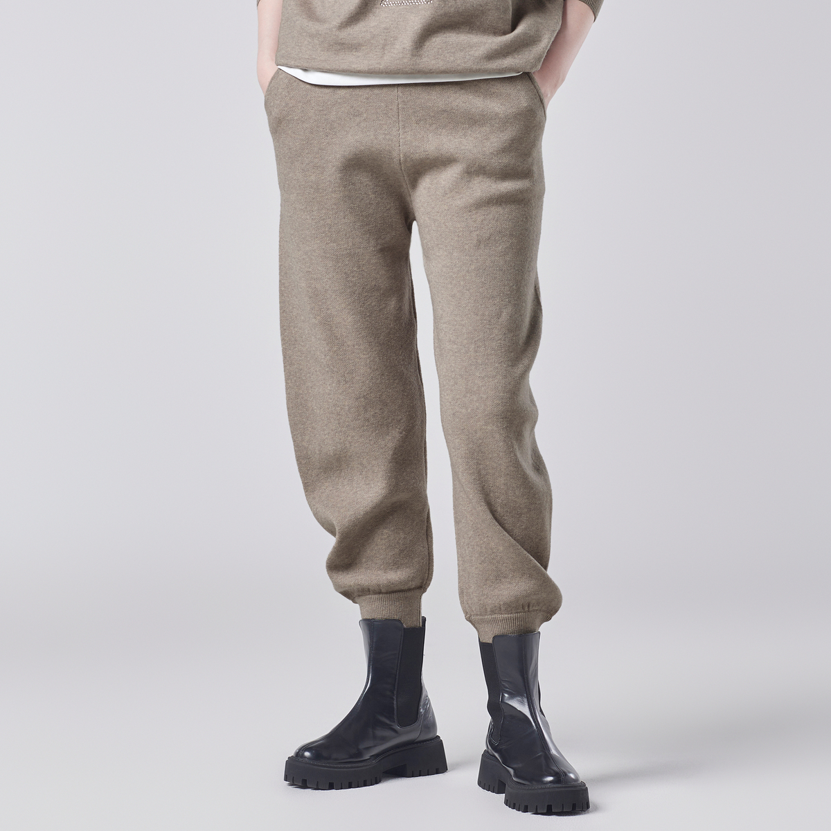 ウールミックスのコアスパンヤーンを使ったニットのバレルパンツです。股下と脇にカーブを入れた立体的なシルエットで、モードな雰囲気を演出します