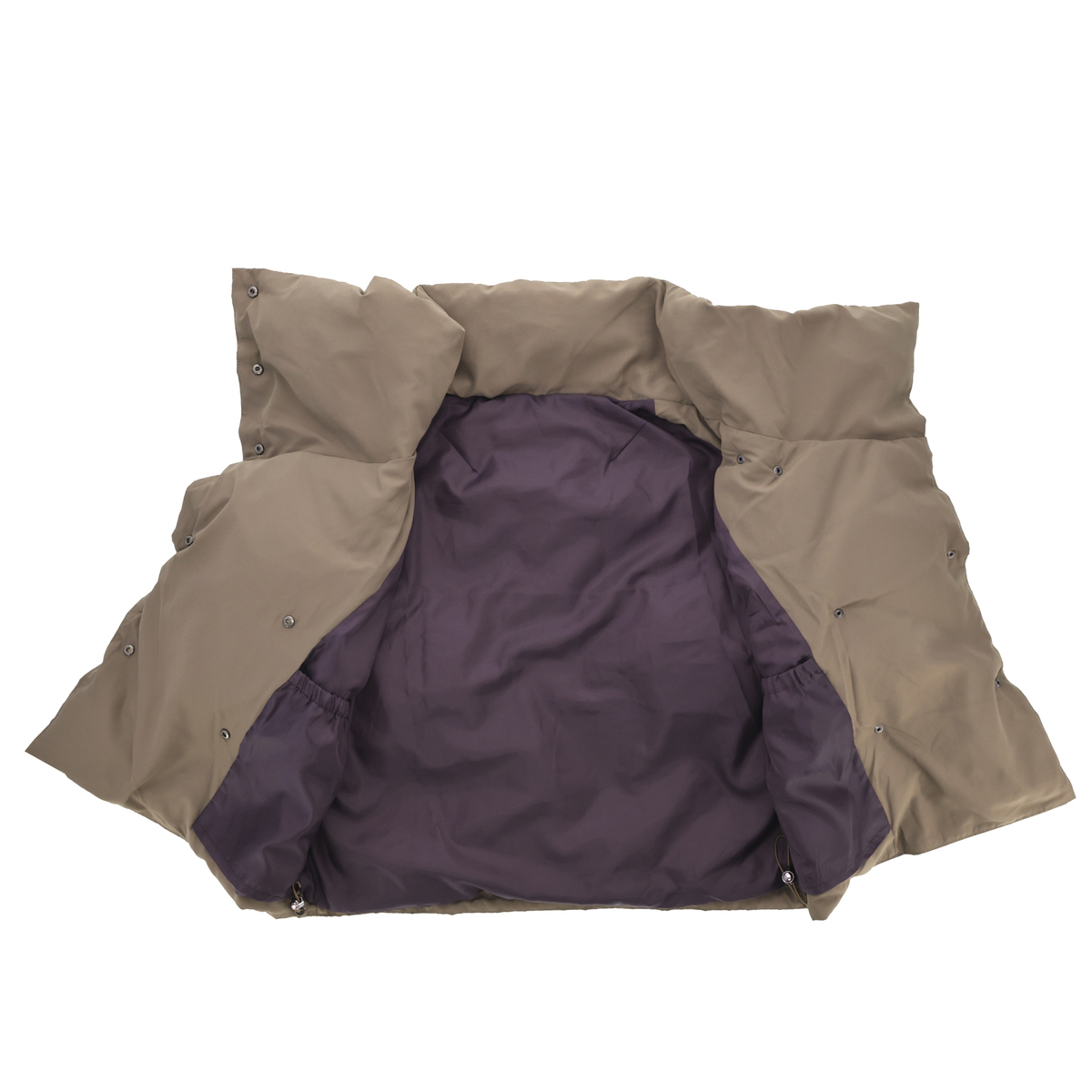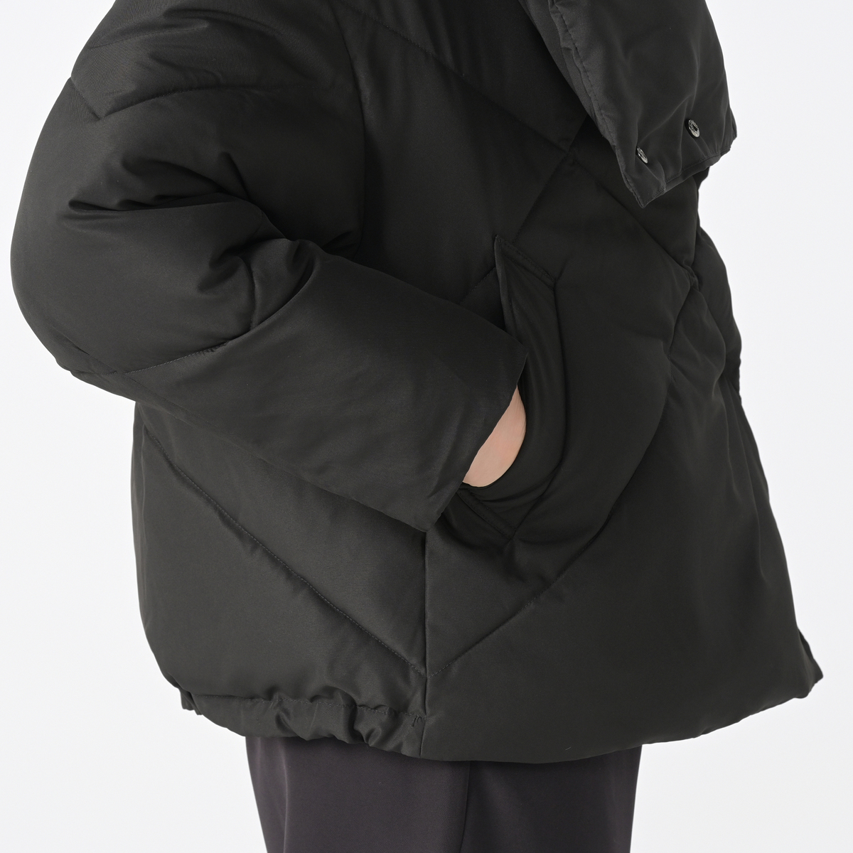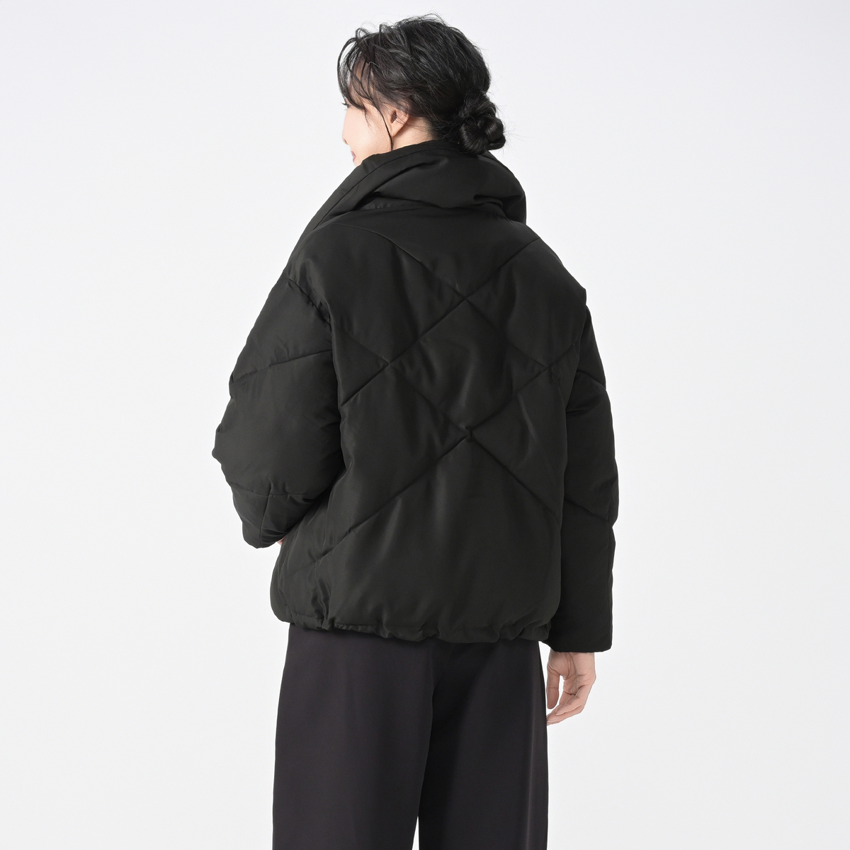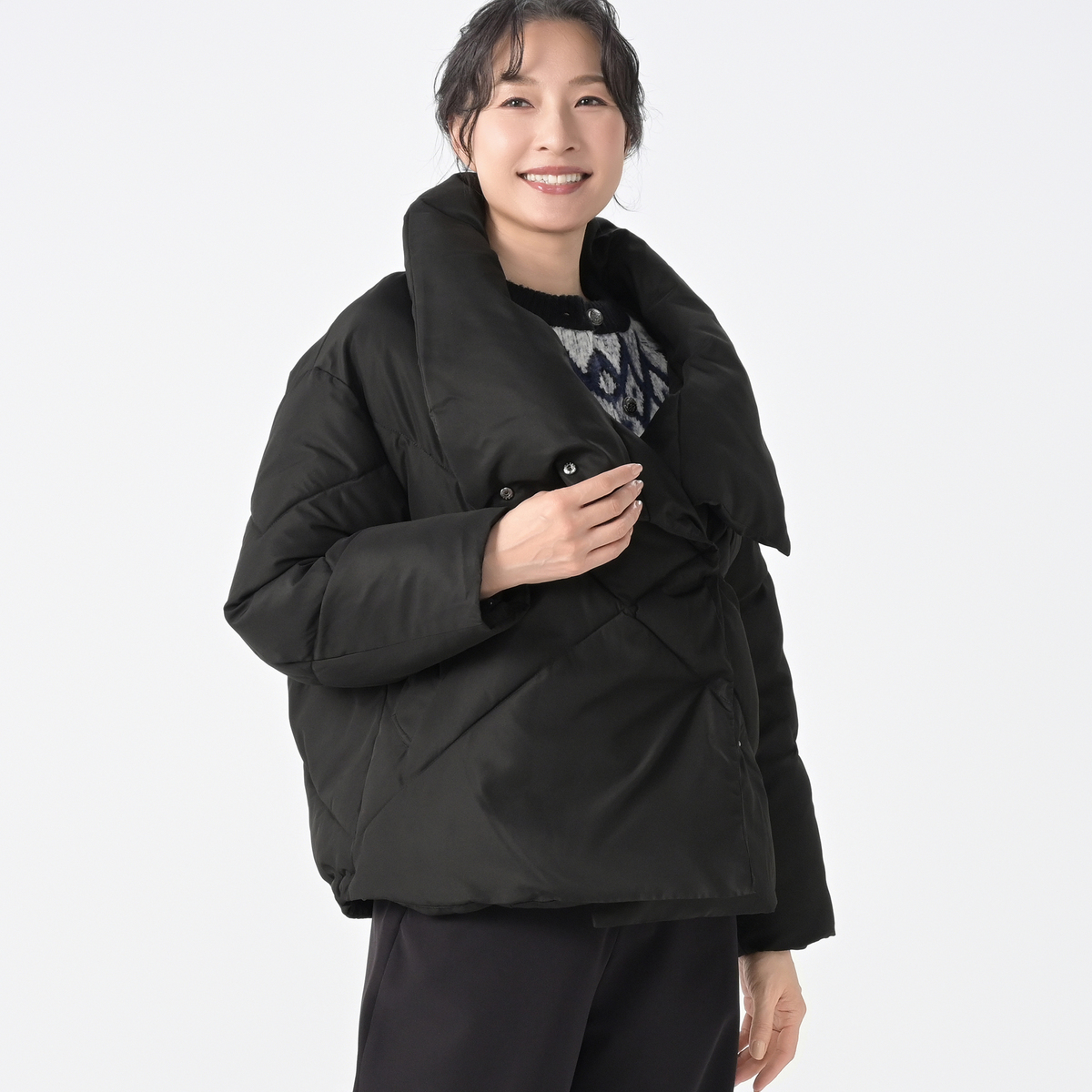 マットな表面感のタフタ素材を使用。薄い側地の柔らかなタッチで軽やかな着こなしに。独自の中空三次元スプリング構造の極細ファイバーのポリエステル中わたを使用。繊維との間にたくさん空気を含むことで、羽のように軽く体を包み込んでくれます