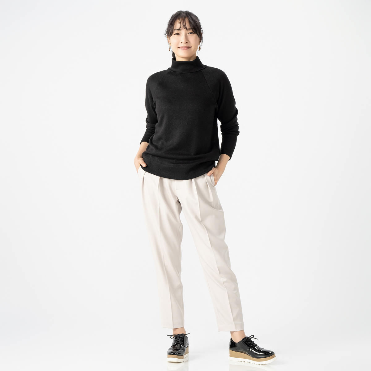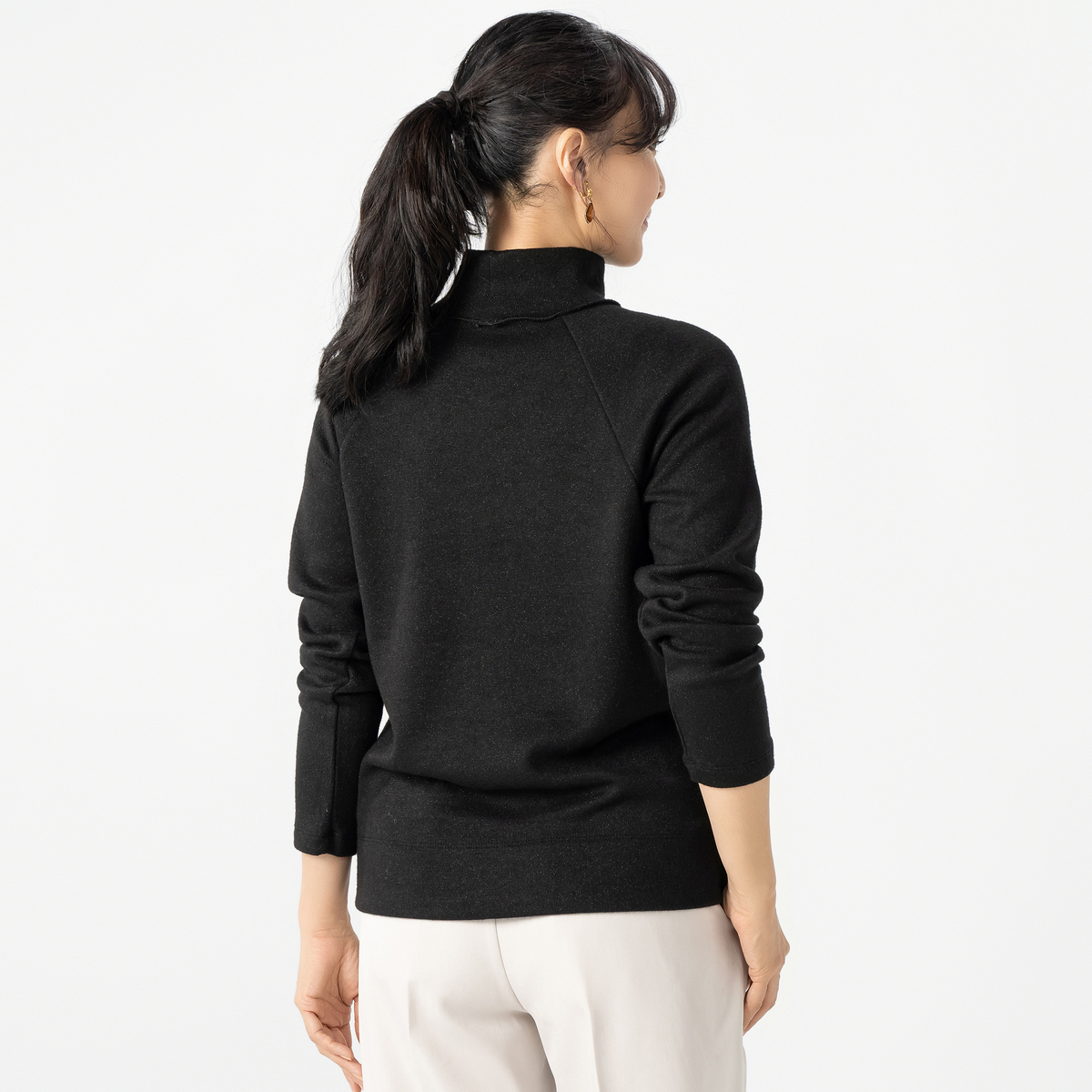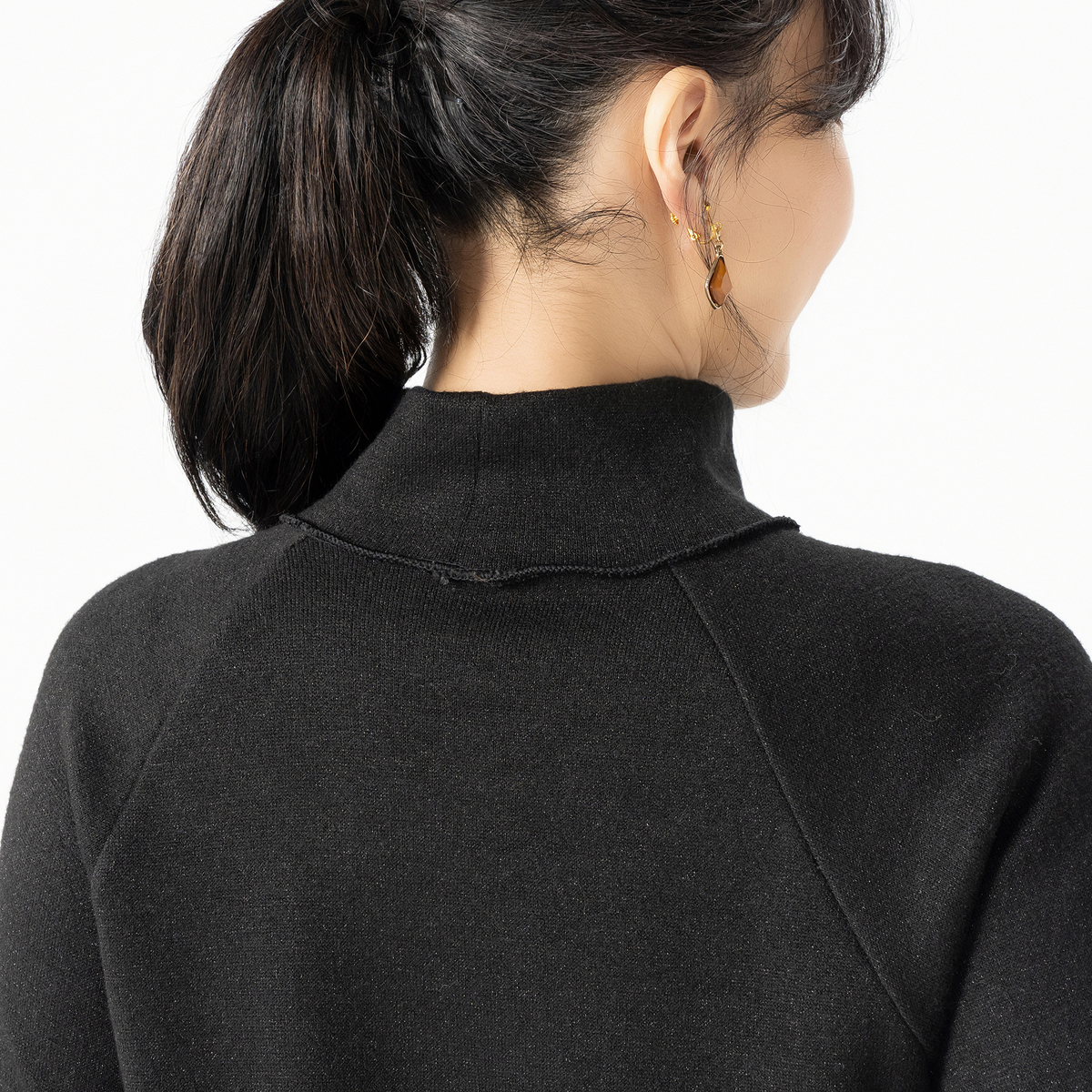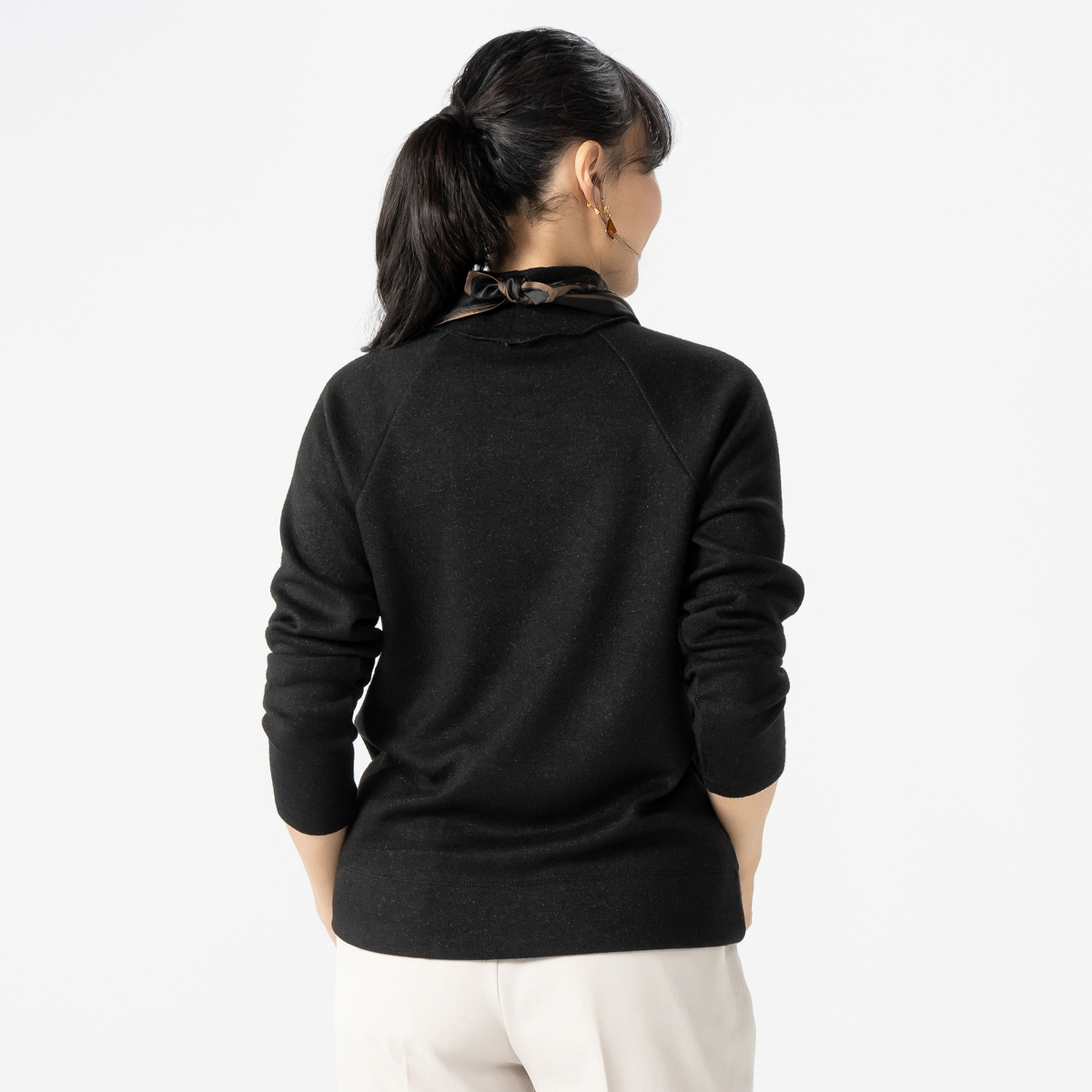 繊細なラメ混スムース素材を使用したプルオーバー。アイシャドウのような煌めくラメが上質な表情を醸し出します。素材の特徴で1枚着も可能ですし、長すぎない丈感なのでレイヤードコーデも楽しめます