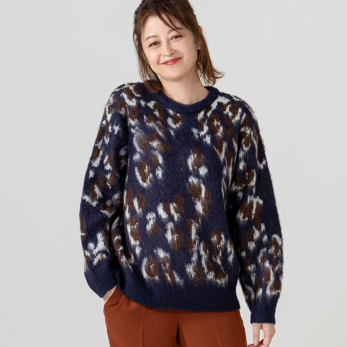 No. 748309 calma レオパードジャガード ふわり起毛ニット