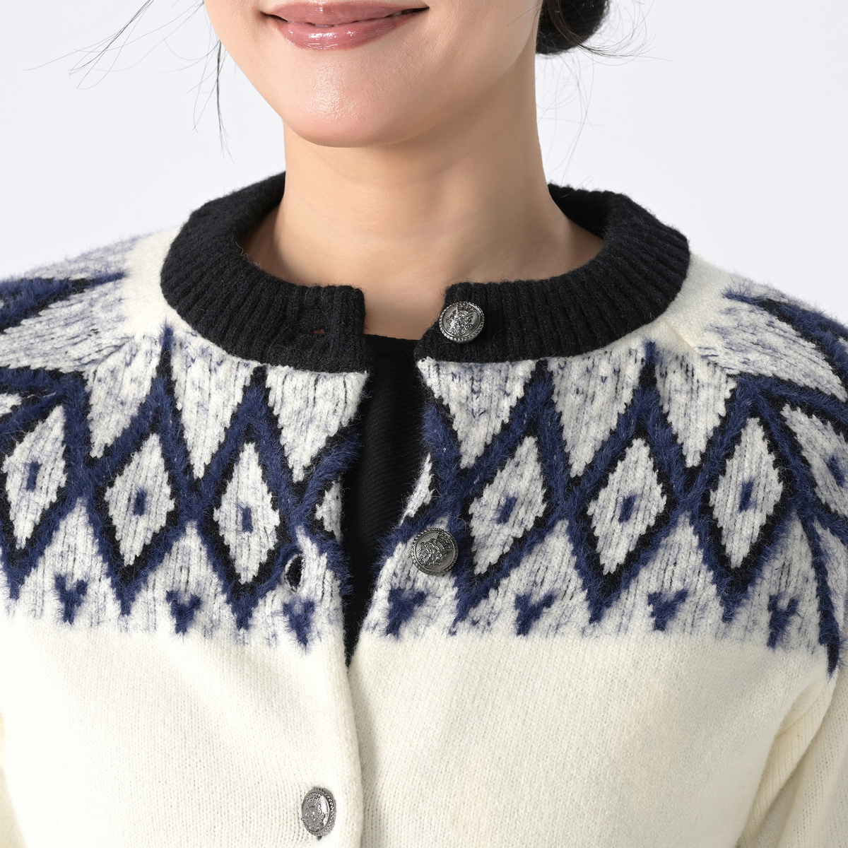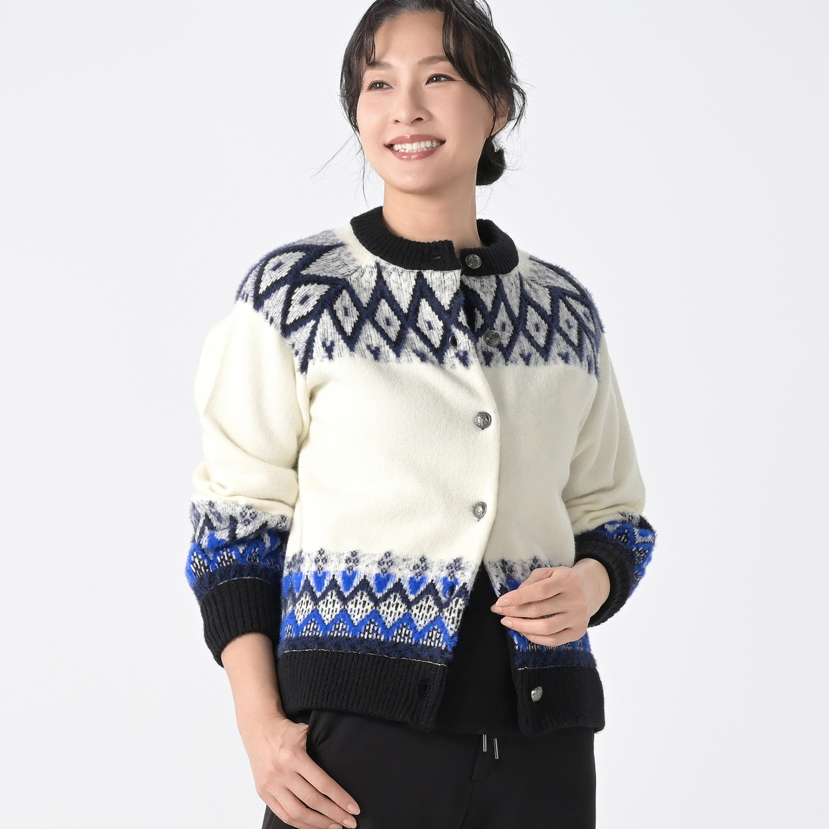 No. 748315 calma ボタンが光る ノルディック柄ニットカーディガン