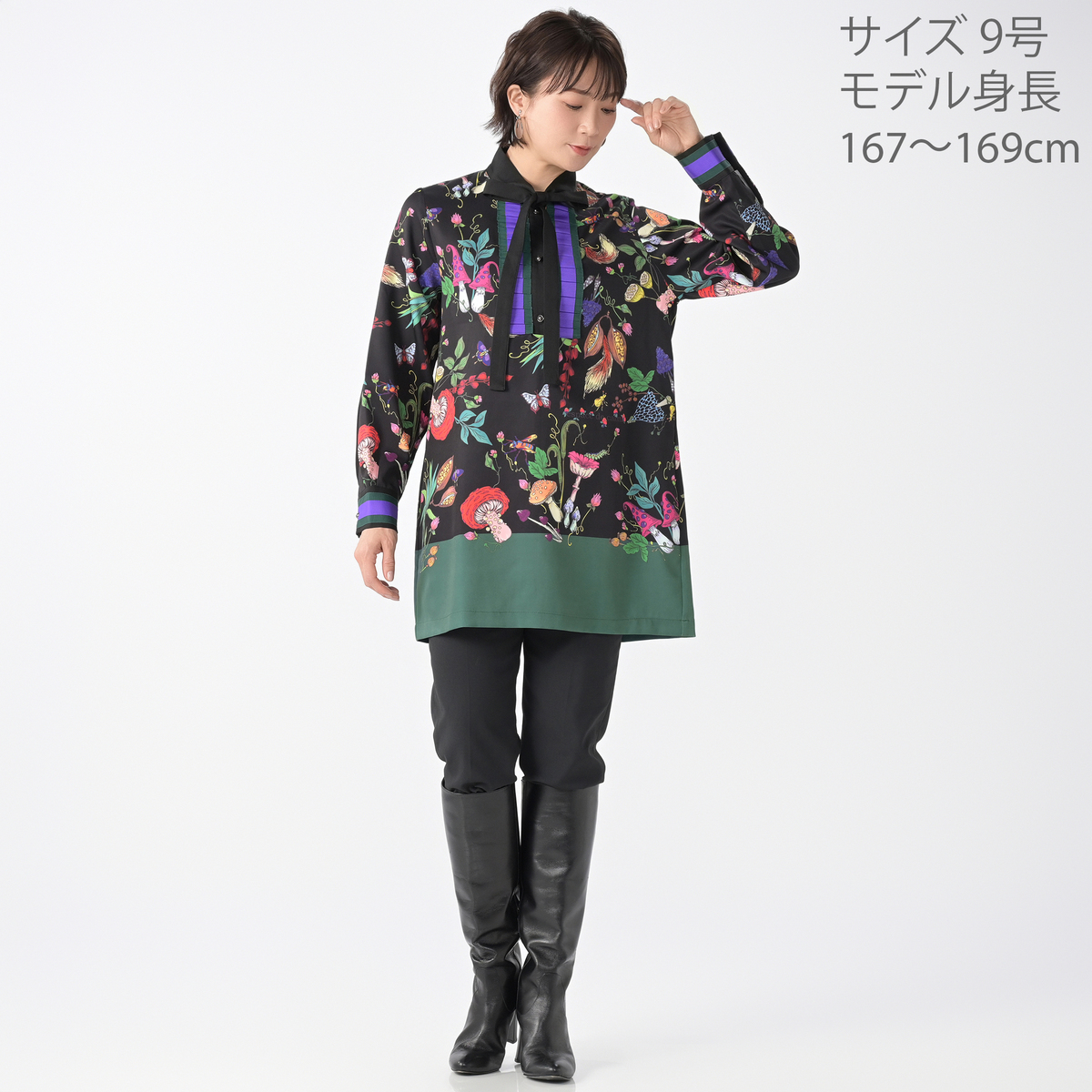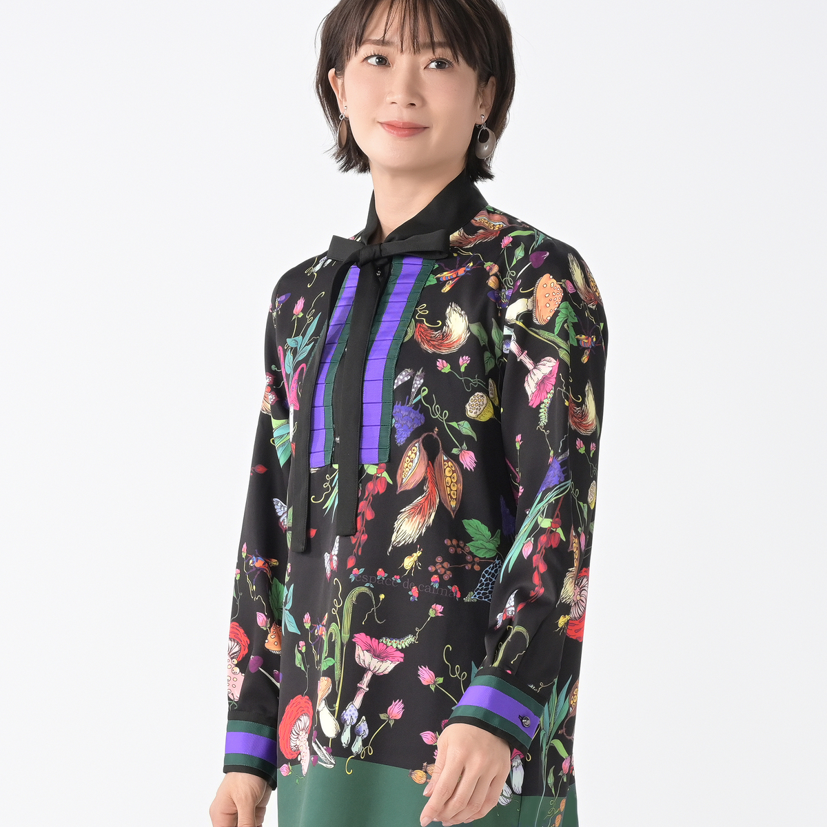 No. 748318 calma きのこプリント ラグジュアリーロングブラウス