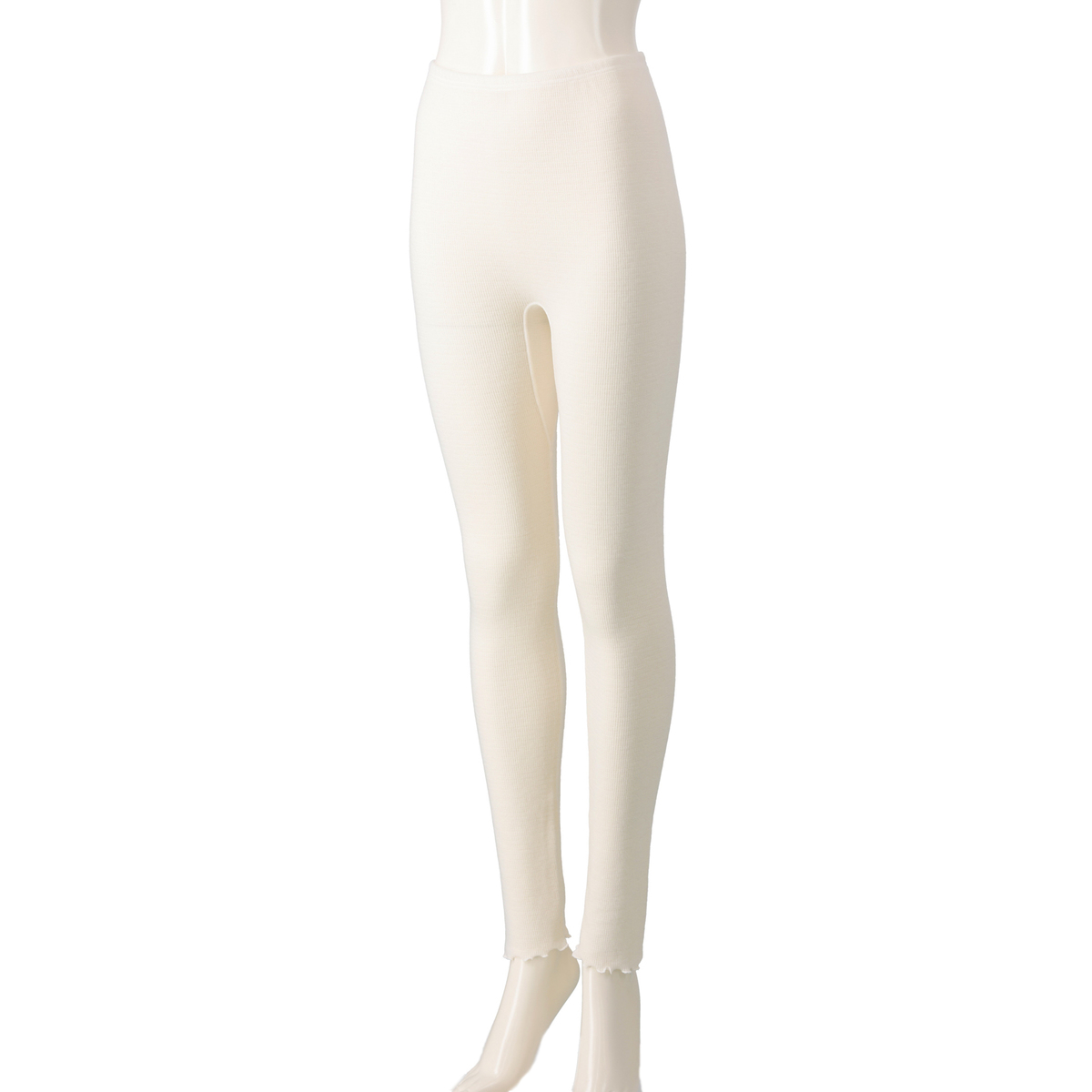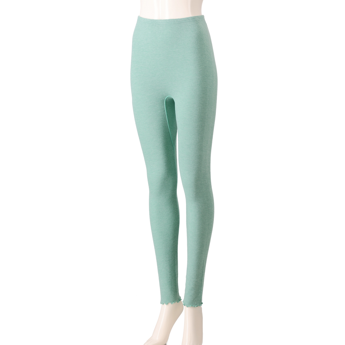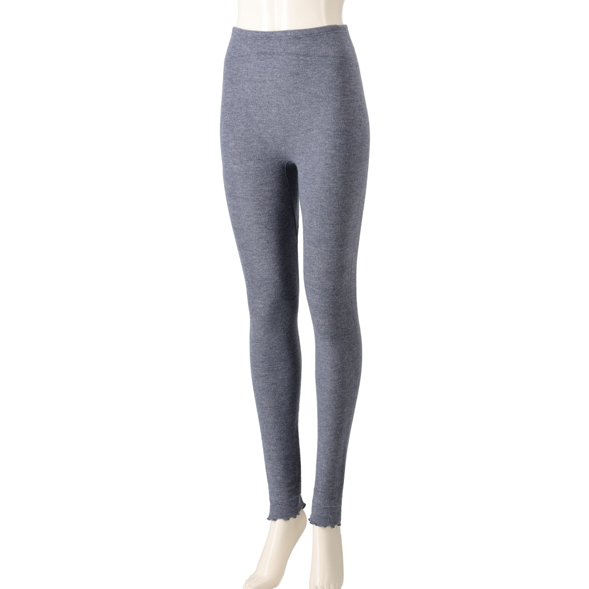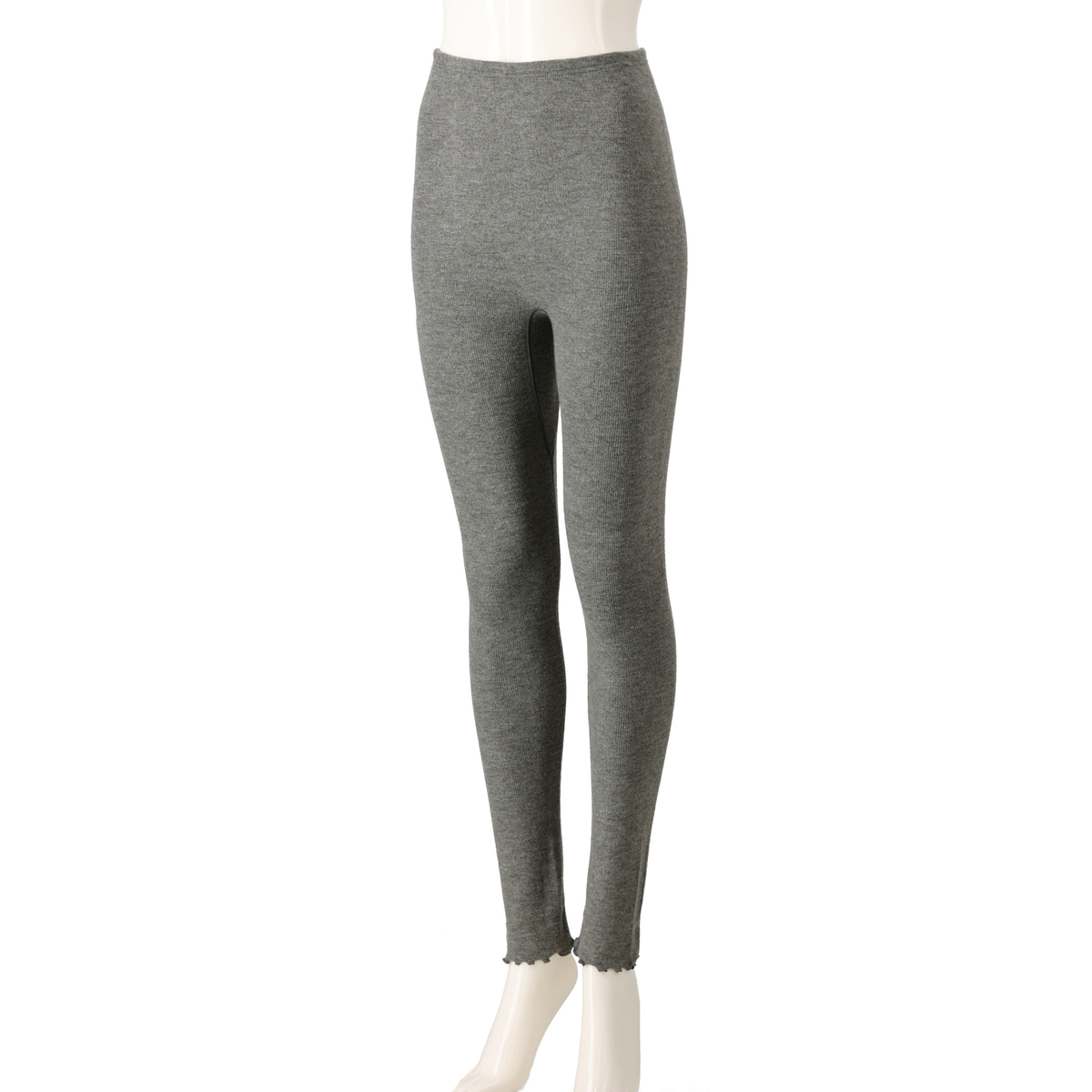旭化成の吸湿発熱素材サーモギアを使用したレギンス。袋編み2重組織の起毛素材でボリューム感があり、起毛の毛足が空気をふんわりと抱き込んで暖かです。裾はフリル感が可愛いメロー仕上げでさりげなくおしゃれに仕上げました
