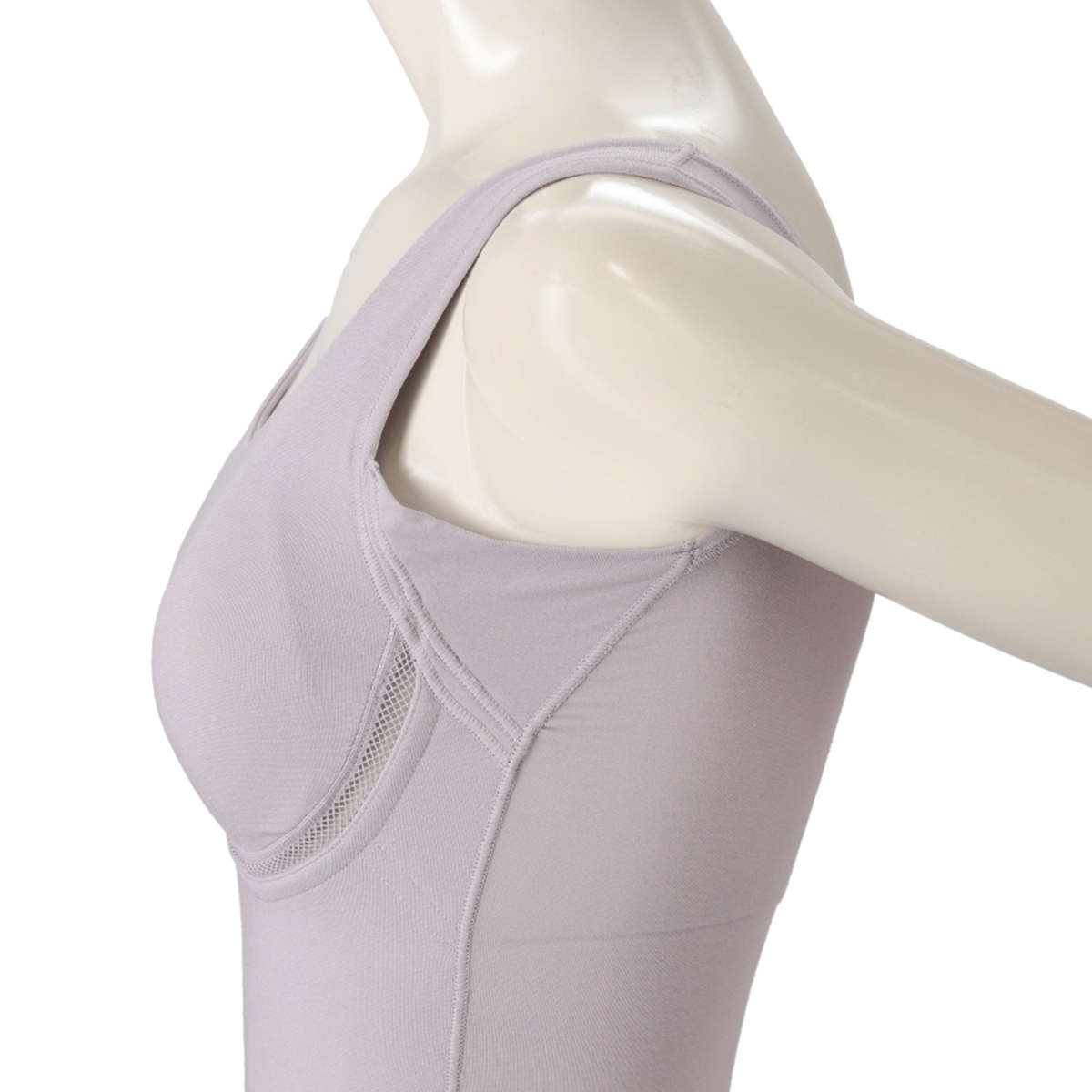 ワイヤー代わりに使用したバストアップメッシュテープがバストをぐるりと包み込みながらショルダー方向に引き上げ、下垂気味のバストをリフトアップ。伸び縮みするメッシュ構造で、幅広いバストサイズに対応します