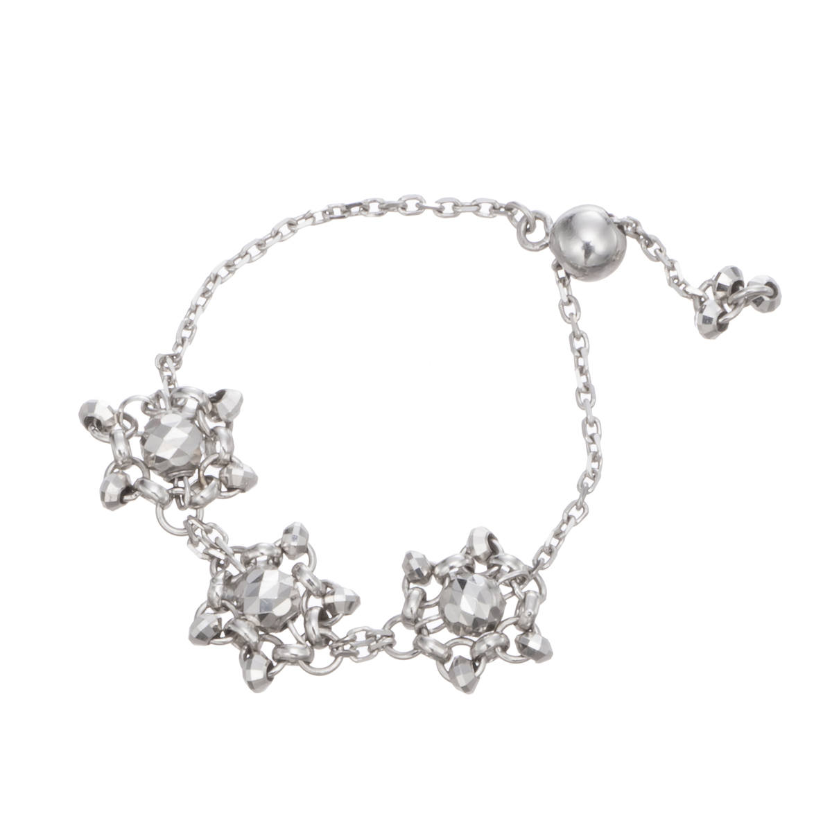 ミラーパーツを星状にあしらた、フェミニンなチェーンリング。パーツにカットを施すことで、眩い煌めきを放ちます