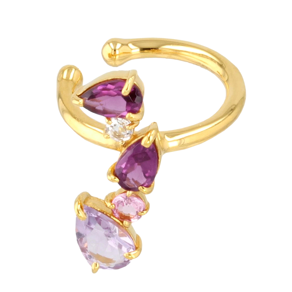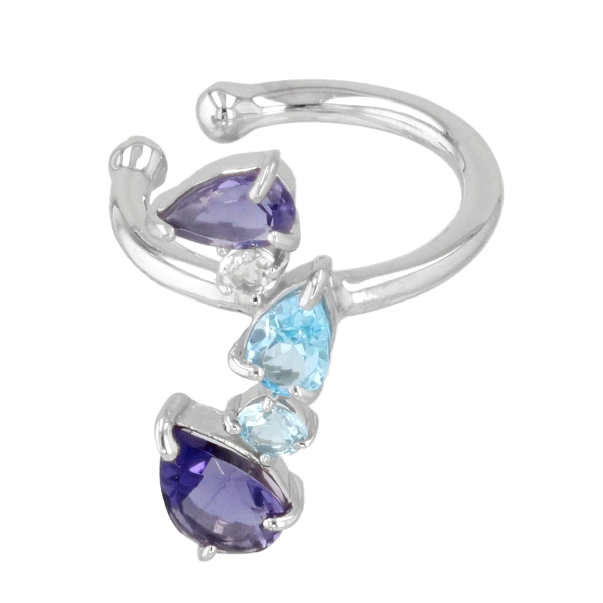 素材:<シルバーカラー> [アイオライト] ペアシェイプ 爪留め 2石 [ブルートパーズ] ペアシェイプ 爪留め 1石、 ラウンドシェイプ 爪留め 1石 [ホワイトトパーズ] ラウンドシェイプ 爪留め 1石 <ゴールドカラー> [アメシスト] ペアシェイプ 爪留め 1石 [ガーネット] ペアシェイプ 爪留め 2石 [ピンクトルマリン] ラウンドシェイプ 爪留め 1石 [ホワイトトパーズ] ラウンドシェイプ 爪留め 1石 縦×横(約) 15.5×17.5mm 総重量(約) 1.2g 留具の形状 イヤーカフ [地金] シルバー925 [メッキ] シルバーカラー:ロジウムメッキ ゴールドカラー:金メッキ ■素材の大きさ・形・色合い、製品のサイズは1点1点多少異なります ■専用ケース付 【日本製】