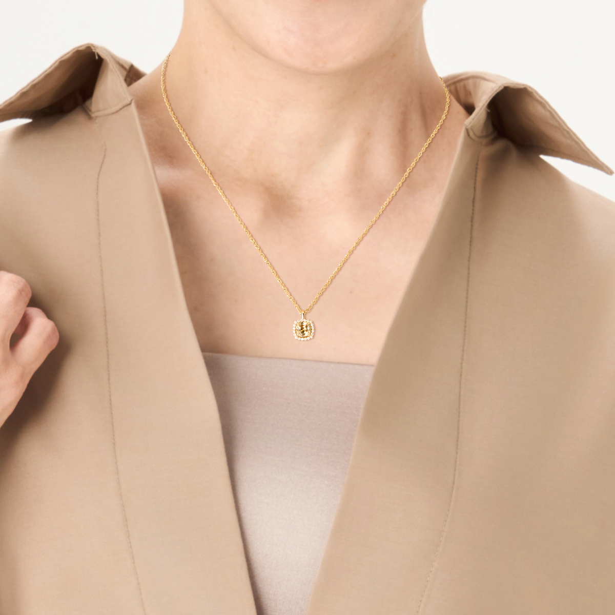 素材: [イエロージルコン] スクエアシェイプ 爪留め 1石 1.30ctUP [ダイヤモンド] ラウンドシェイプ 爪留め 20石 合計0.10ctUP 総重量(約) 1.6g 長さ(約) 43.0cm バチカンの内径(約) 3.5×1.8mm 幅(約) 1.5mm チェーンの形状 スクリュー 留具の形状 引き輪 アジャスターの有無 無 チェーンの取り外し 可 ヘッドの縦×横(約) 13.0×8.5mm [地金] 18Kイエローゴールド ■受注発注商品のためデザイン・価値に影響のない範囲で仕様が変わる場合がございます ■素材の大きさ・形・色合い、製品のサイズは1点1点多少異なります ■カナリーイエロージルコンは商業名で宝石名はイエロージルコンです ■中空製品のため、強い衝撃を与えますと破損や変形の恐れがありますのでご注意ください 【ペンダントヘッド:日本製、チェーン:ベトナム製】
