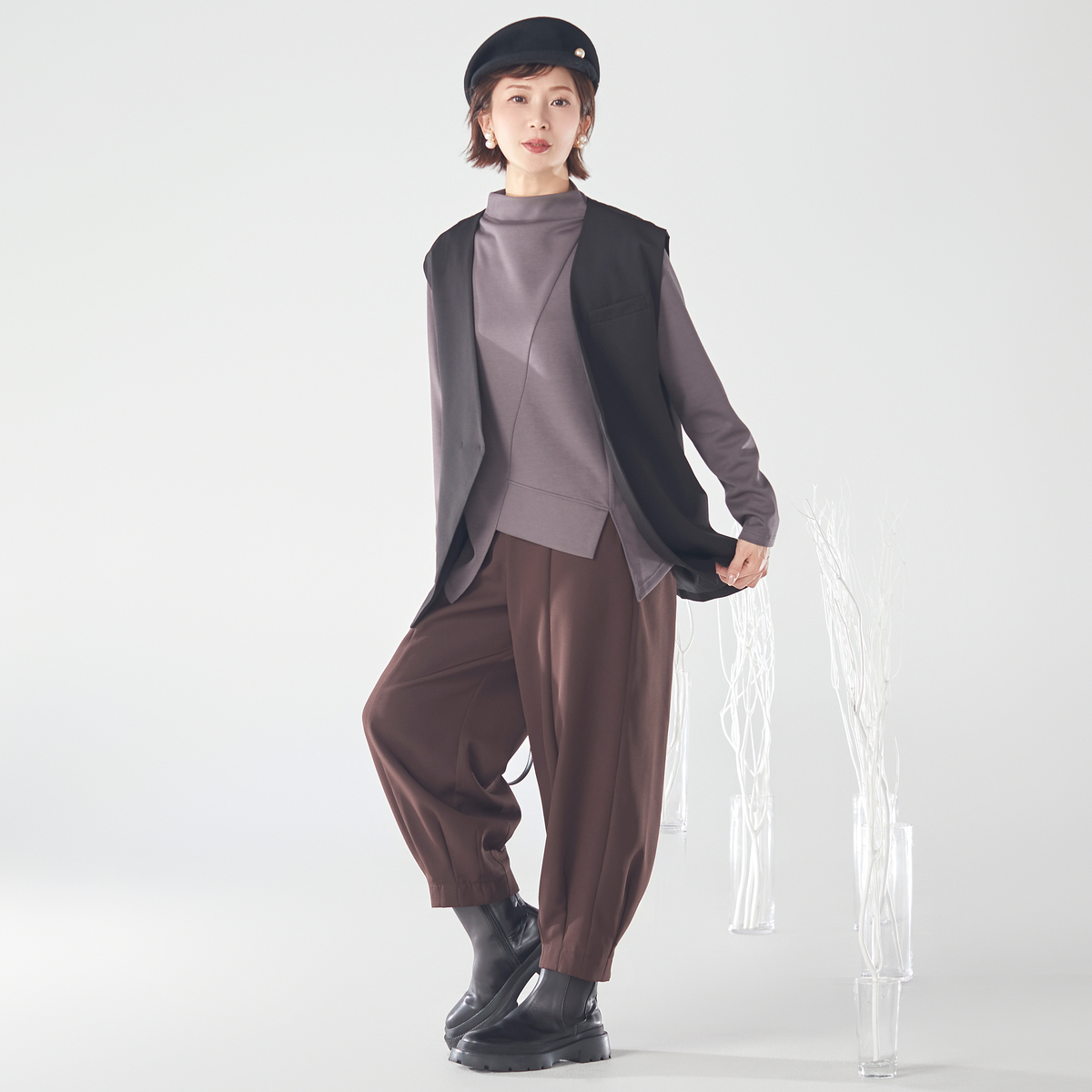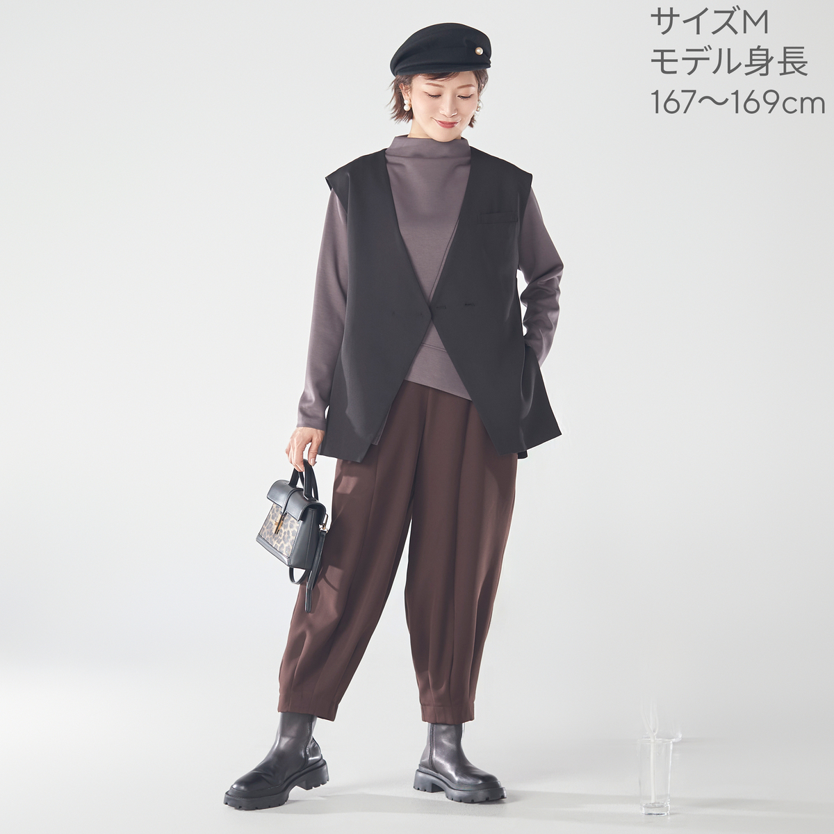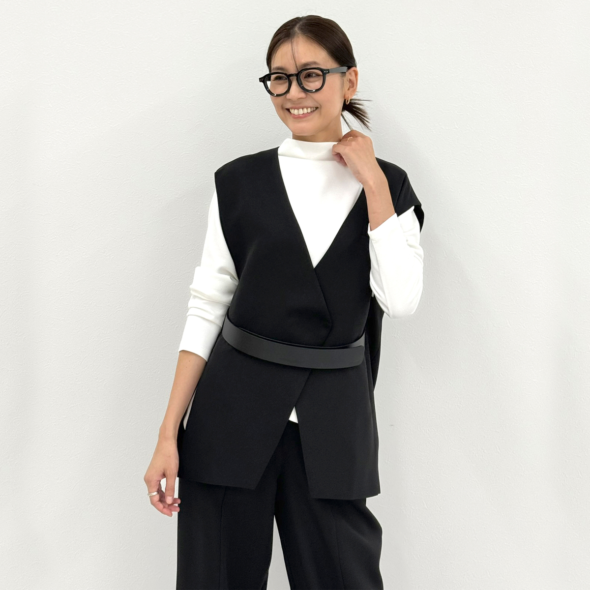 ウエスト部分にはベルト通し付きで、お手持ちのベルトを使ったアレンジも。デニムに合わせてカジュアルに。きれいめなボトムスと合わせてモードにも着こなせます