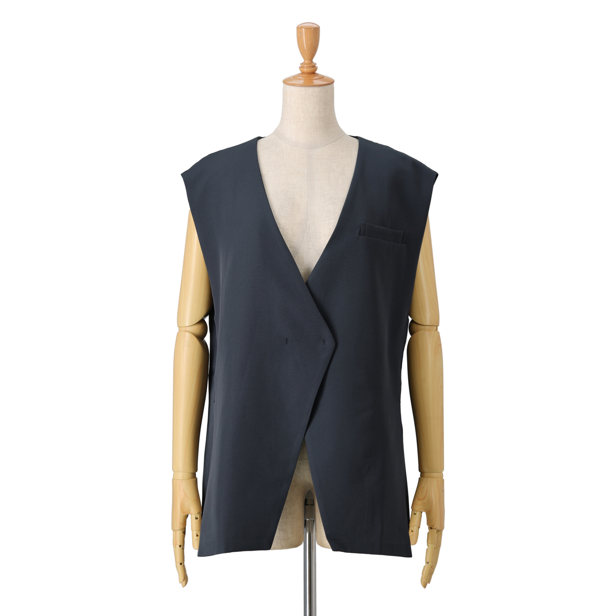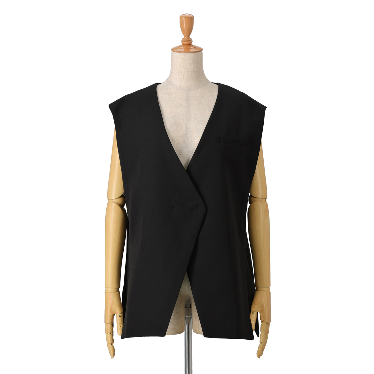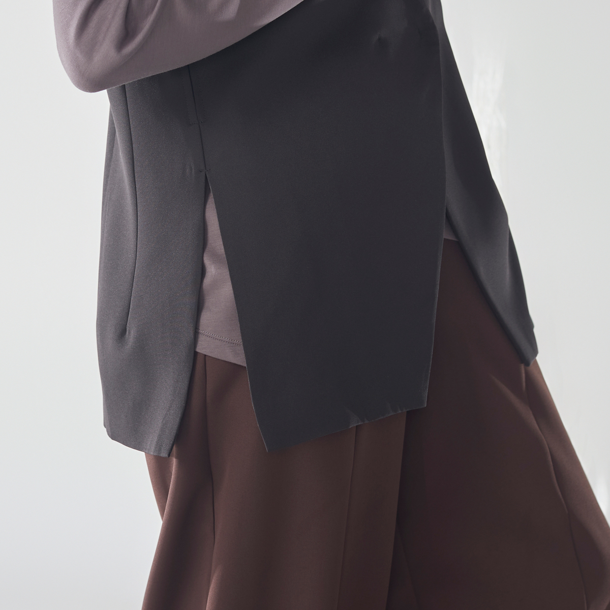裾に変化をつけたデザインが目を引くVネックジレ。着回しがしやすく、シンプルながらも洗練された印象を与え、普段のコーディネートを格上げしてくれます