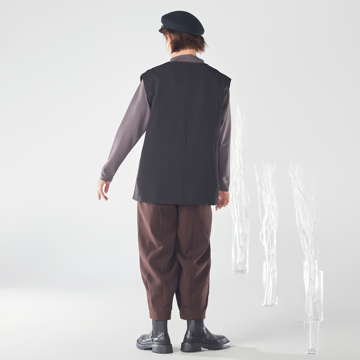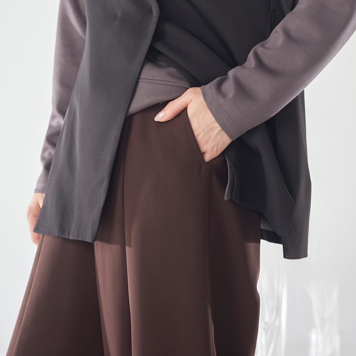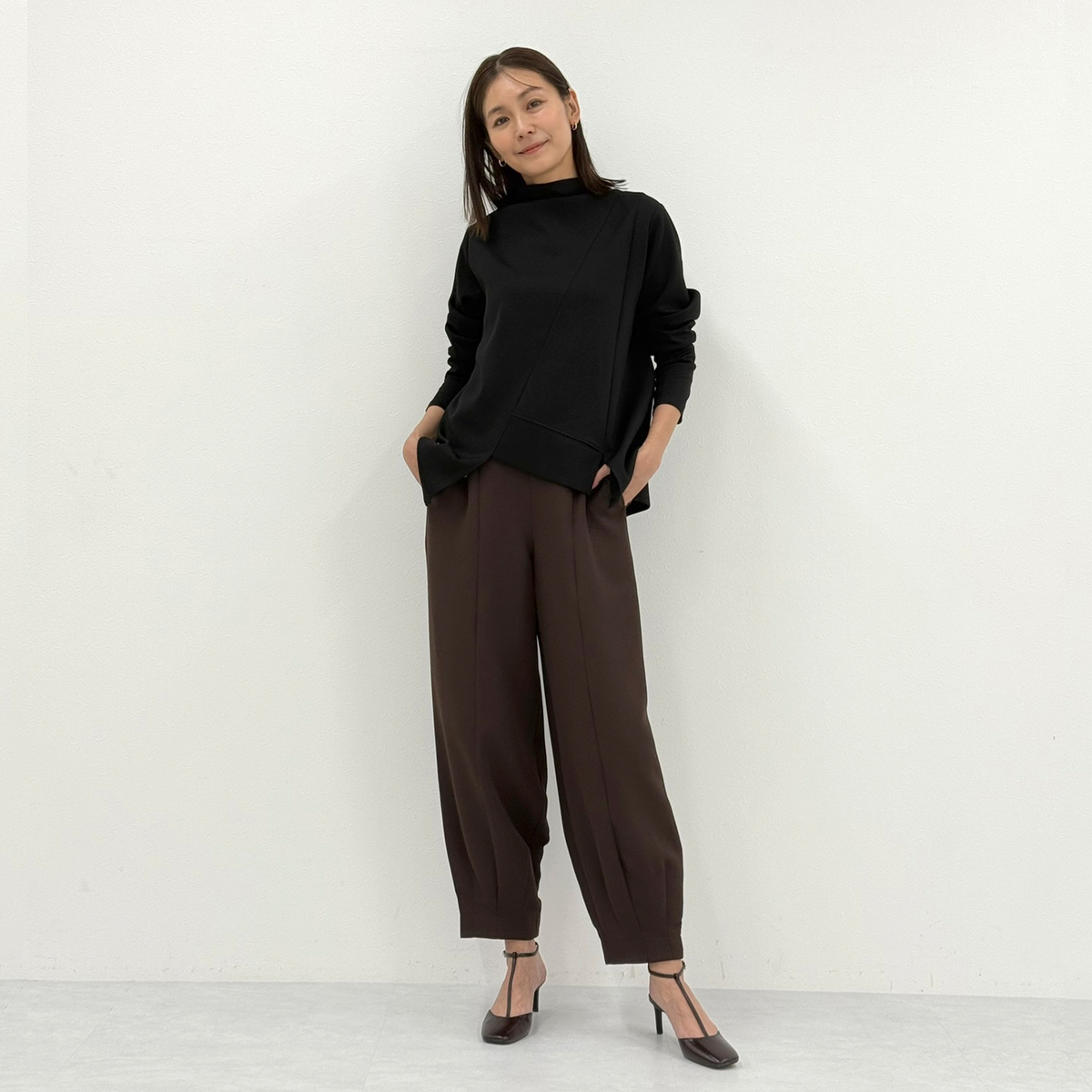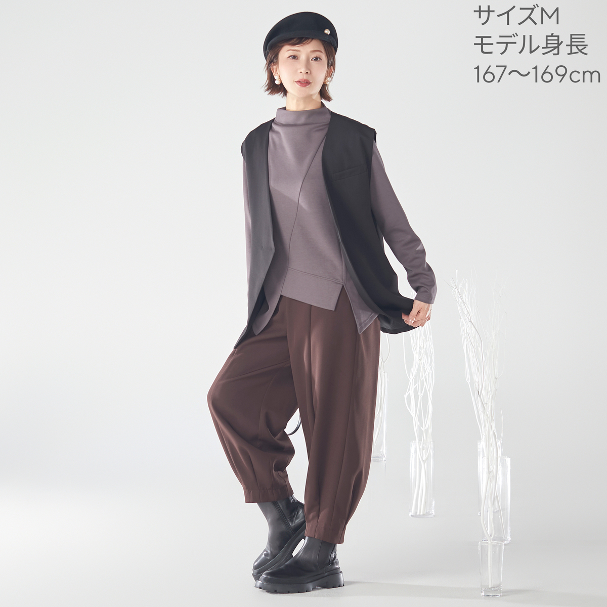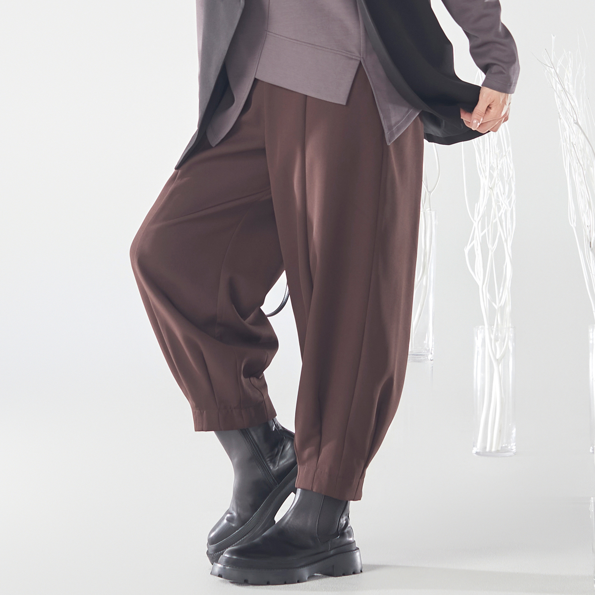 仕立て映えする素材を採用しているため、トップスを変えるだけでさまざまなコーディネートが可能。着回し力があり、幅広いシーンで活躍します