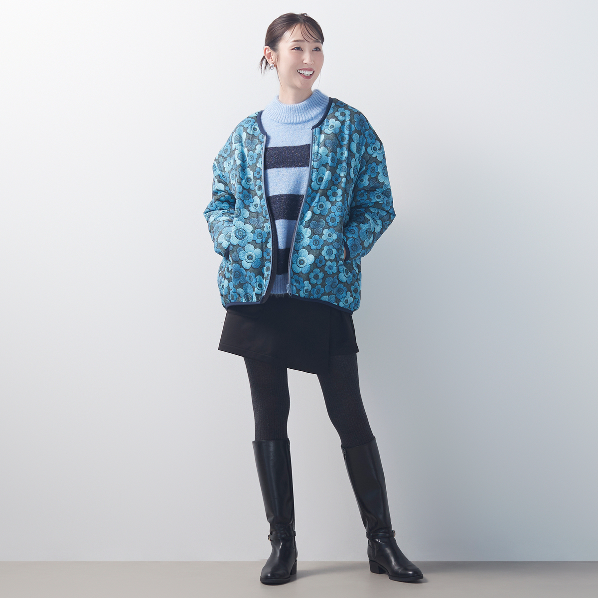 ハイネック仕様で暖かさをキープしつつ、着丈はパンツやスカートと合わせやすい丈に拘りました。袖口リブは減らし目で仕立て、冬のアウターの下でもすっきり着られるシルエットです