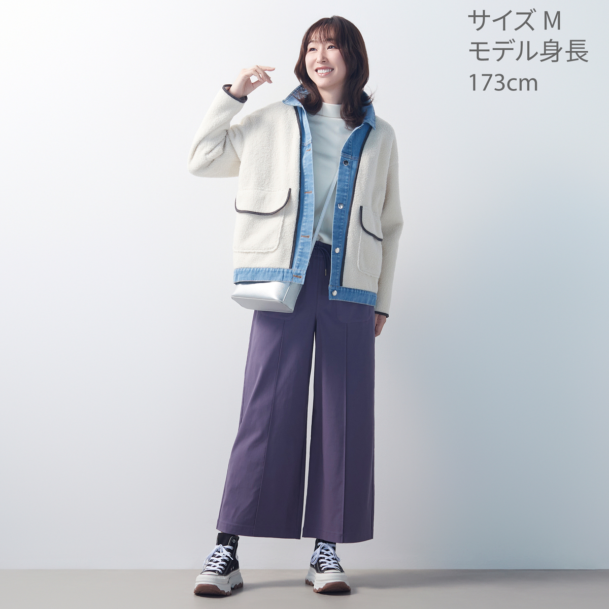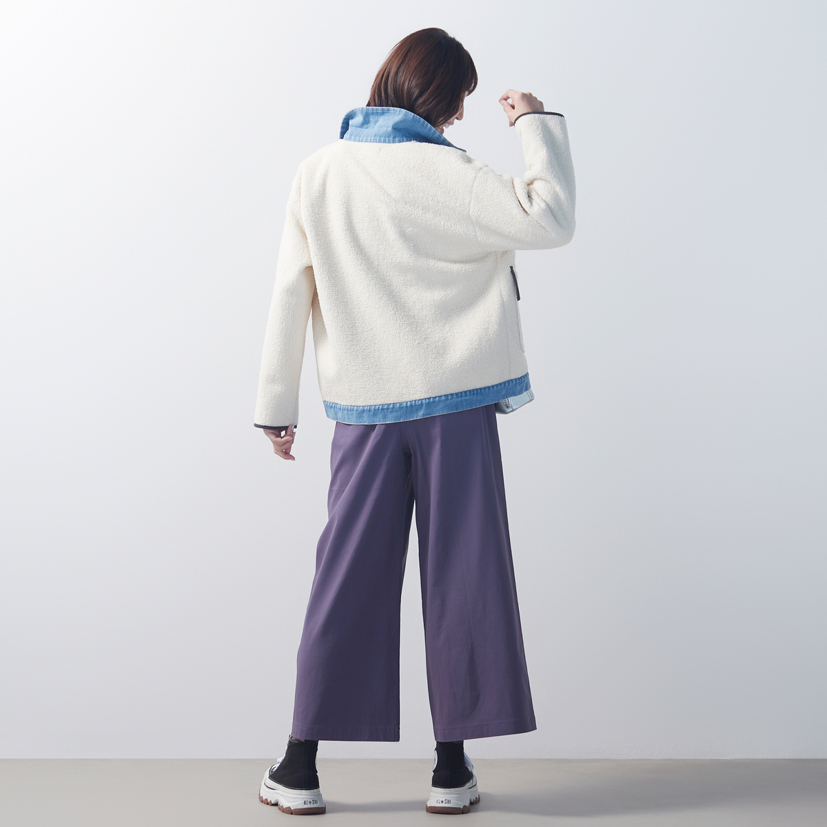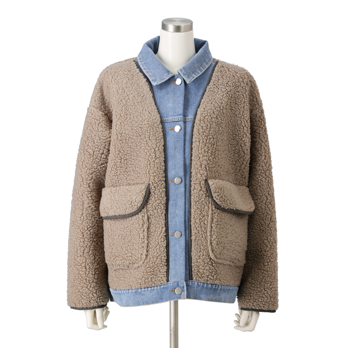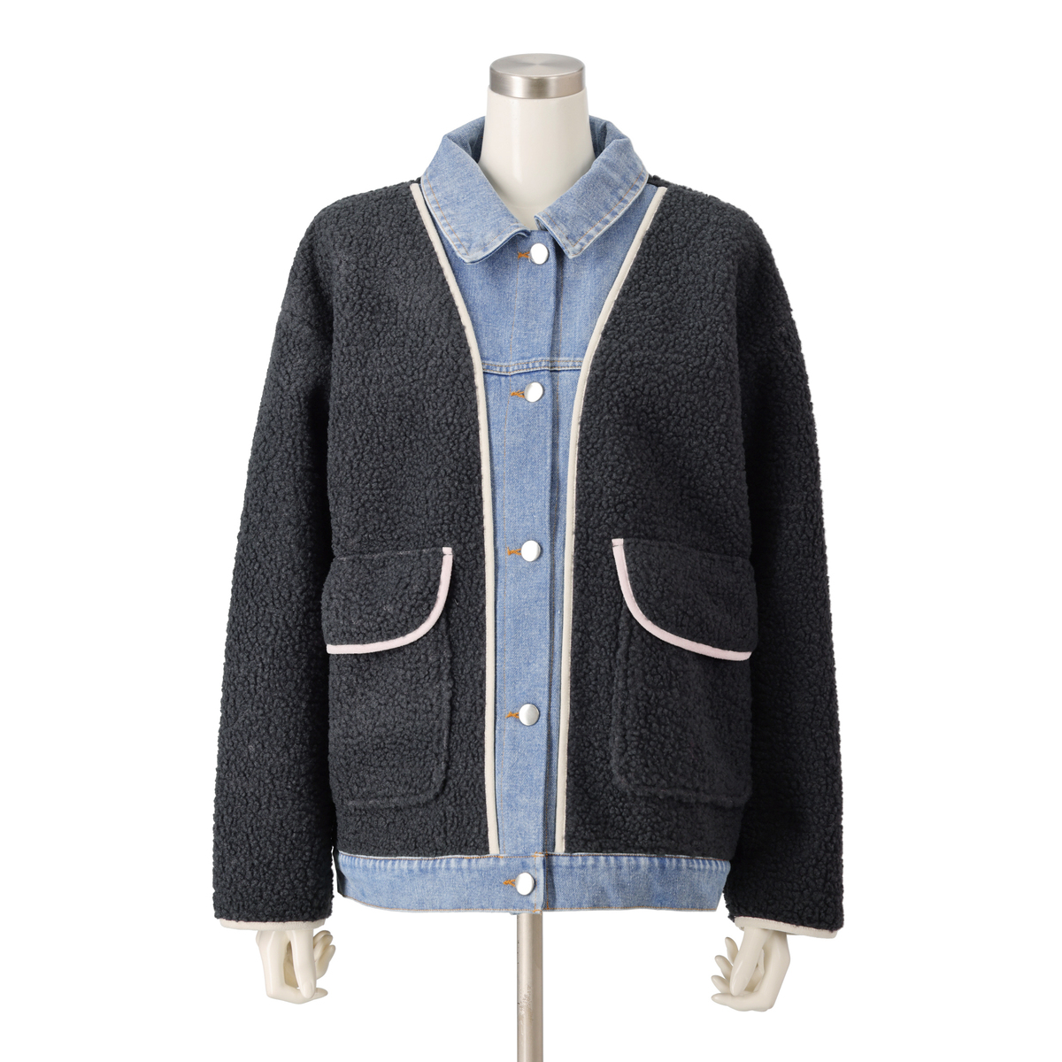 ボアとフェイクスエードのボンディング生地に、ミドルオンスのデニムをドッキングしたブルゾン。異素材のコントラストがコーデのポイントになってくれます