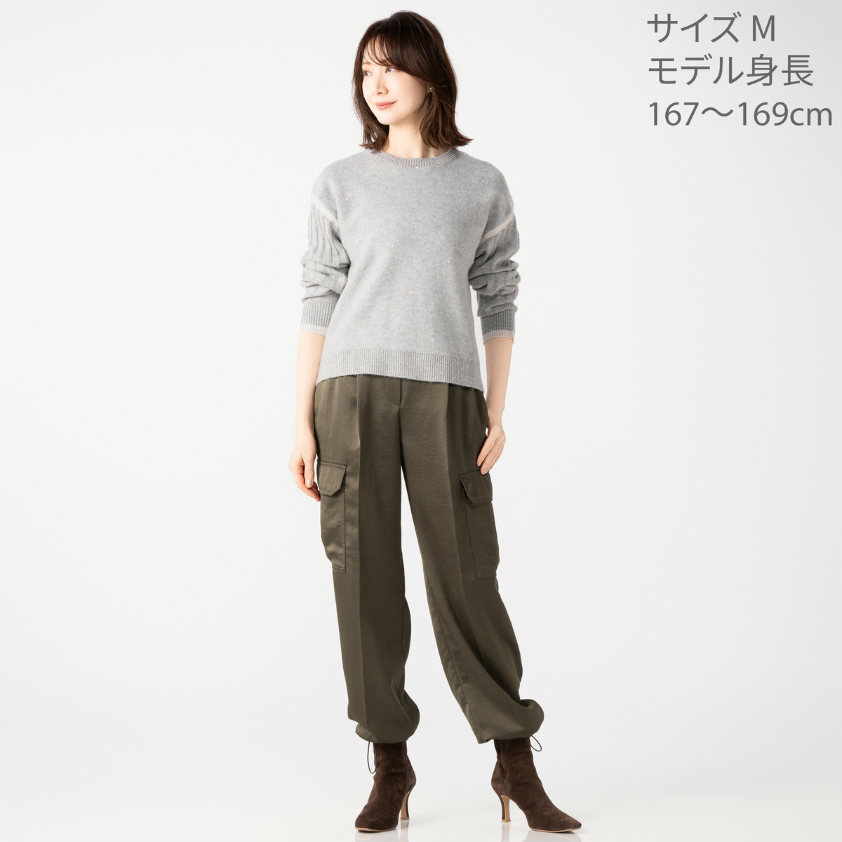 [商品寸法(ヌード)cm] サイズ バスト 着丈 裄丈 S:92(72〜80) 60 76.5 M:98(79〜87) 60 77 L:104(86〜94) 61 78.5 LL:110(93〜101) 61 79 3L:116(100〜108) 61 79.5 [素材] ライトグレー: アクリル50% ポリエステル46% ポリウレタン2% ナイロン1% 毛1% ブルー: ポリエステル51% アクリル44% ナイロン2% ポリウレタン2% 毛1% [お手入れ] 手洗い可 [注意事項] ※商品寸法の誤差は多少発生します。ご了承下さい ※洗濯機での洗濯は行わず、必ず手洗いで軽く押し洗いして下さい ※洗濯後はすぐに脱水し、形を整えて干して下さい。長時間水につけたままにしないで下さい ※洗濯・クリーニングの際、色落ちすることがありますので他の物と分けて洗って下さい ※濃色製品は着用中の摩擦により色移りすることがあります。また、雨や汗等で濡れた状態で着用すると色移りすることがあります。その際はお早めに洗濯をして下さい ※素材の特性上、着用や洗濯・クリーニング時の摩擦により毛羽立ち、毛玉が発生します。その際はお早めに毛玉取り器等で手入れをして下さい ※直射日光や蛍光灯の影響で変色することがありますのでご了承下さい ※デリケートな素材を使用していますので、爪やアクセサリーなどの引っ掛かりによりキズがつきやすくなっております。縫目や生地を強く引っ張らないよう注意して下さい ※中性洗剤使用 ※アイロンの際は、あて布をご使用下さい <スリット糸の取扱いご注意> ※汗やシミの付いたまま放置すると、スリット糸の光沢が消滅することがあります。保管前には必ず洗濯またはクリーニングして下さい ※保管時に2種類以上の防虫剤を併用すると、変色・光沢消滅の原因になることがありますので注意して下さい ※湿度の高い場所での保管は避けて下さい 【中国製】