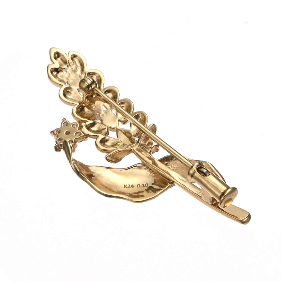 麦の穂をモチーフにしたブローチ。細かなテクスチャーを施すことで麦の穂の質感を表現しました。麦の花をイメージしてあしらわれたダイヤモンドがアクセントを添えています