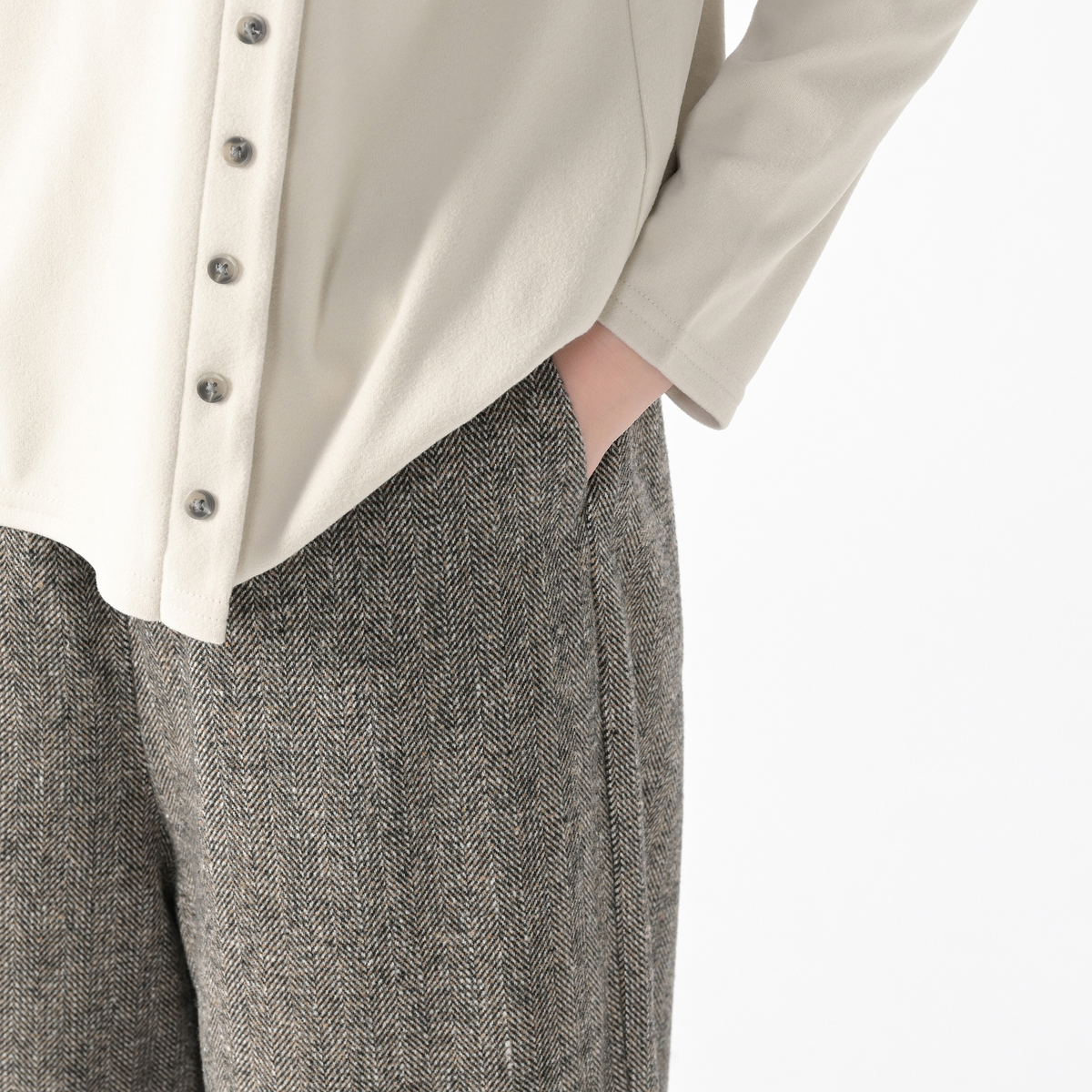 表情豊かな多色使いのヘリンボーン柄パンツ。シンプルな着こなしにニュアンスを加え、季節感を感じるスタイルに仕上がります