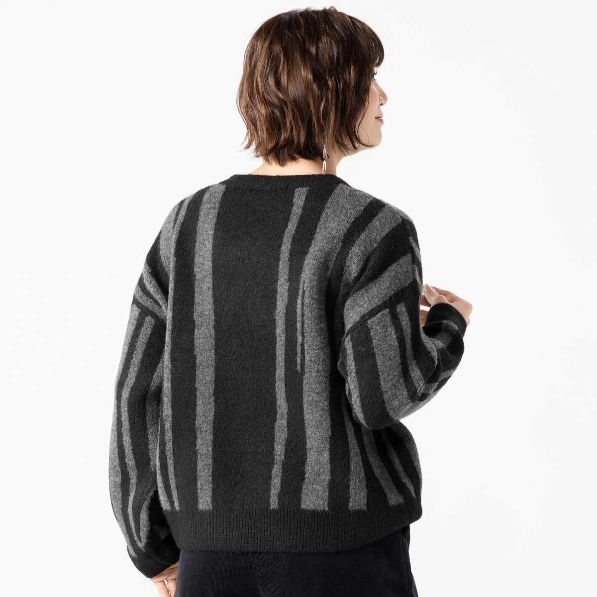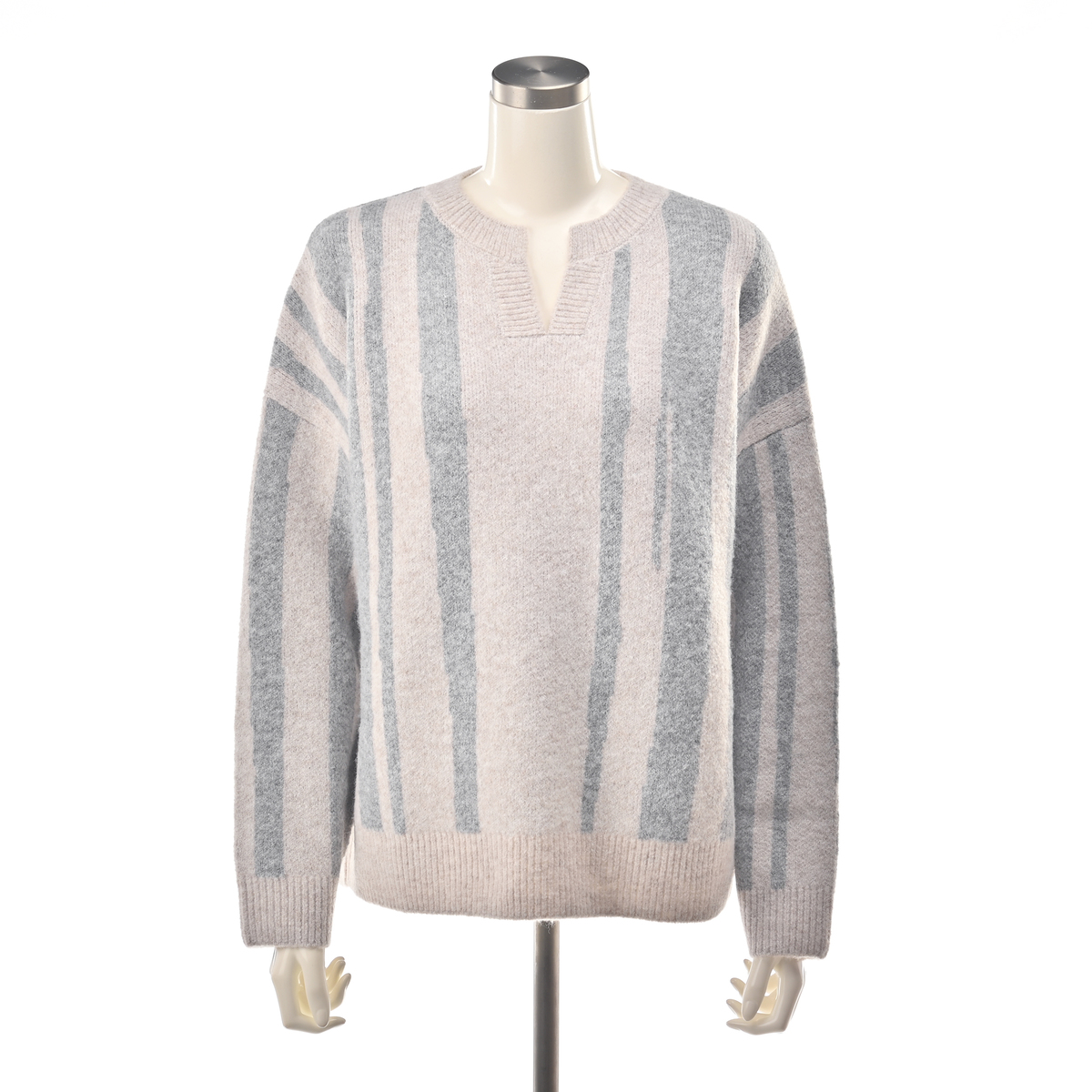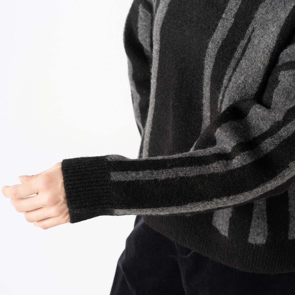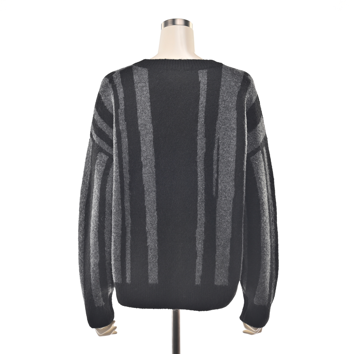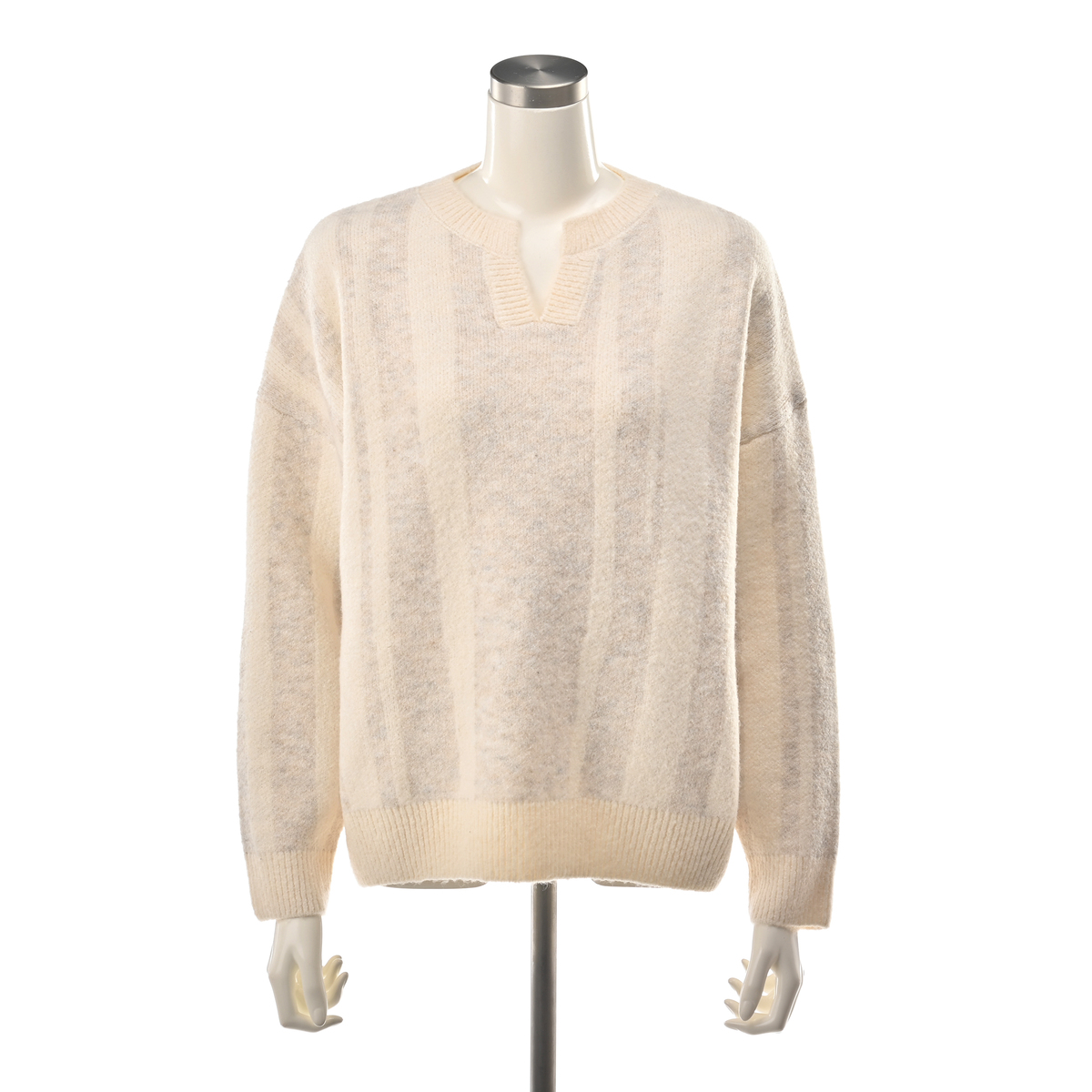 手書き風のランダムなストライプ柄のニットプルオーバー。もちもちの肌触りで暖かく、シャープな印象で着こなせるアイテムです