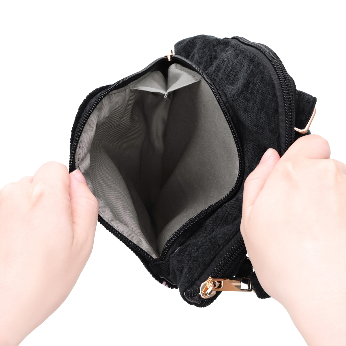 シェニール織が華やかなショルダーバッグです。小ぶりなのでちょっとしたお出かけに便利。小物を入れてサブバッグとしてもお使いいただけます