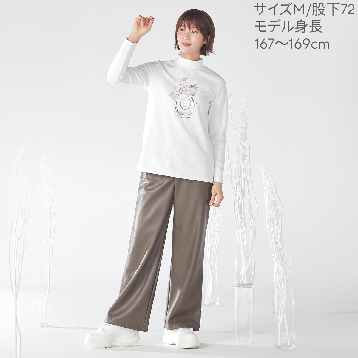 No. 748518 Pixie Heart 柔らか裏起毛レザー調ワイドパンツ