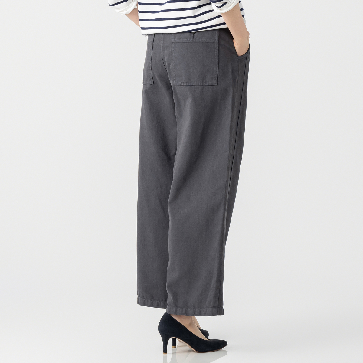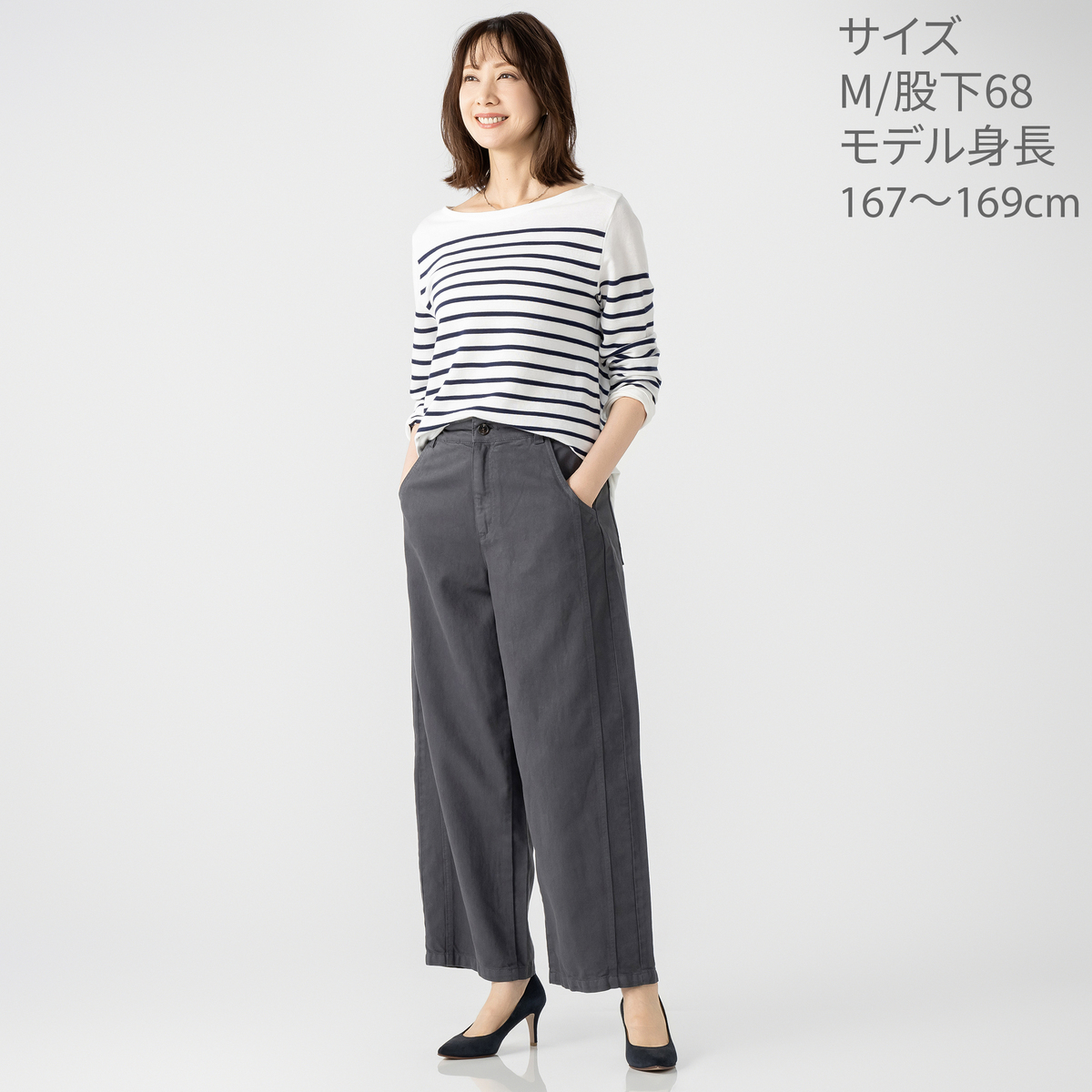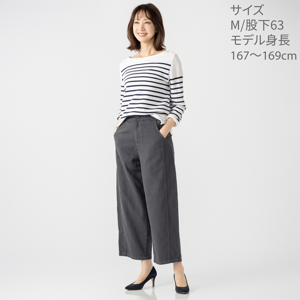 [商品寸法(ヌード)cm] サイズ ウエスト ヒップ S:63(58〜64) 91(82〜90) M:69(64〜70) 96.5(87〜95) L:75(69〜77) 102(92〜100) LL:81(77〜85) 107.5(97〜105) 3L:87(85〜93) 113.5(102〜110) サイズ 前股ぐり わたり幅 S: 30 33 M: 31 34.5 L: 32 36 LL: 33 38 3L: 34 39.5 股下:63/68 [股下身長目安] 股下:63cm(身長160cm未満目安) 股下:68cm(身長160cm以上目安) [ウエストゴム] 後ろ一部に有 [素材] 綿55% 再生繊維(セルロース)45% [お手入れ] 洗濯機洗い可 [注意事項] ※商品寸法の誤差は多少発生します。ご了承下さい ※洗濯時はネットを使用して下さい ※アイロンは当て布を使用して掛けて下さい ※釦にはアイロン禁止 ※ゴム使用部分アイロン禁止 ※染料の性質上、洗えばあらうほど色が落ちていきます。洗濯により洗液が濁りますので他のものとわけて洗って下さい ※洗うごとに生まれる独特の色落ちの変化をお楽しみ下さい ※汗や摩擦により、色落ちしたり他に色移りすることがありますのでご注意下さい ※ソファーや車のシート類、白、ベージュ等のバッグにも色移りすることがありますのでご注意下さい ※この製品は縫製後、製品洗いをしています。その為に多少のゆがみやしわがでているのが特徴です。また、一枚一枚サイズや色調が若干異なります。素材の特性上、着用や洗濯を繰り返すことでも発生することがあります 【中国製】