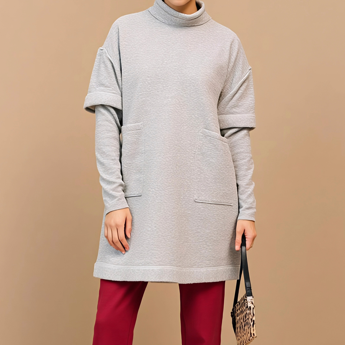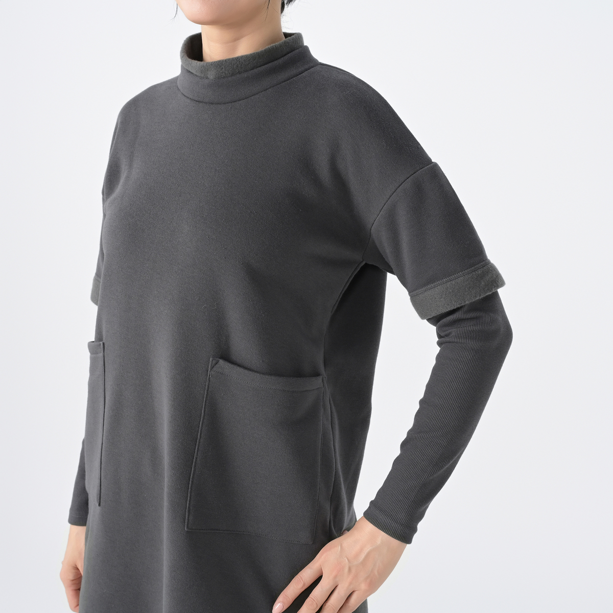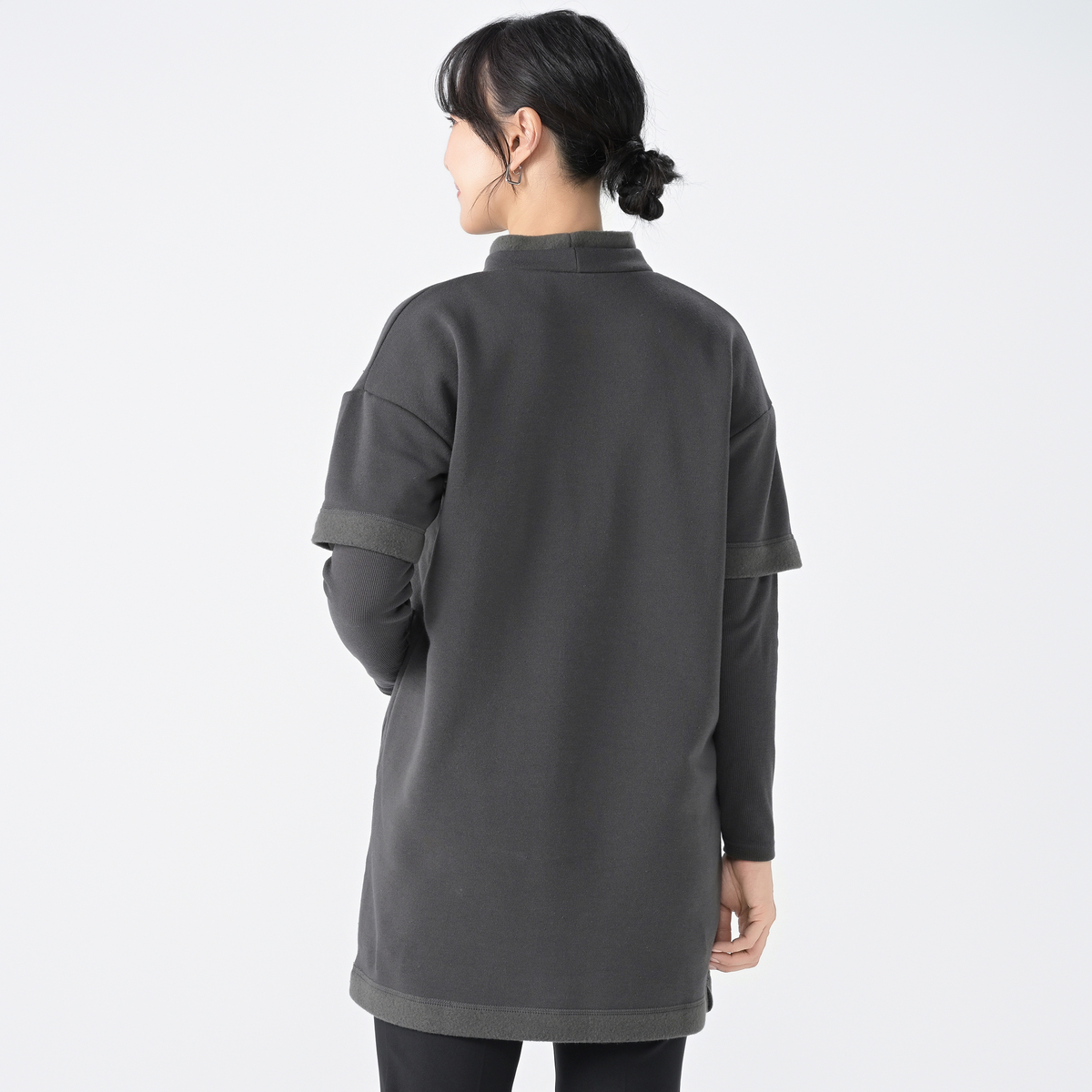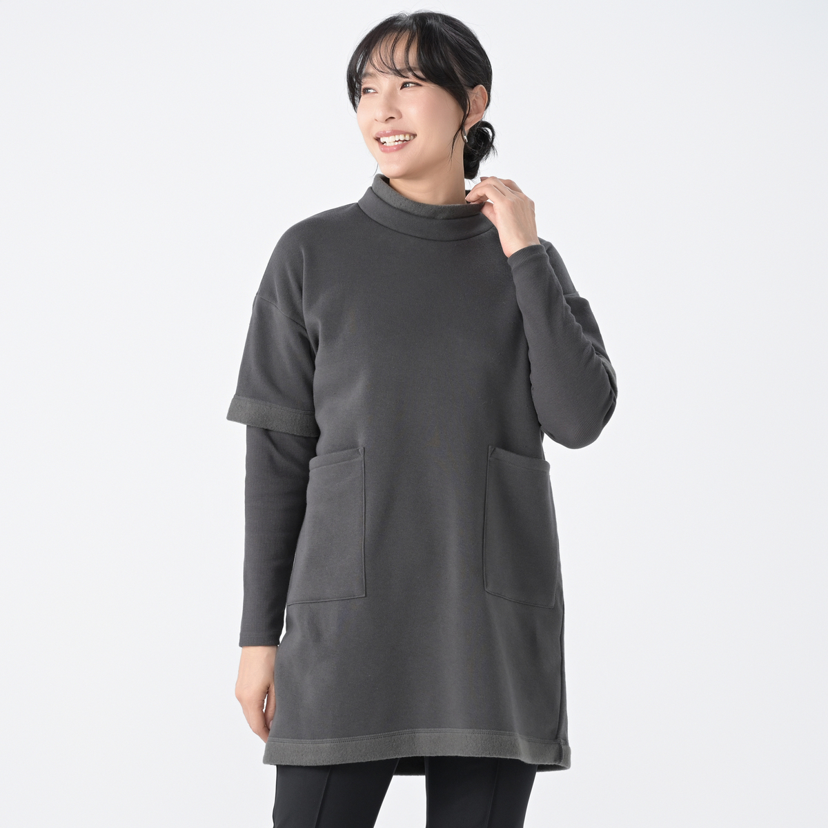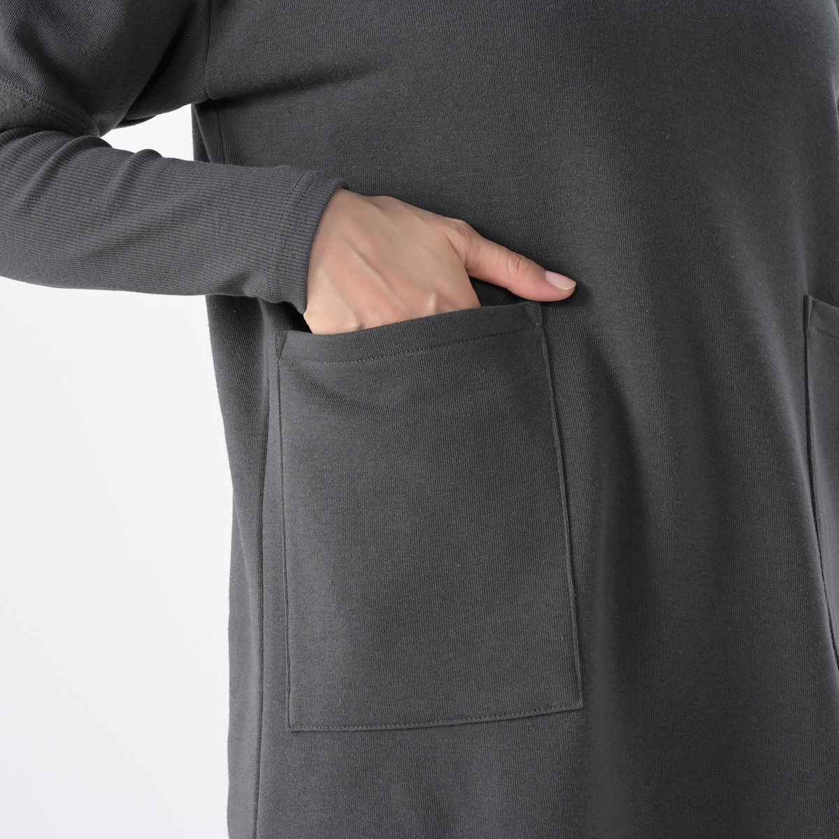 ふっくらとした裏起毛で柔らかな肌触りのチュニック。軽さがありながらも膨らみのある風合いで、直接肌に触れてもチクチクしにくく、快適な着心地です