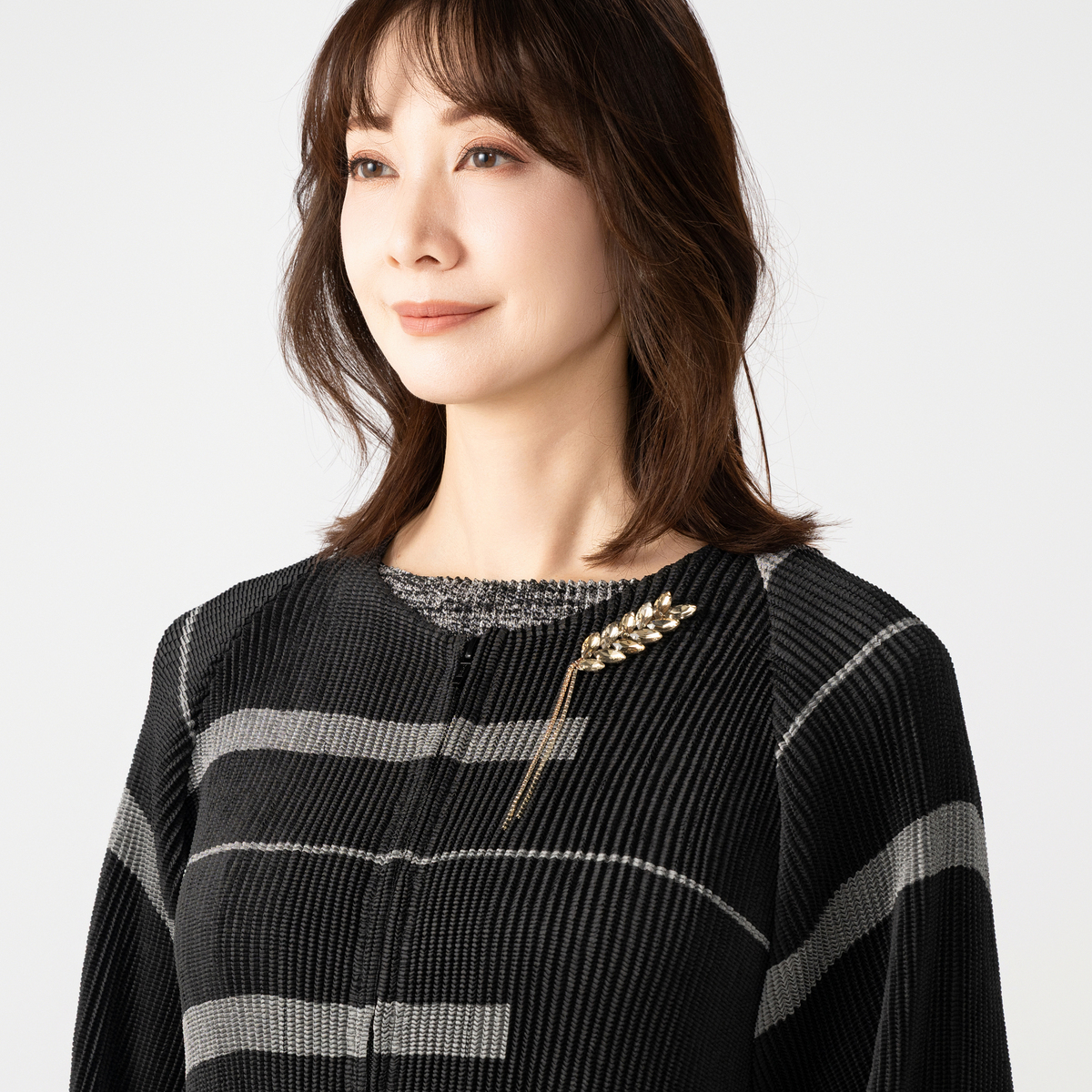マグネットタイプなので服に穴を開けずに装着可能。小ぶりなサイズ感で、ジャケットやTシャツはもちろん、ストールやコート、帽子、バッグにも自然に馴染みます