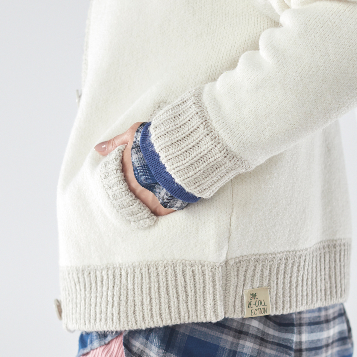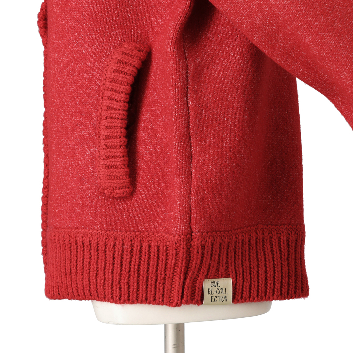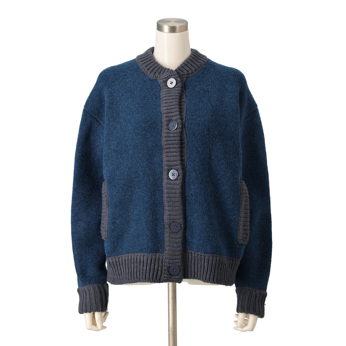 アウターらしい肉厚なニット素材。リブ部分はローゲージ風に編地変化をつけ、ニットらしい温もり感のある雰囲気に。カラーによって本体とリブを配色デザインに仕上げています
