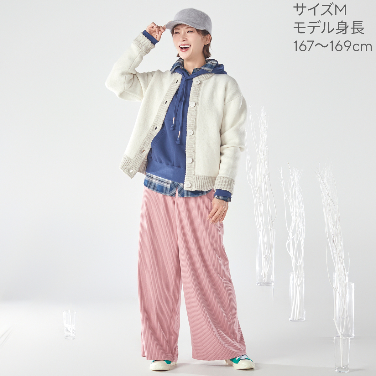 ピンクを購入しましたが、とても可愛い色味で気に入りました。ジャストサイズでも程よくゆとりがあり、アウターとして着やすいです。ダブルジャガードなので多少の重さはありますが、その分しっかり暖かく、冬から春先まで活躍しそう。これでも寒い時は、大きめのアウターを羽織れば問題なく過ごせそうです。