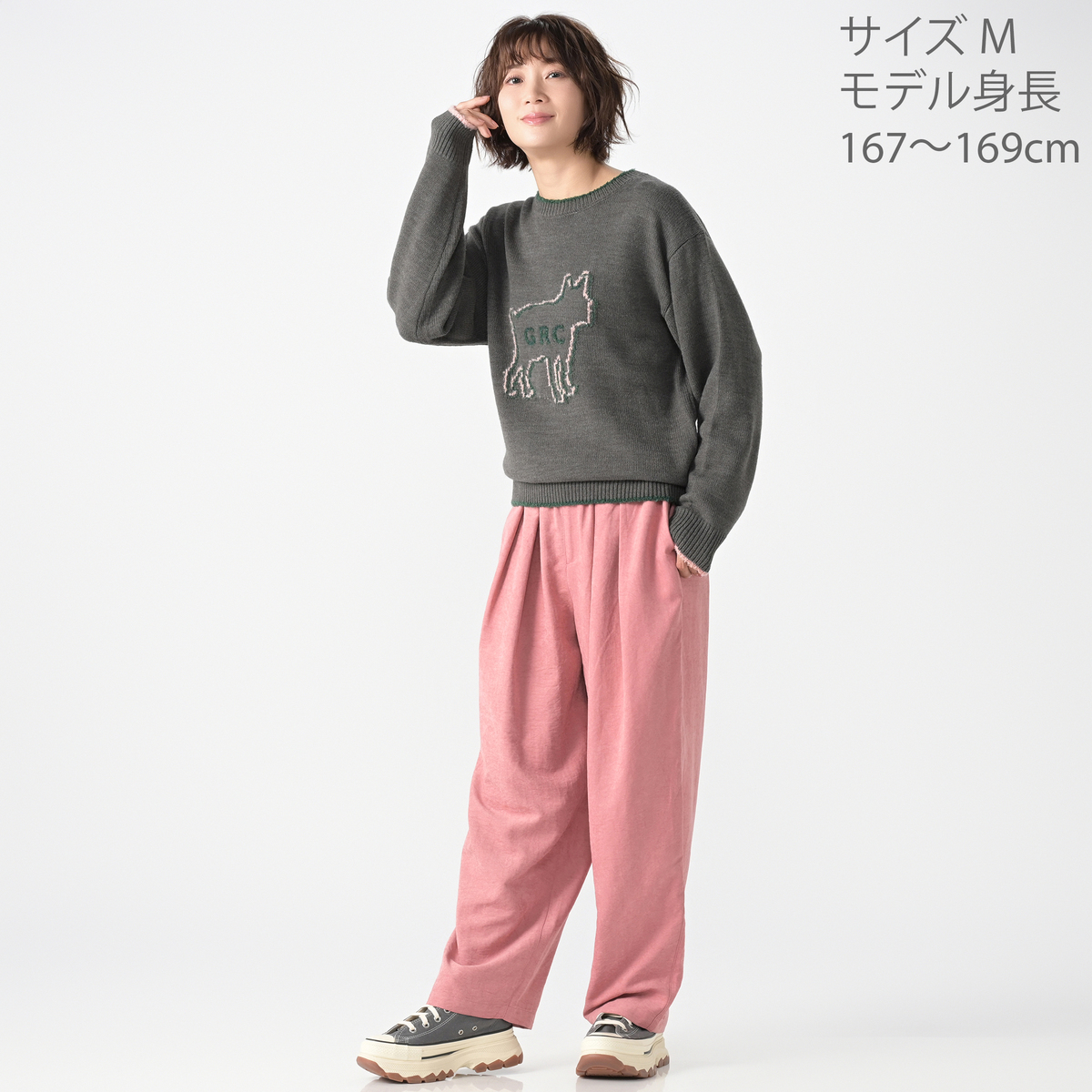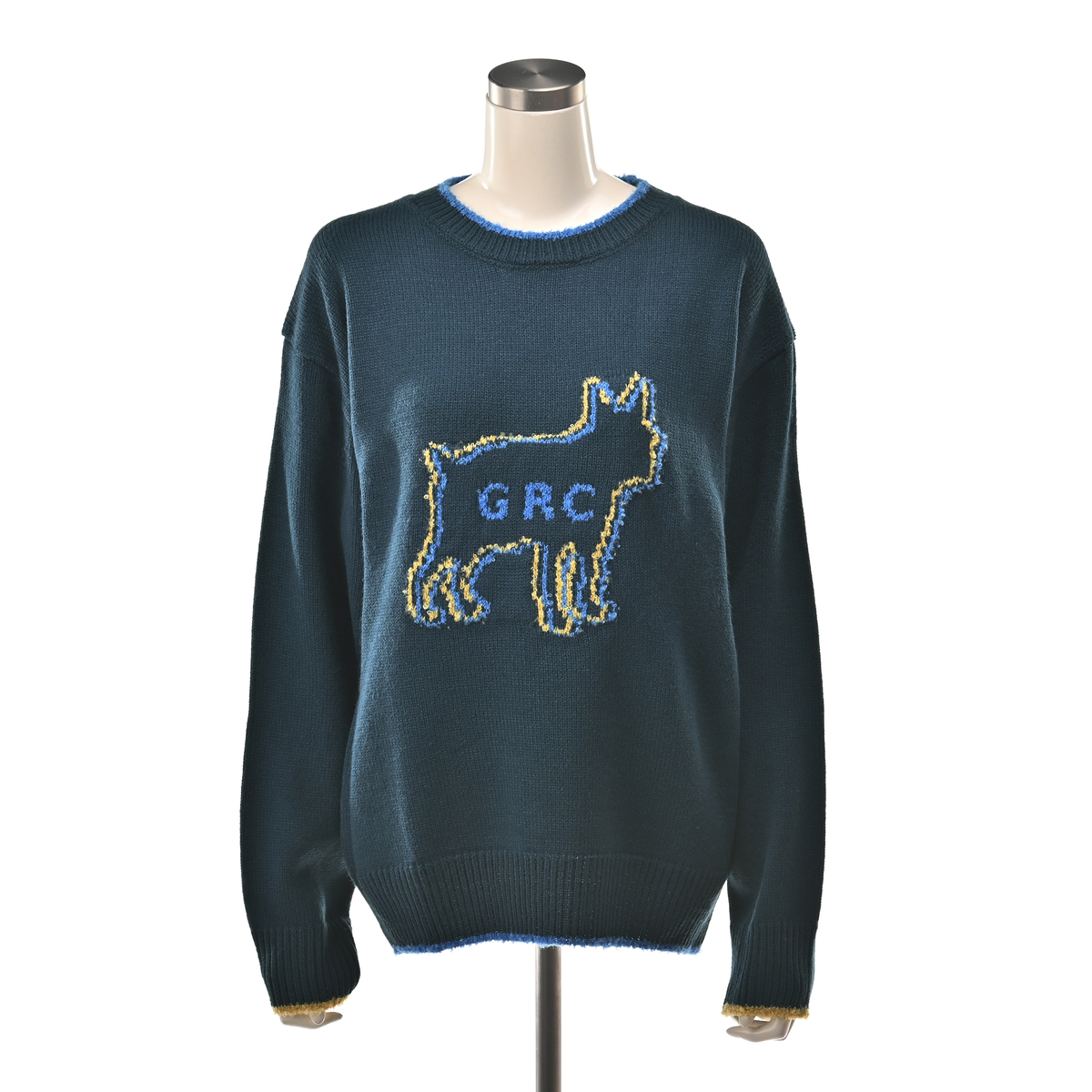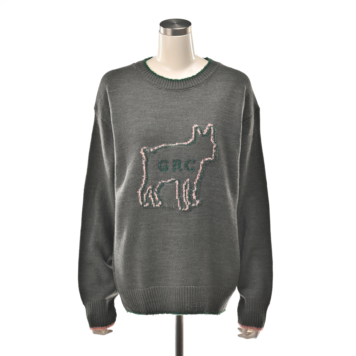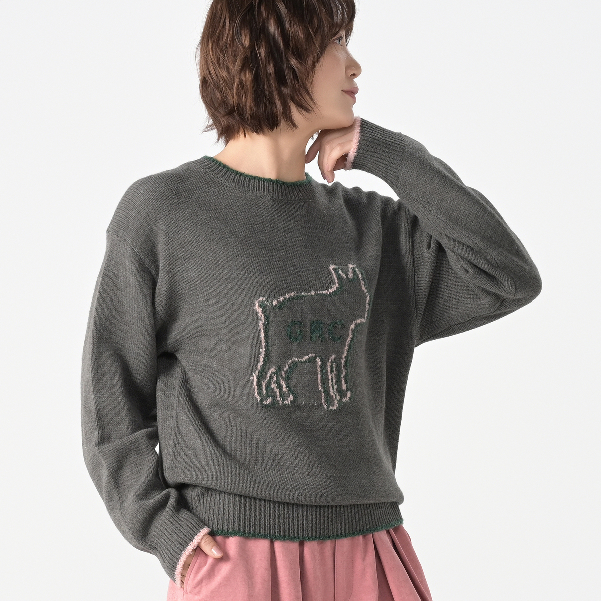 ホット君のシルエットモチーフとGRCロゴがキュートなジャガードニットプルオーバー。クルーネックと袖口、裾口には柄と連動した配色ラインがアクセントになり、ベーシックな形ながら個性を引き立てます