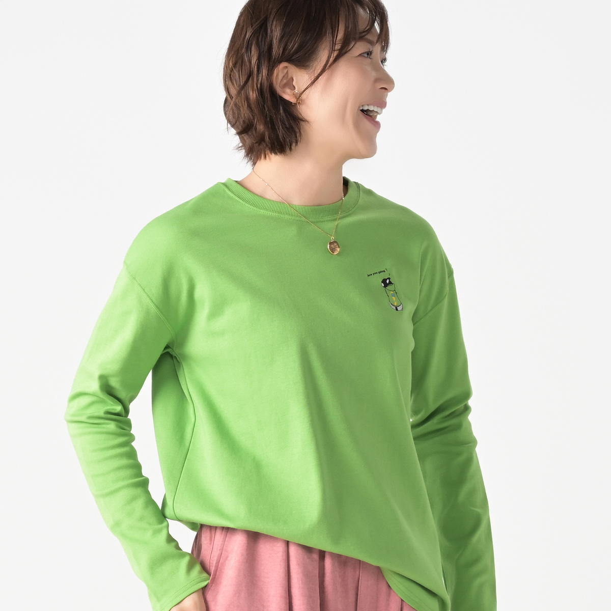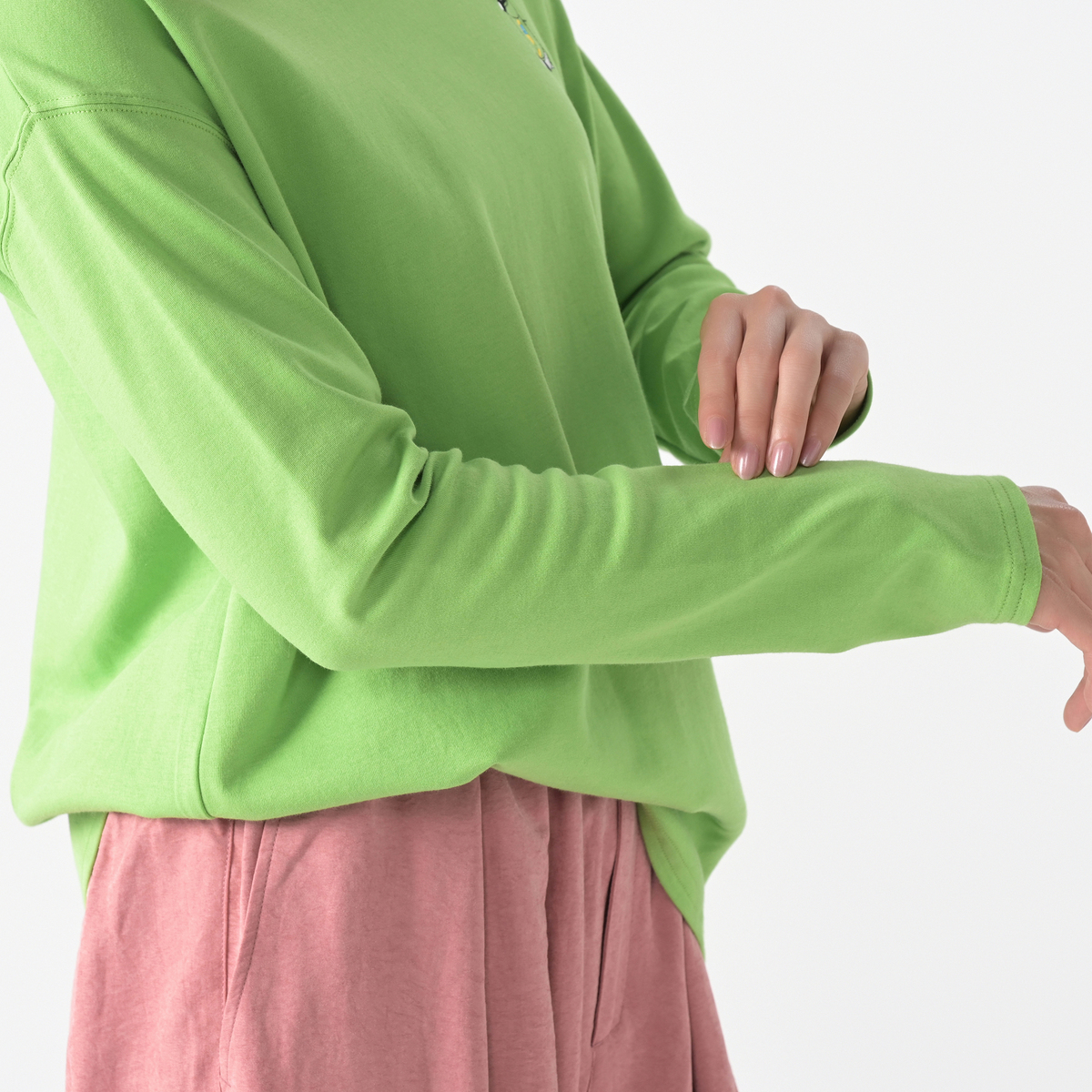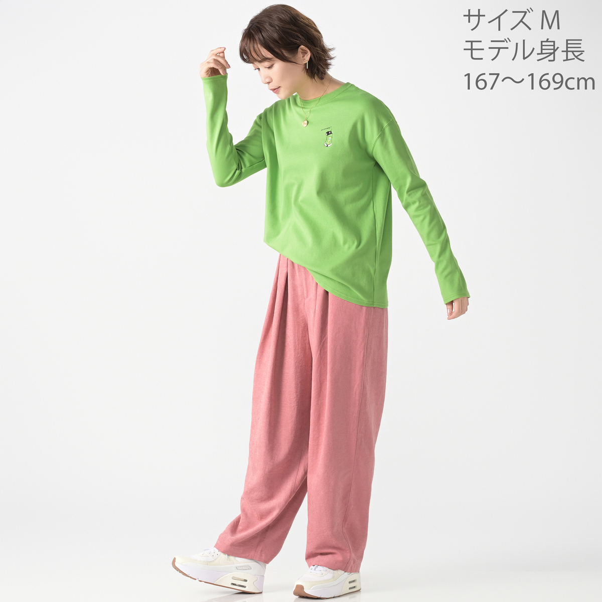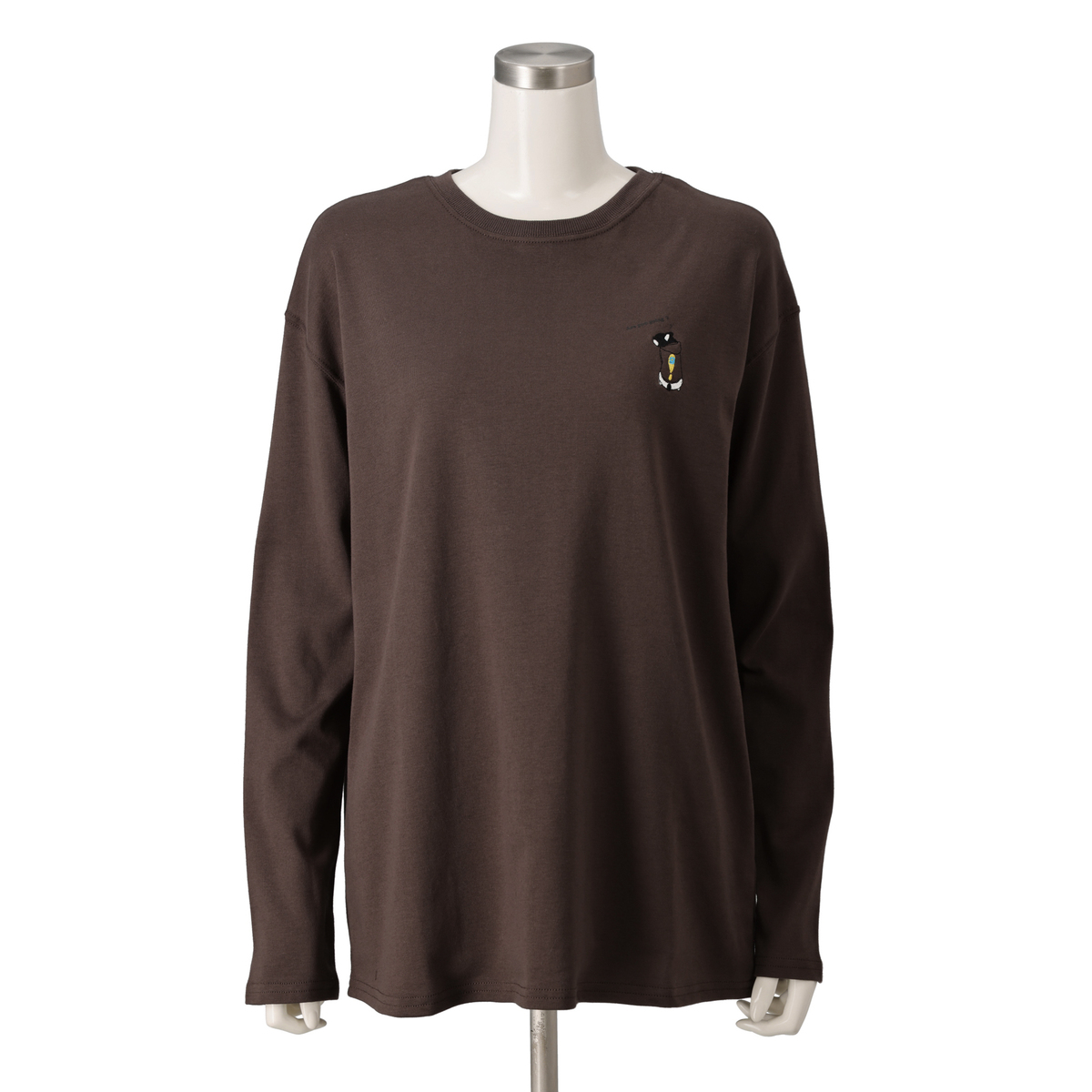 左胸のホット君刺繍とメッセージロゴプリントが、シンプルなロングスリーブTシャツにさりげない個性をプラス。デイリーコーデに取り入れやすく、重ね着にもおすすめです